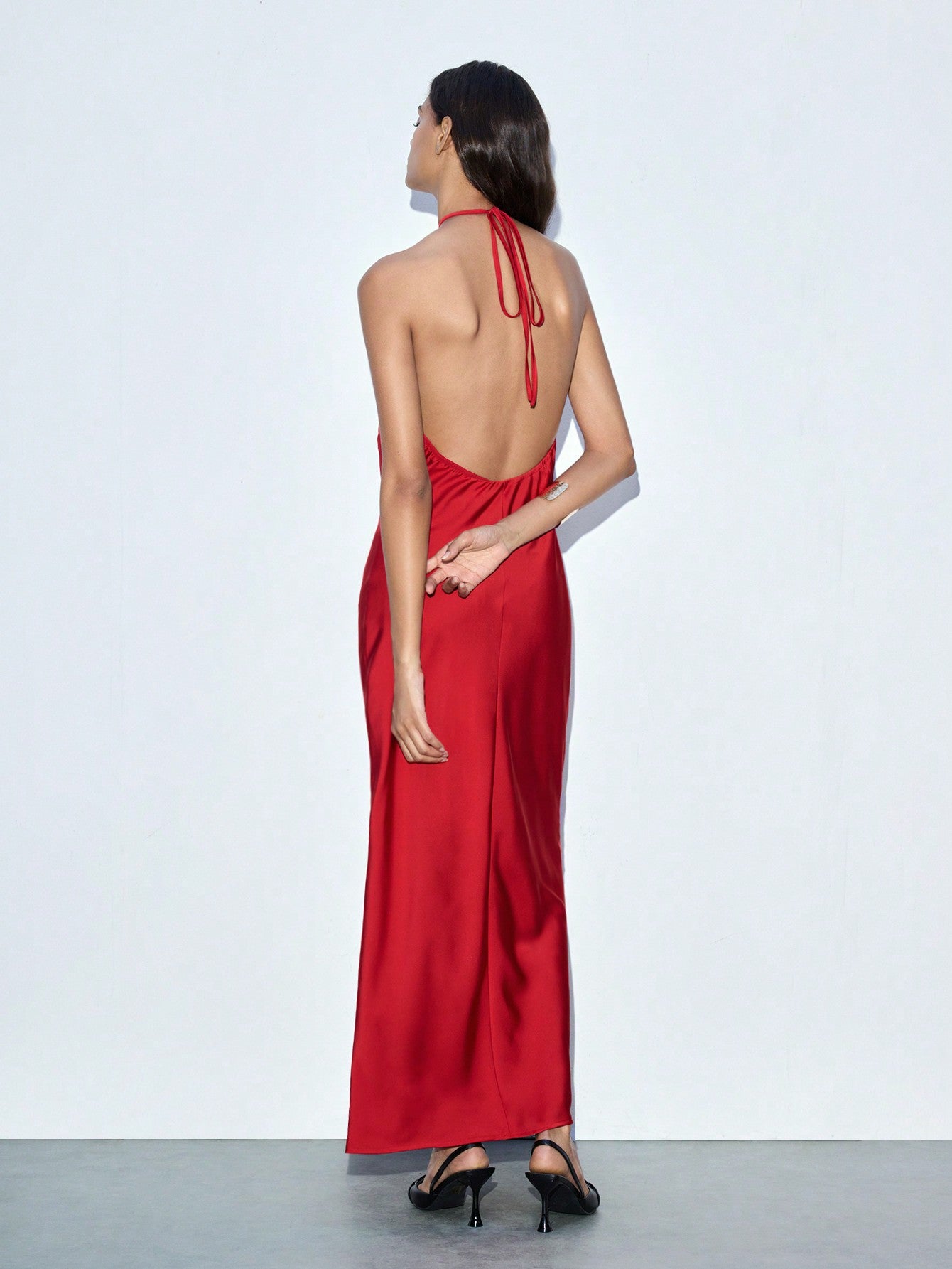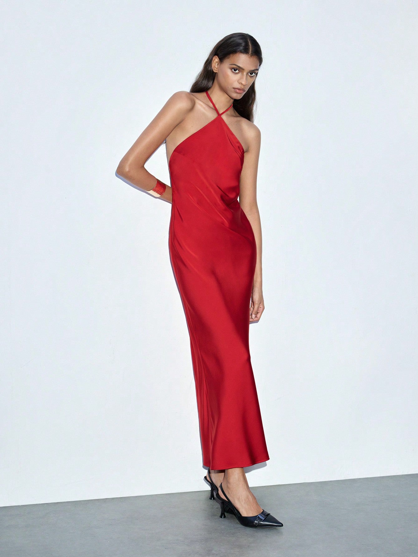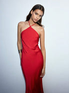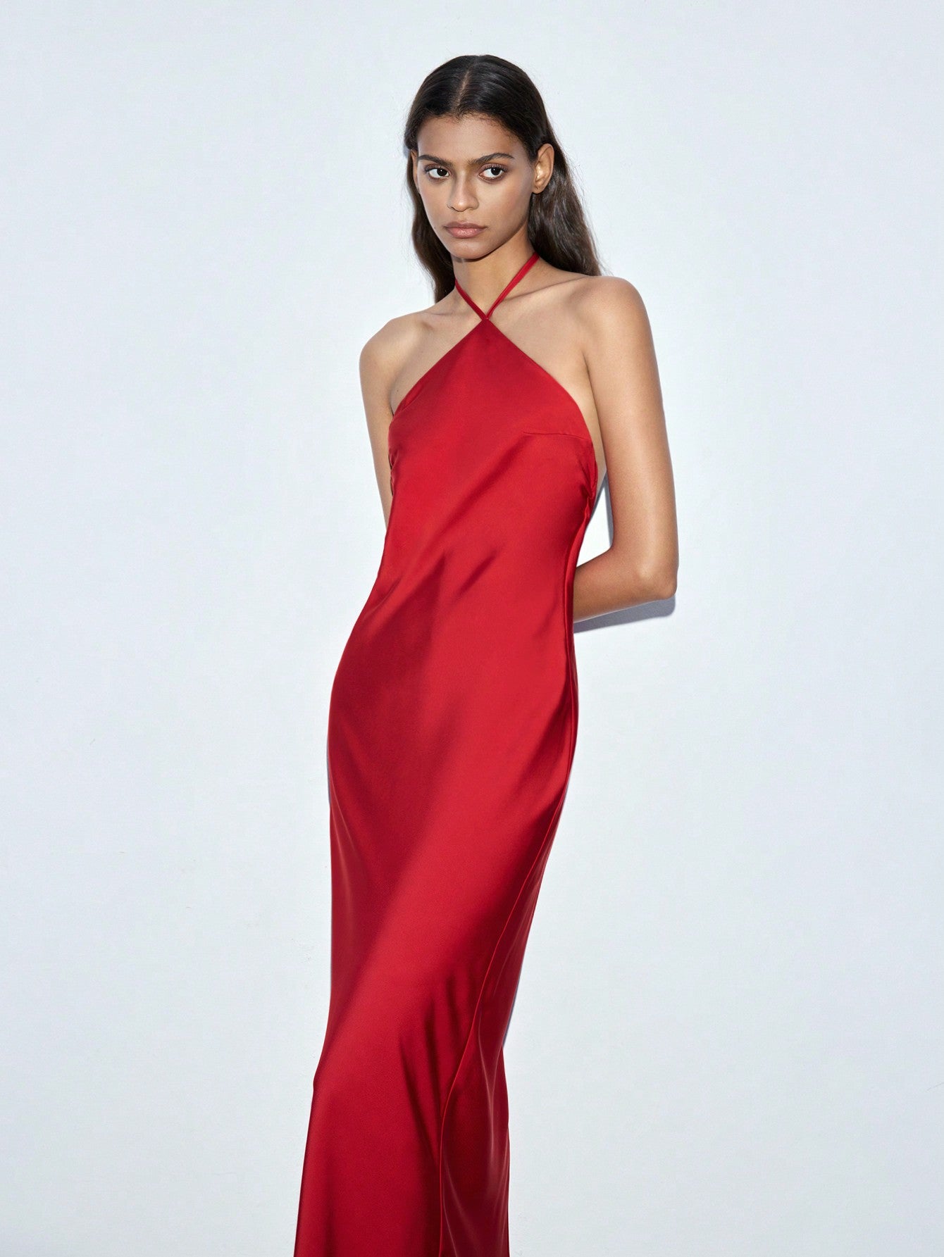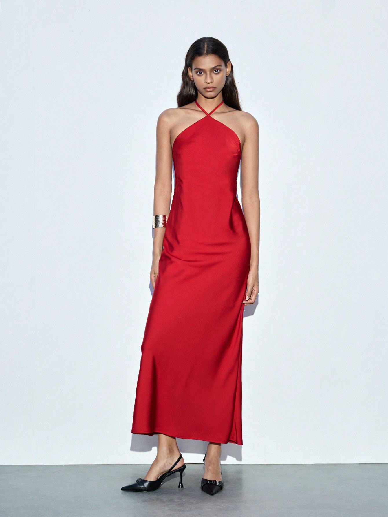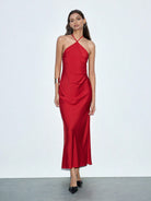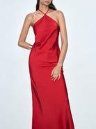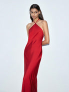 Maija Women's Sleeveless Satin Long Dress, Simplistic & Fashionable, Suitable For Valentine's Day Party