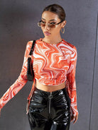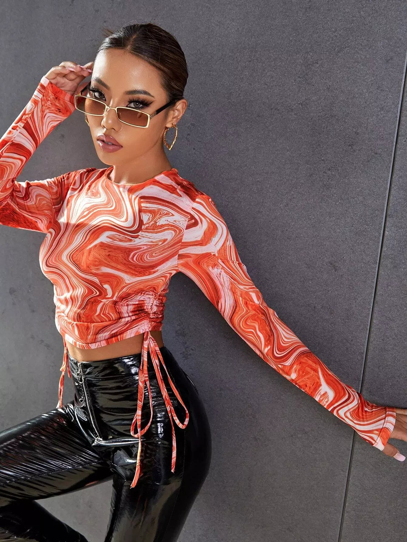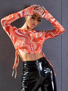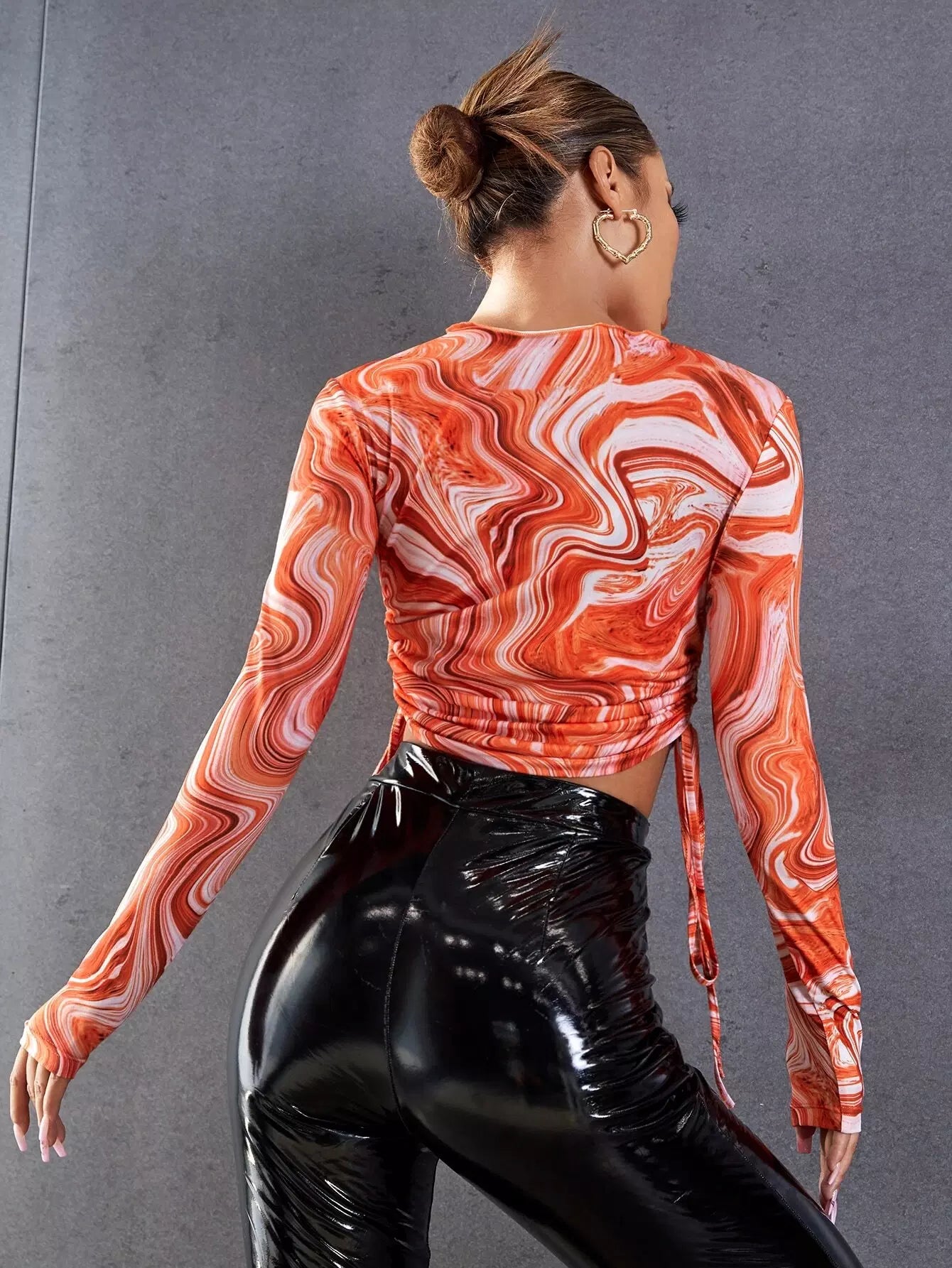 تي شيرت قصير بطبعة رخام بطبعة رخام على الجانب