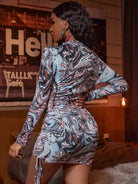 فستان بوديكون بطبعة رخامية مكشكش بطبعة رخامية