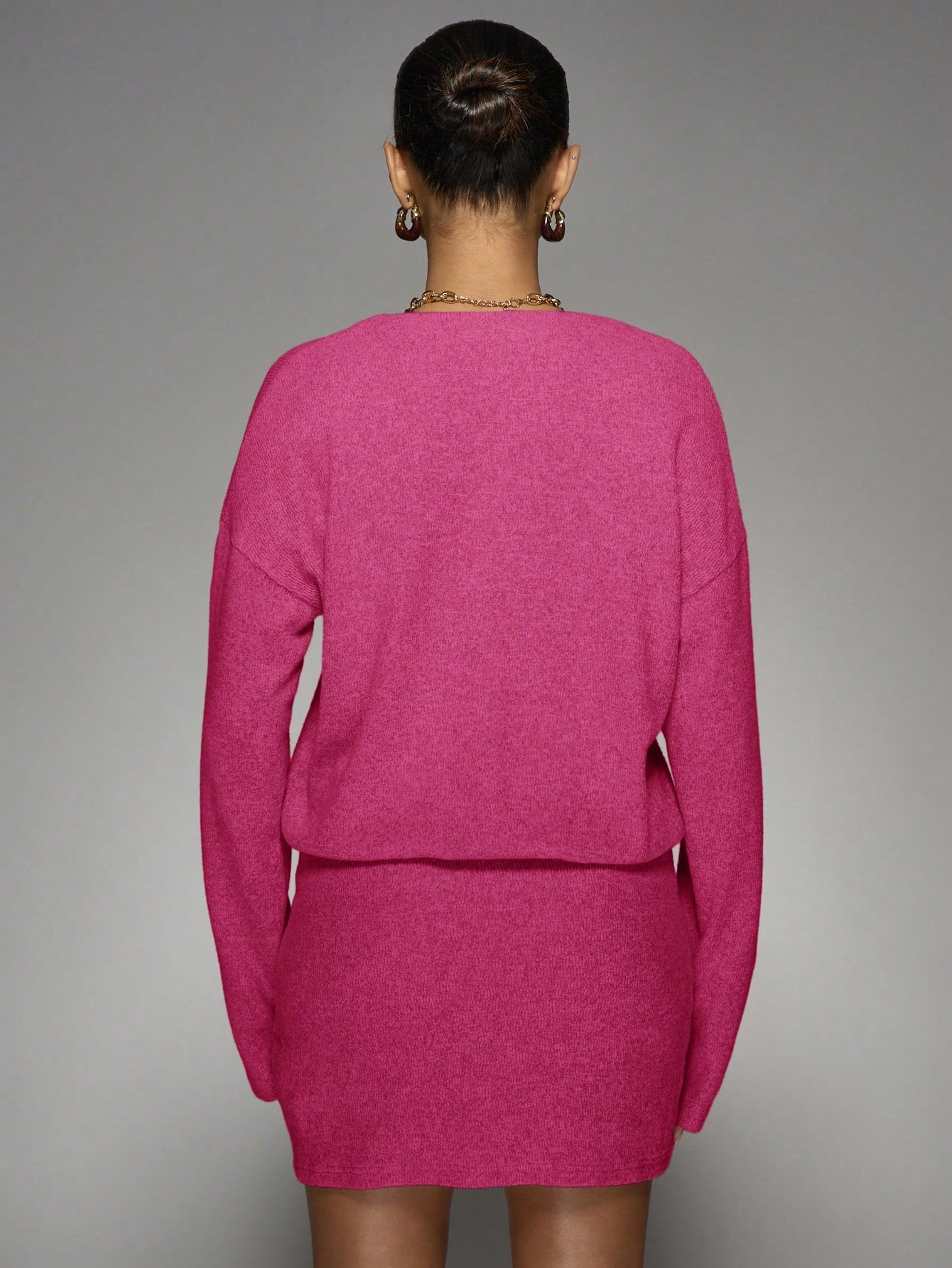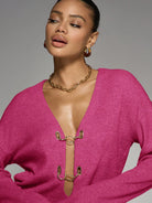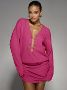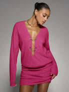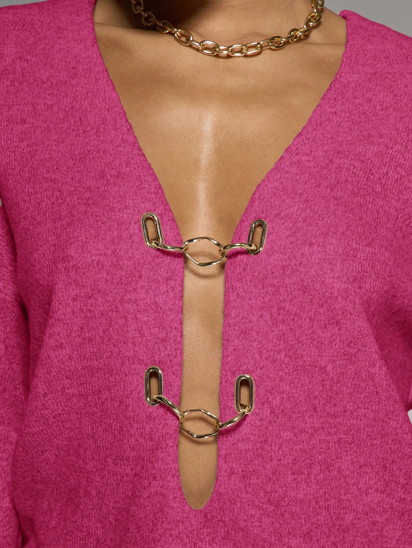 MISSGUIDED Brushed Ribbed V-Neck Mini Dress With Gold Chain Hardware Evening Party Club Wear Fall Winter