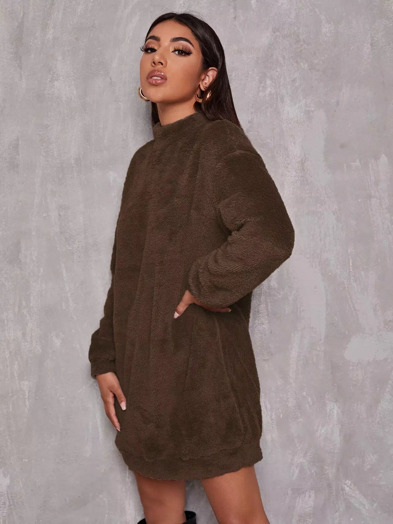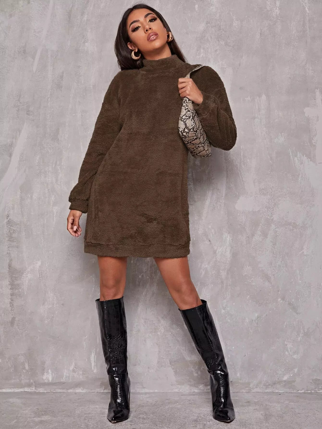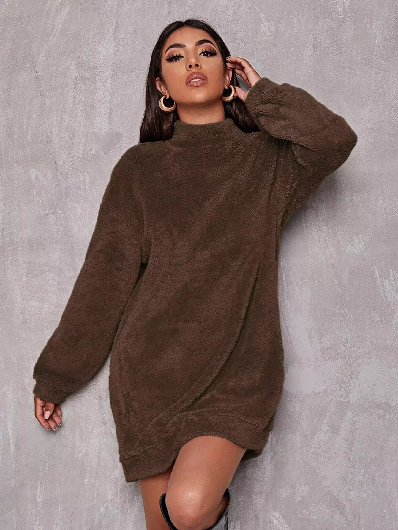 فستان بياقة منسدلة الكتف برقبة منسدلة على شكل كتف