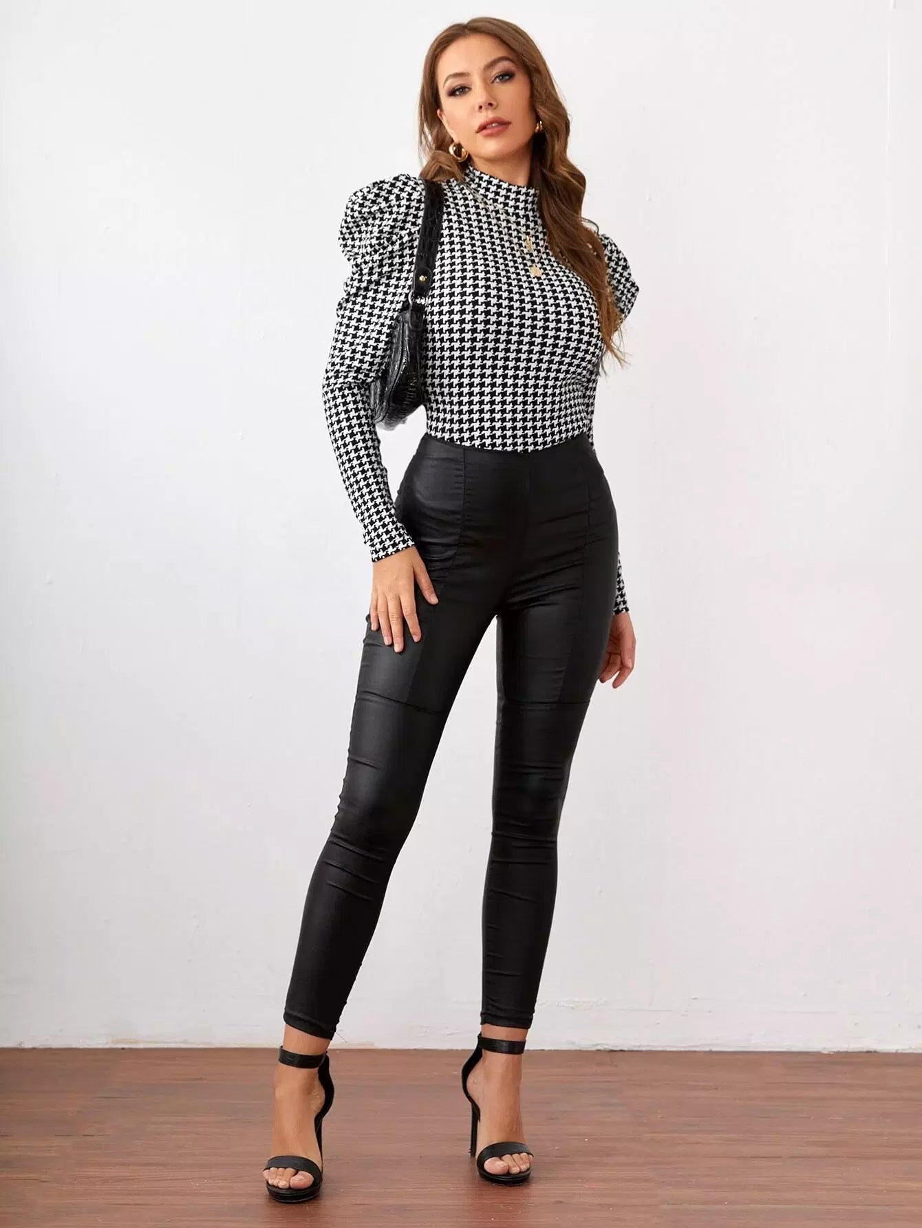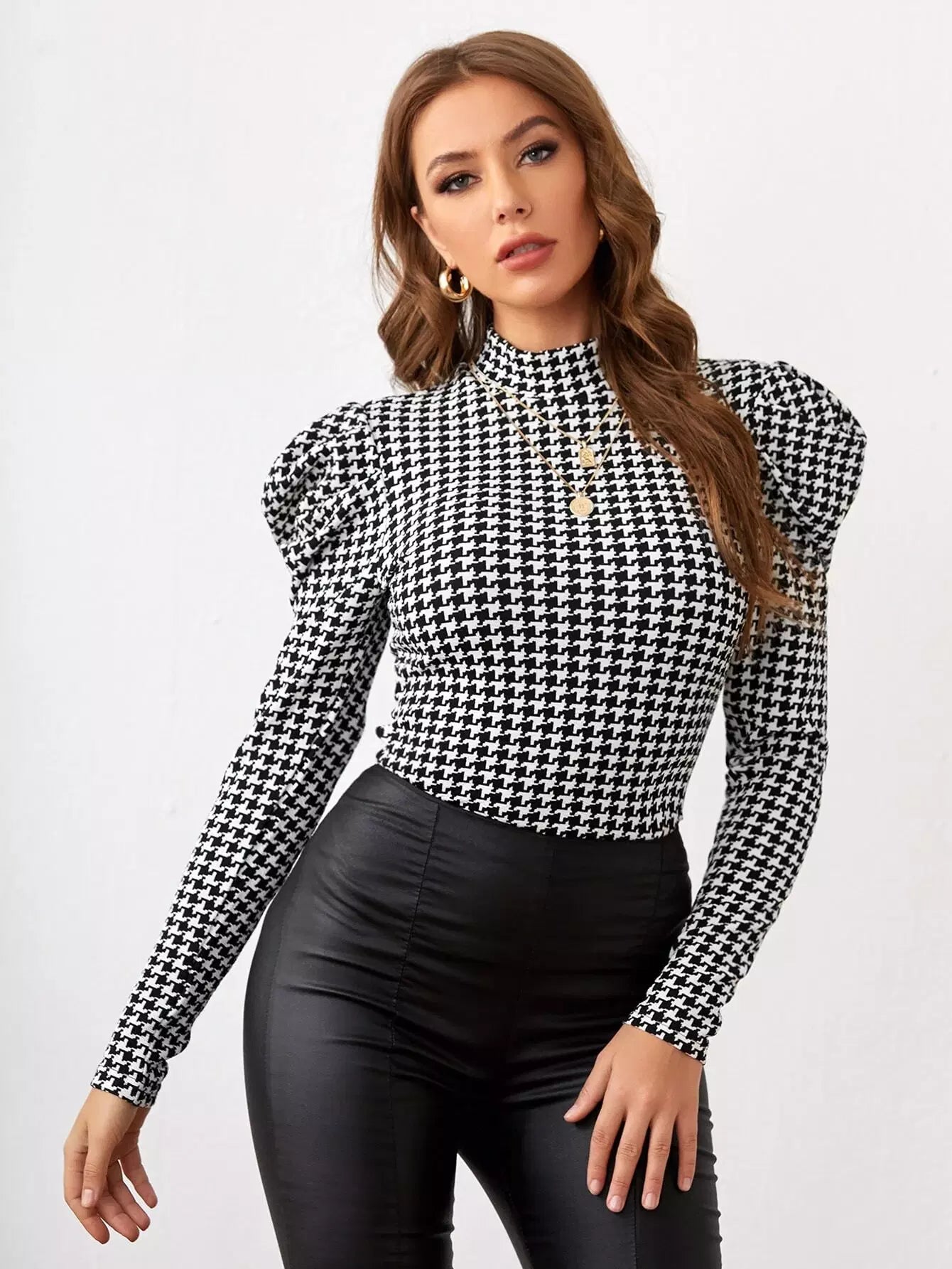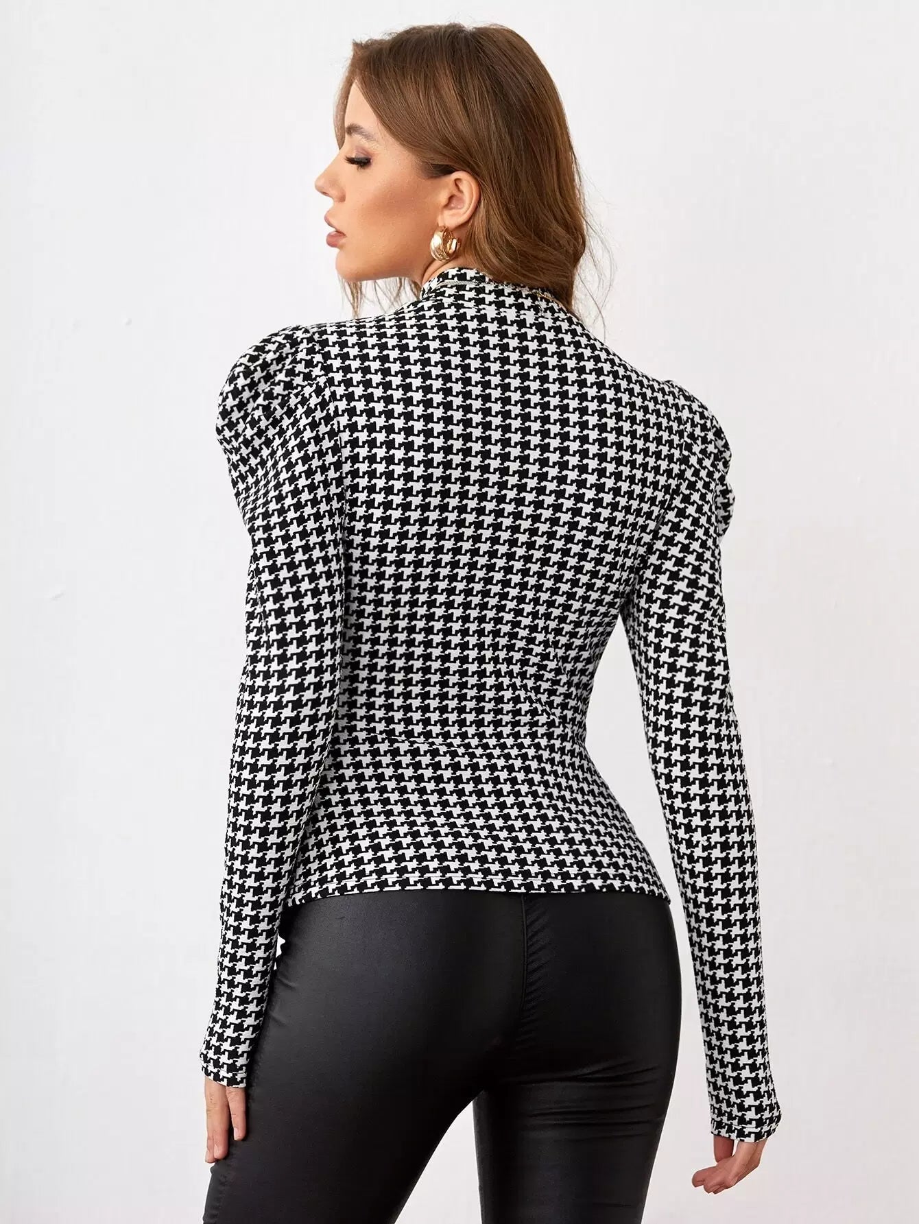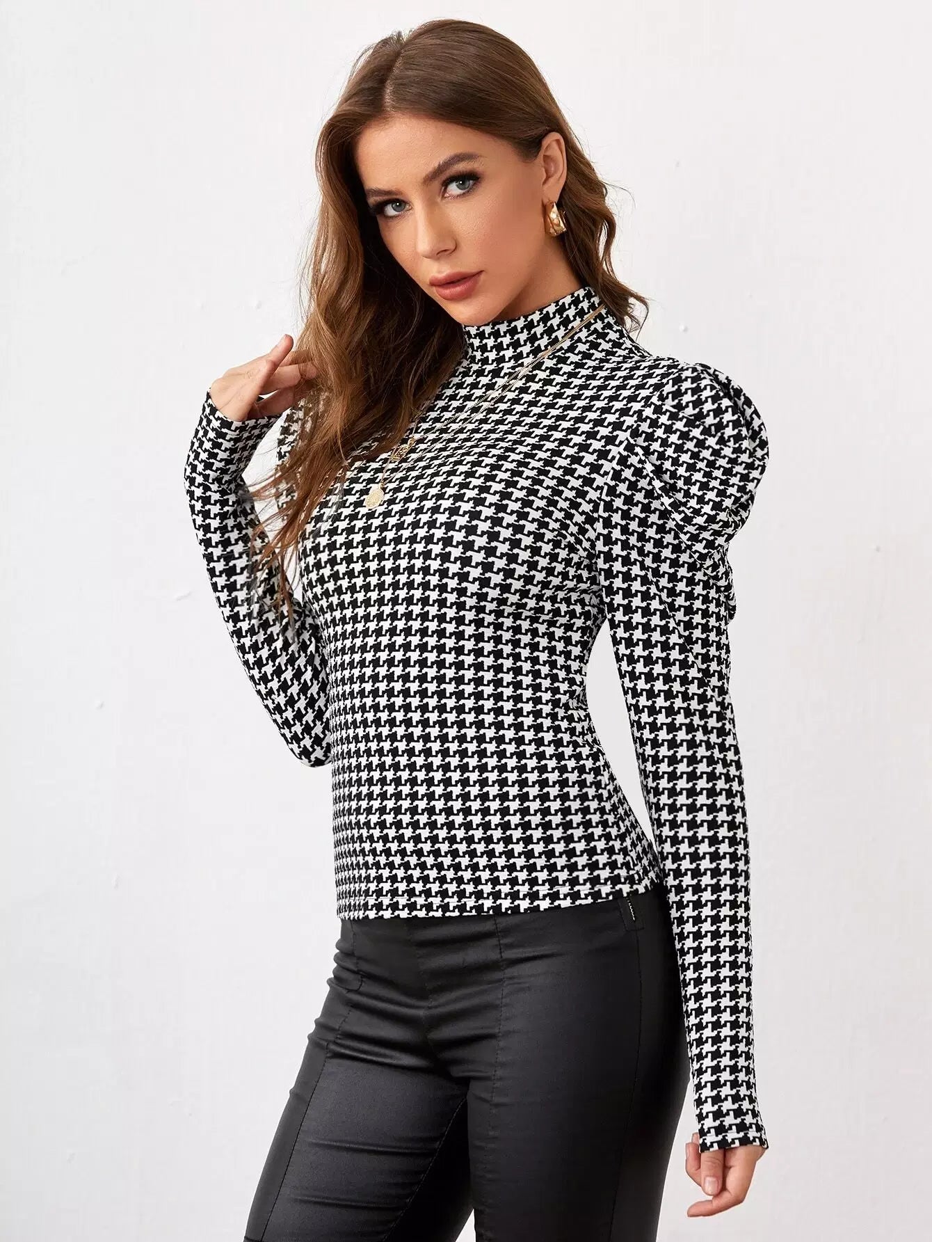 بلوزة من قماش هاوندستوث بأكمام من فخذ الضأن وياقة عالية
