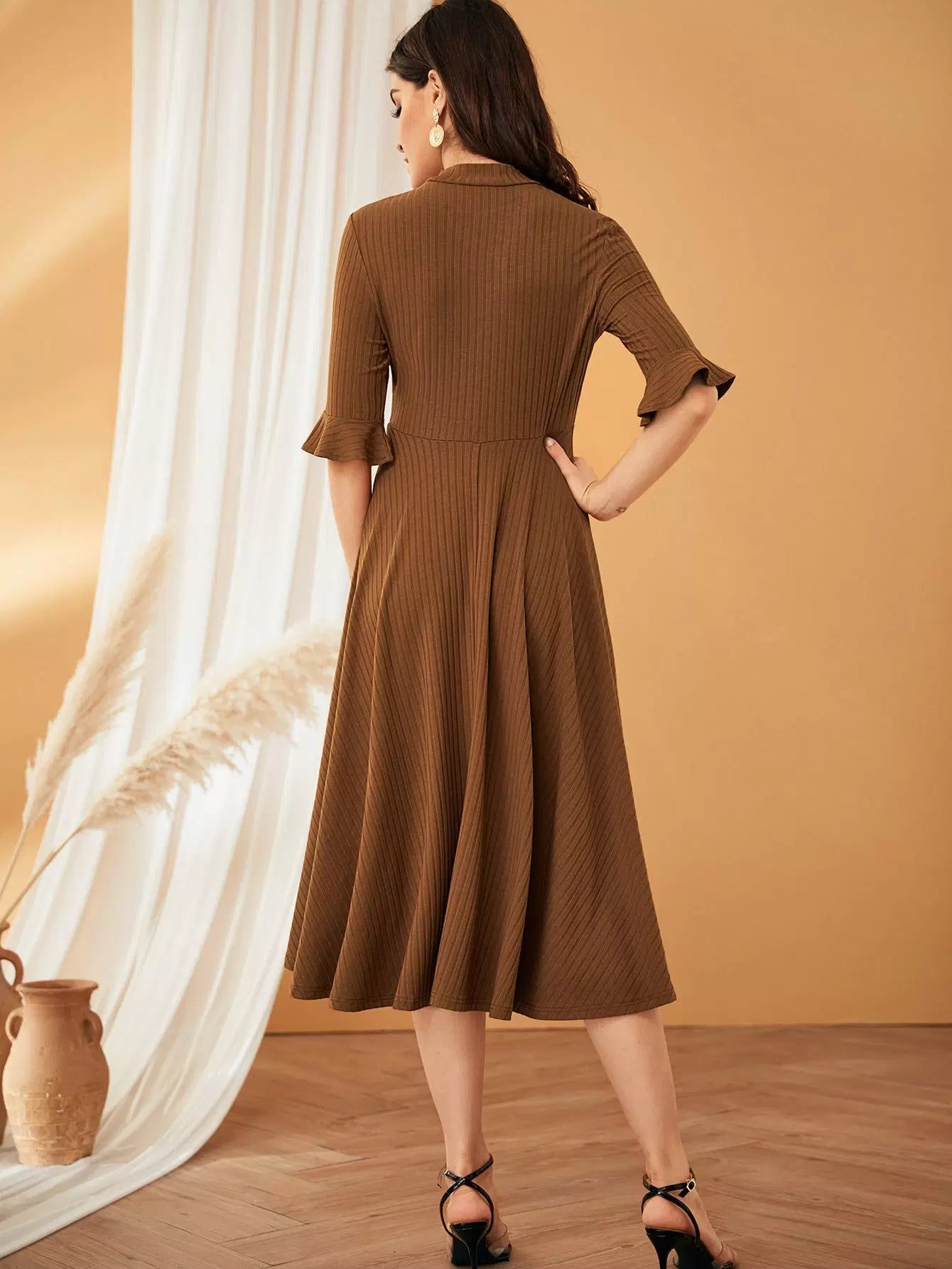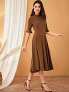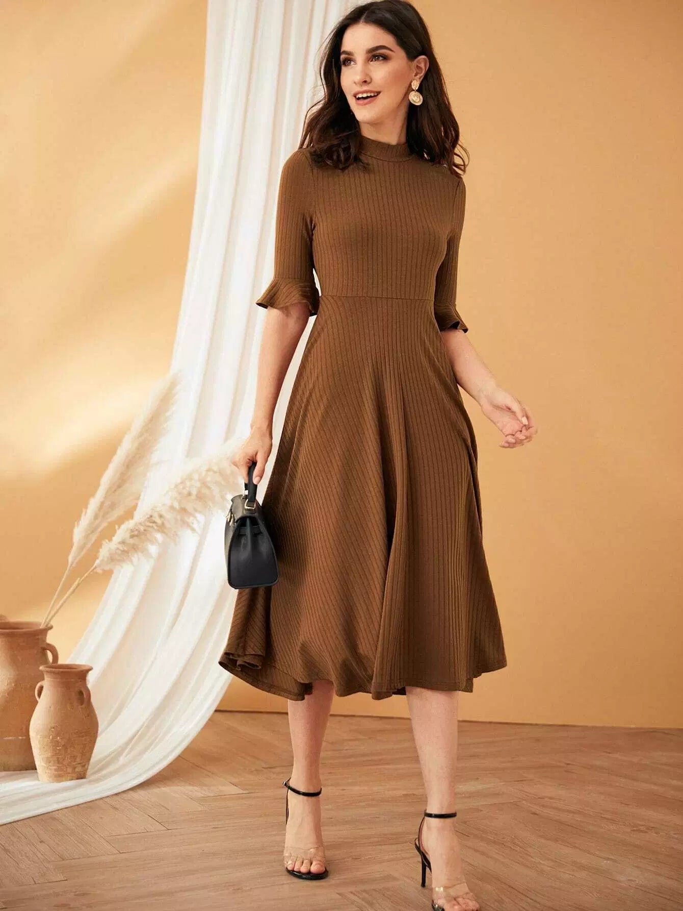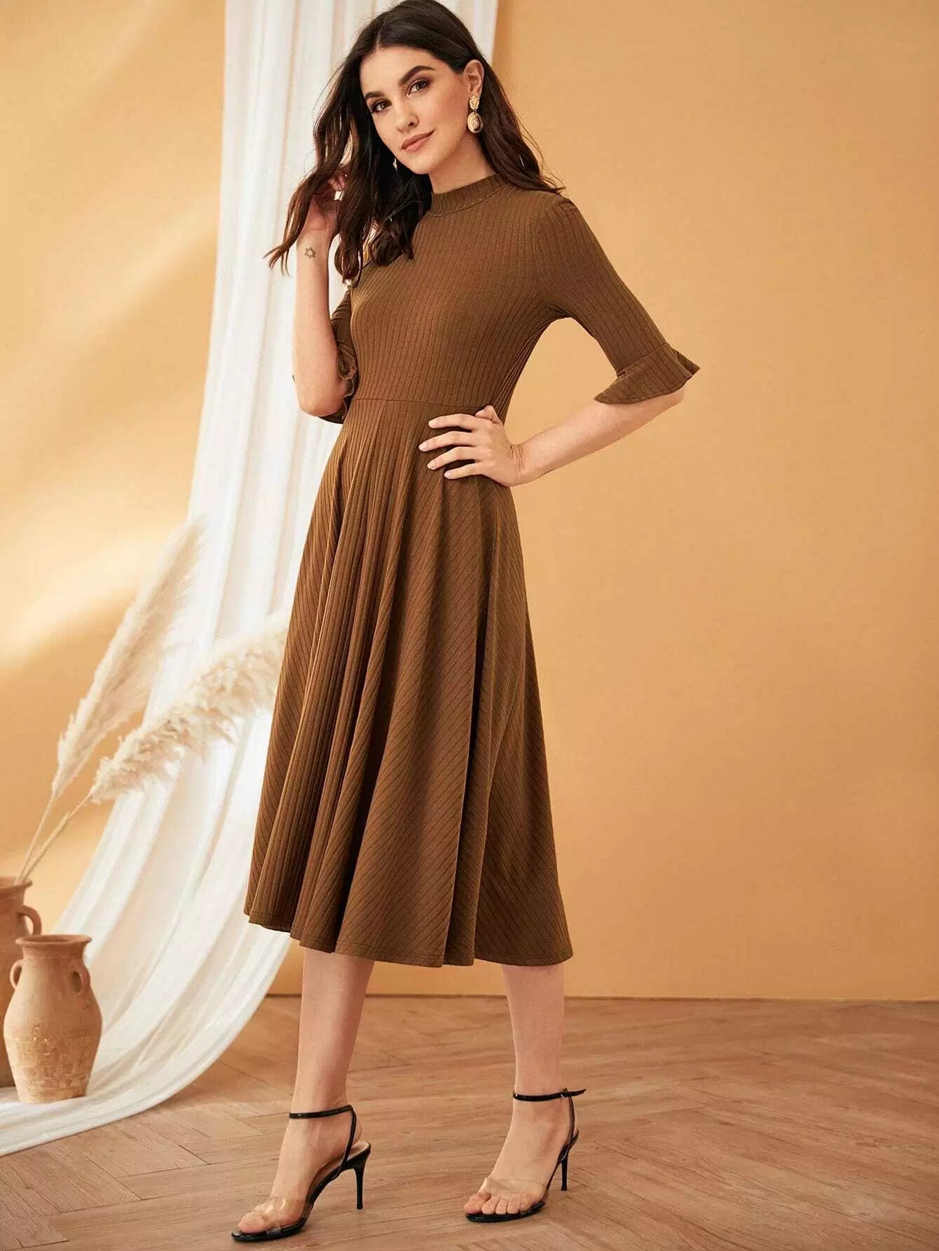 فستان برقبة وهمية محبوك على شكل ضلع محبوك برقبة ضلع