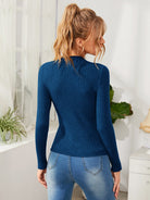 Mock Neck Rib-knit Solid Sweater