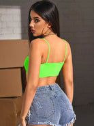 قميص قصير قصير قصير سادة بلون النيون ليمون سادة