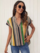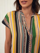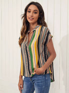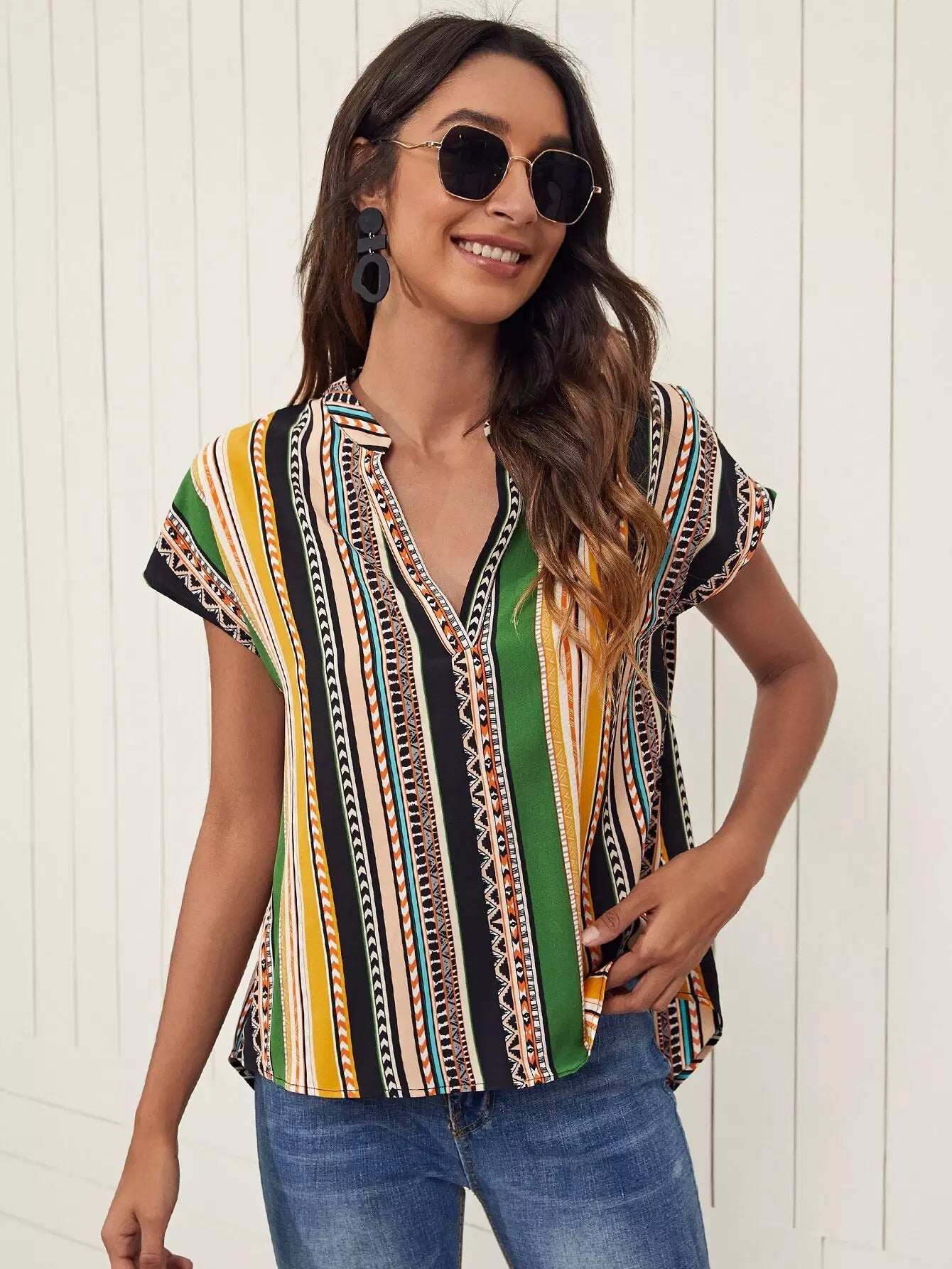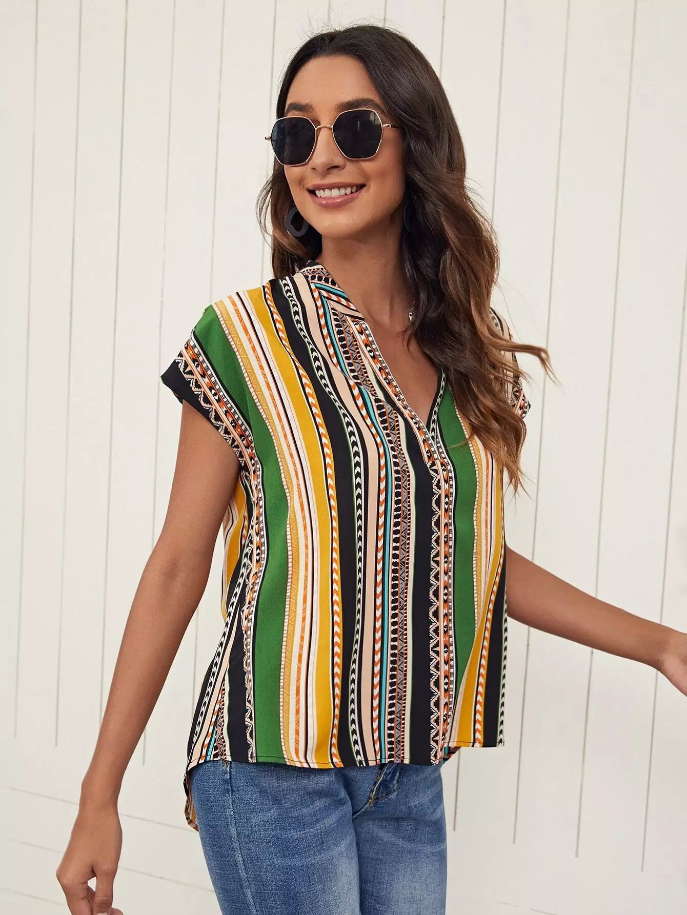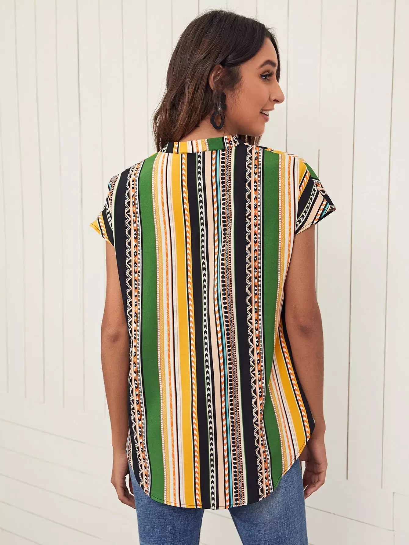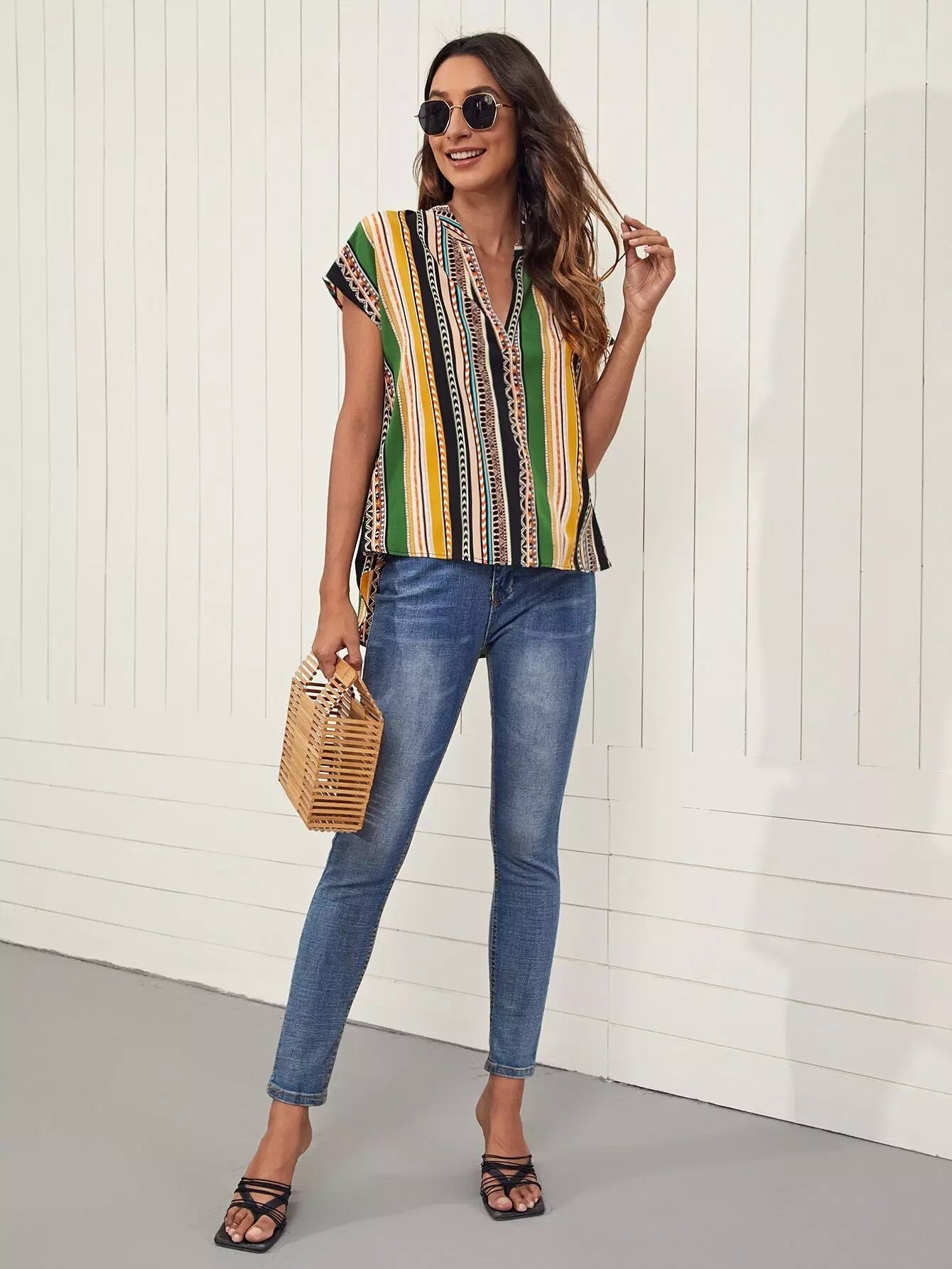 بلوزة برقبة بفتحة عنق عالية منخفضة وحافة منخفضة ملونة