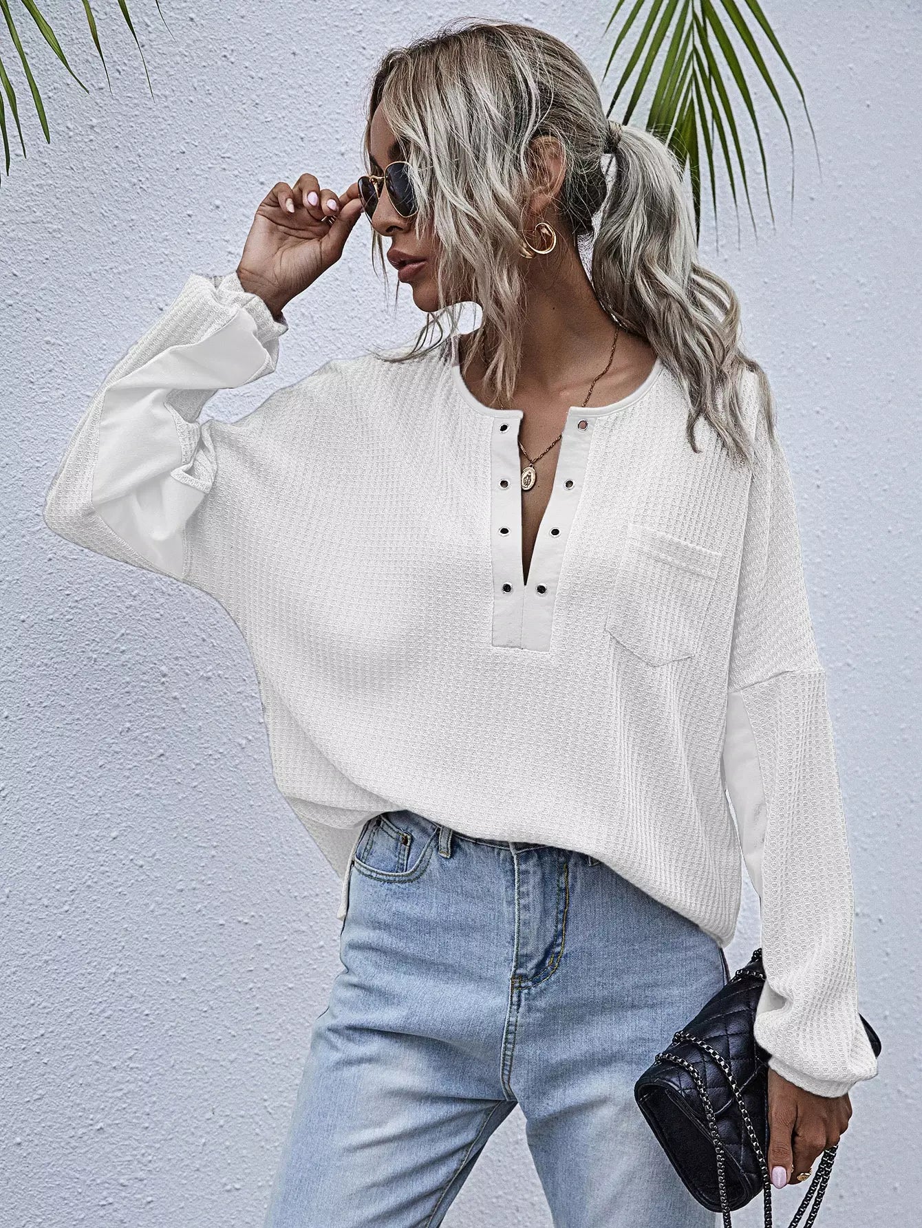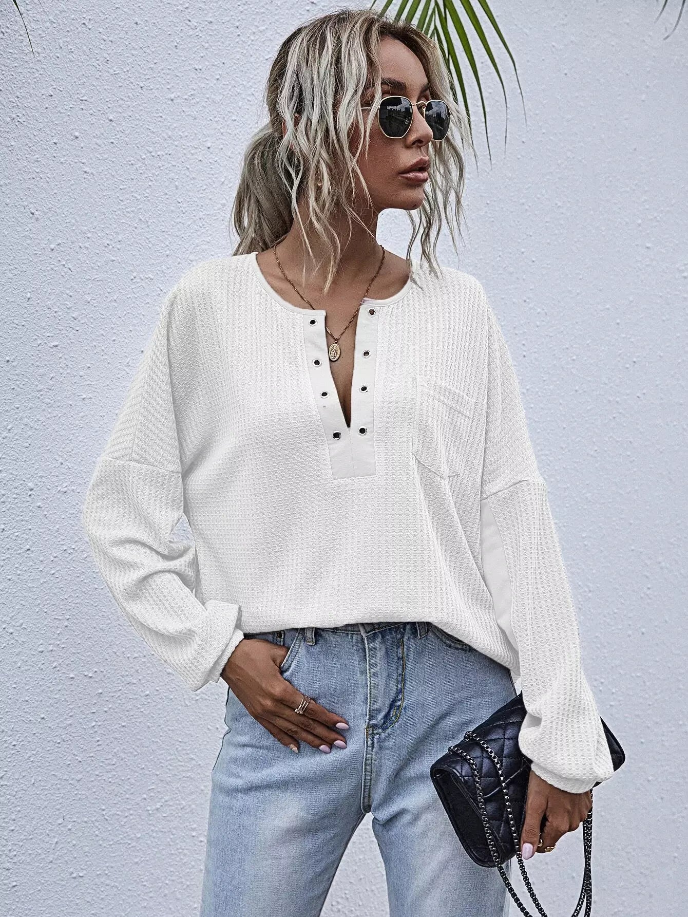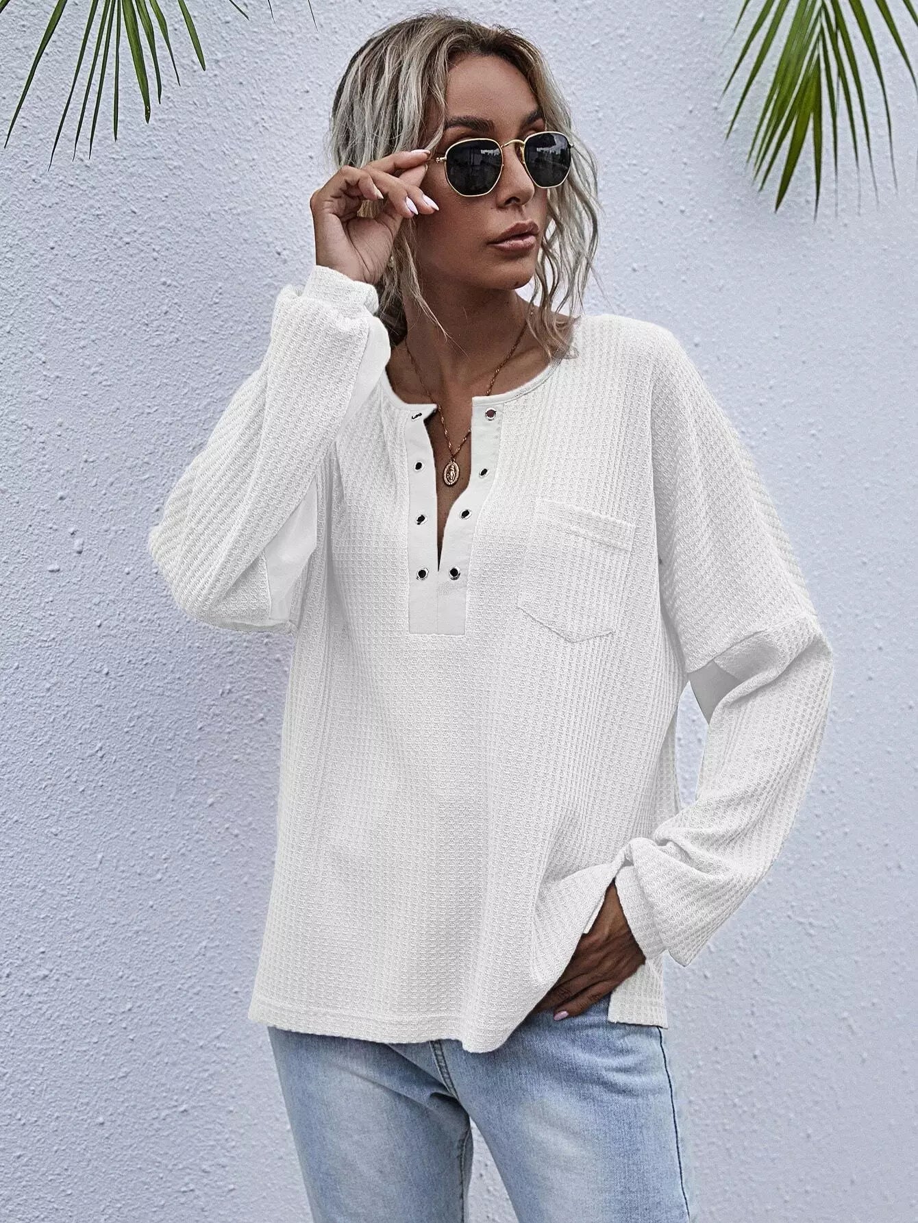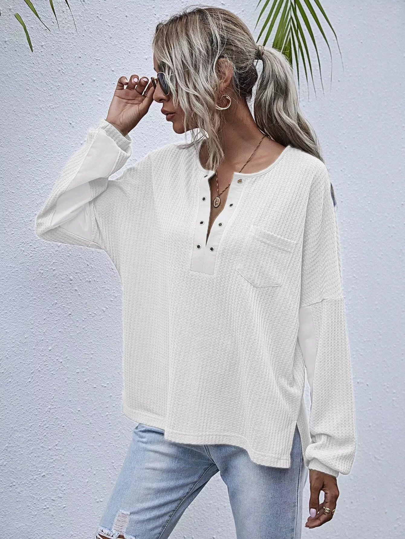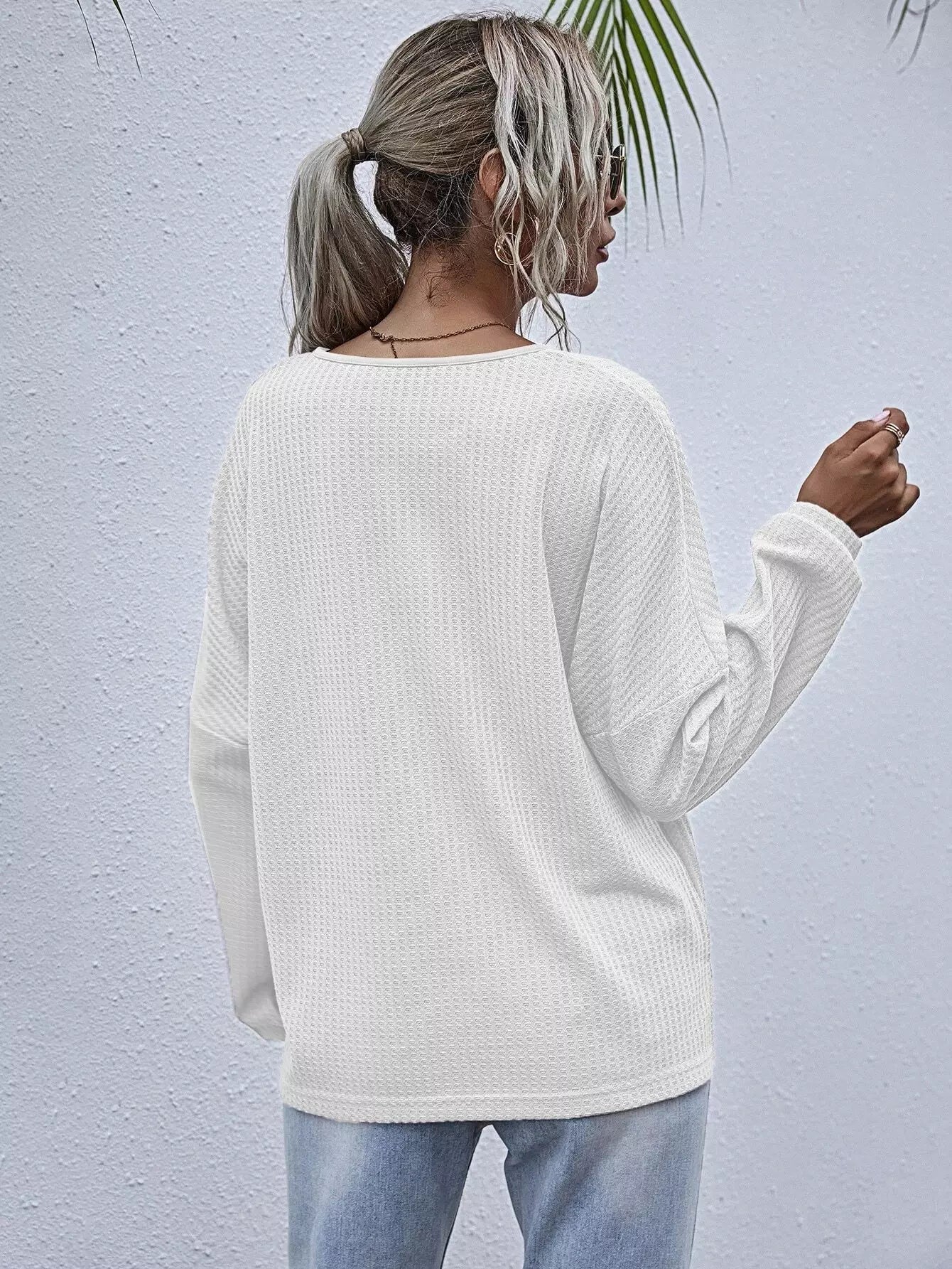 تي شيرت برقبة محبوكة بفتحة رقبة محبوكة بفتحة كتف منسدلة
