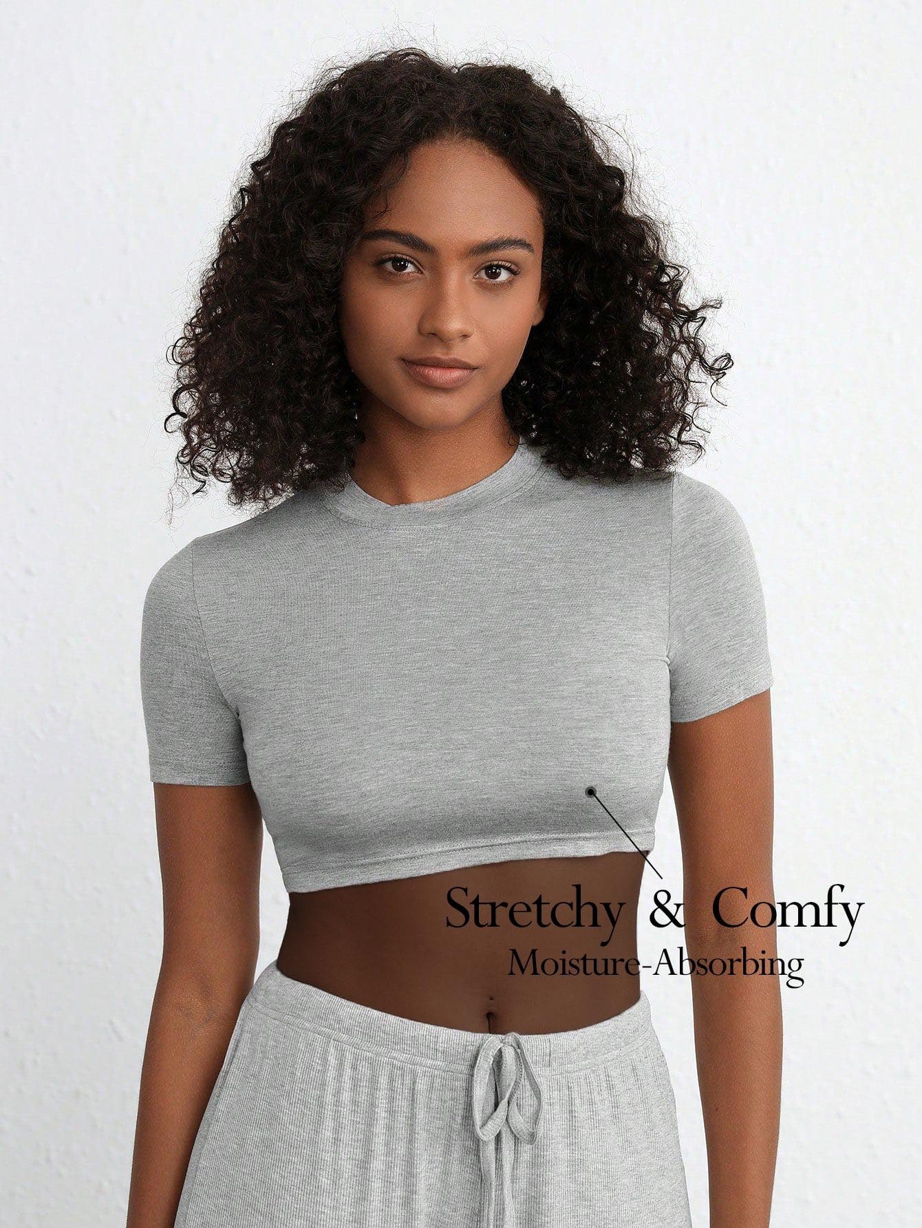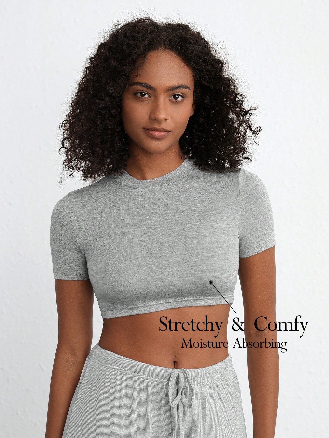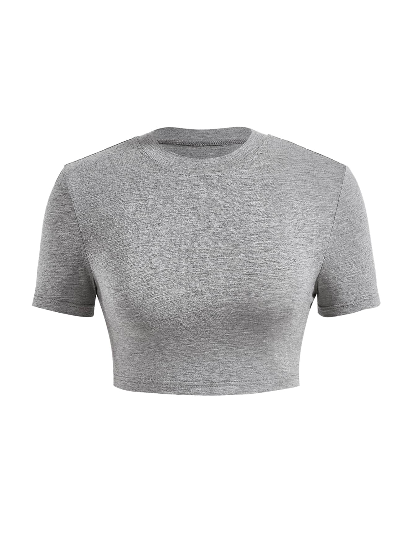 Ocili Leisure Smooth & Comfy Black Crew Neck T-Shirt Top - Melange Gray
