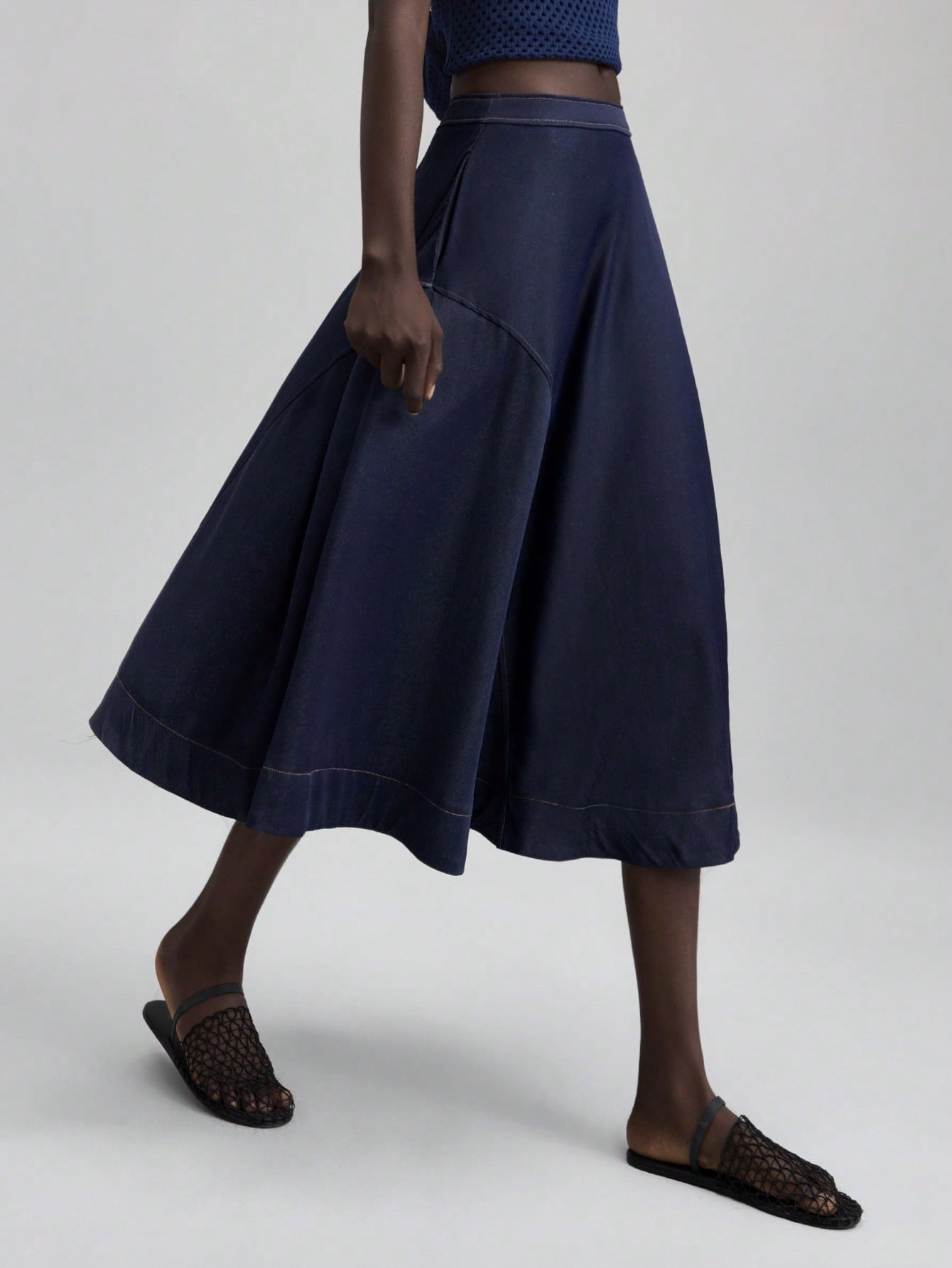 women Ontre 2025 Summer Women's Solid Color Pocket Mid-Length Skirt