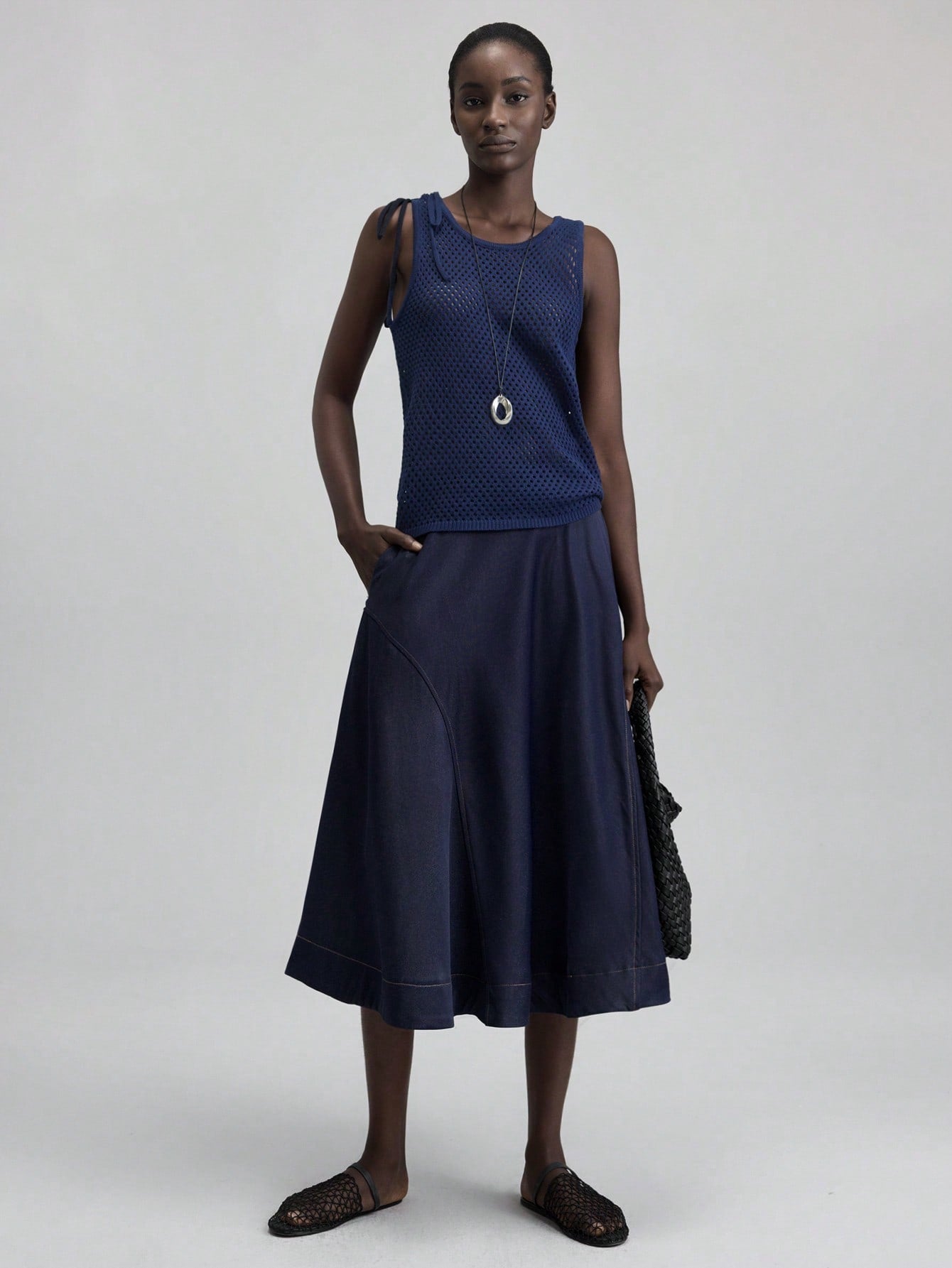 تنورة نسائية صيفية متوسطة الطول بجيوب بلون سادة من Ontre 2025
