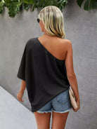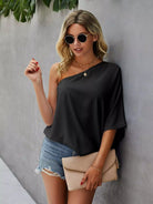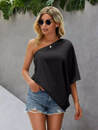 بلوزة سادة كبيرة الحجم بكتف واحد
