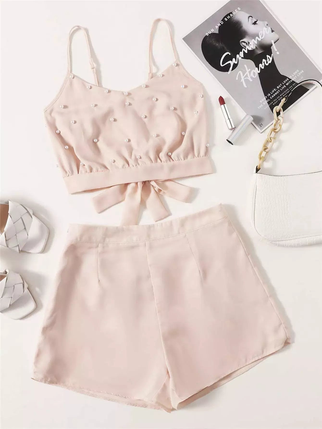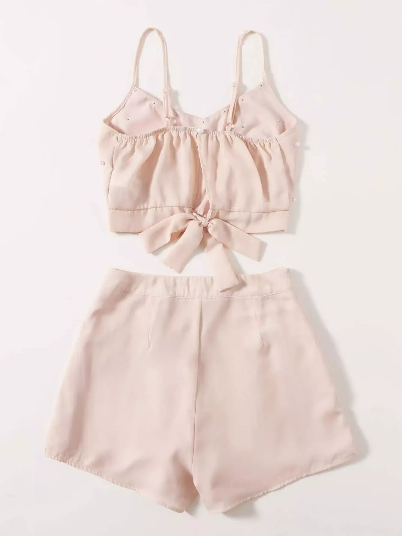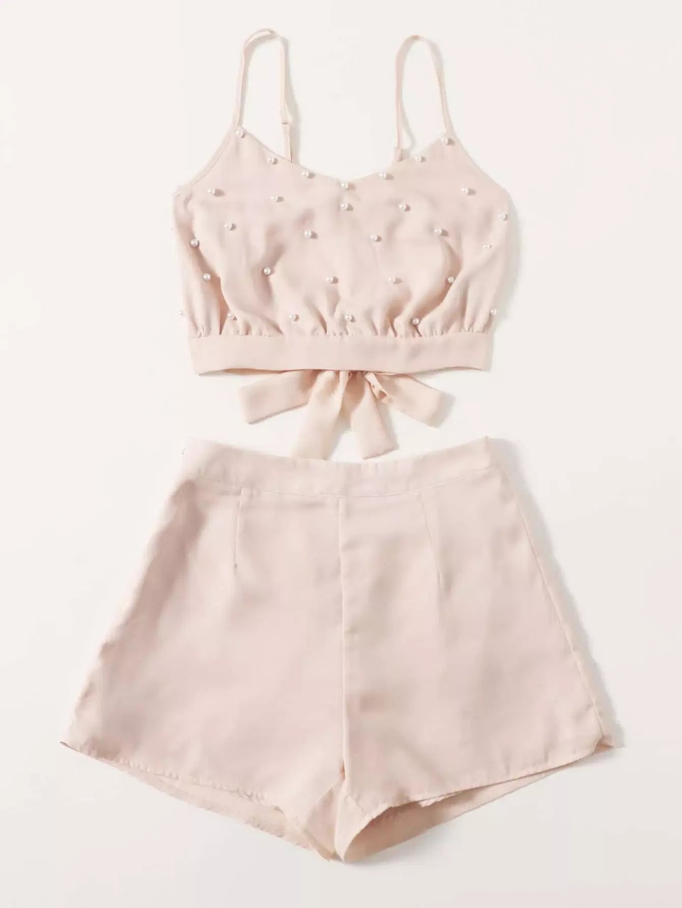تي شيرت قصير وقميص قصير بربطة لؤلؤ بربطة عنق على الظهر