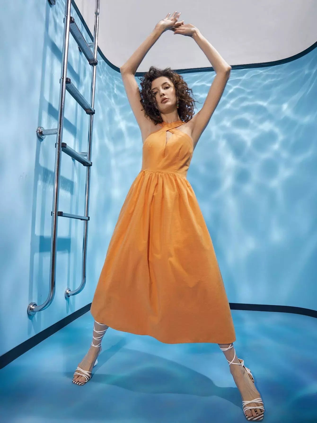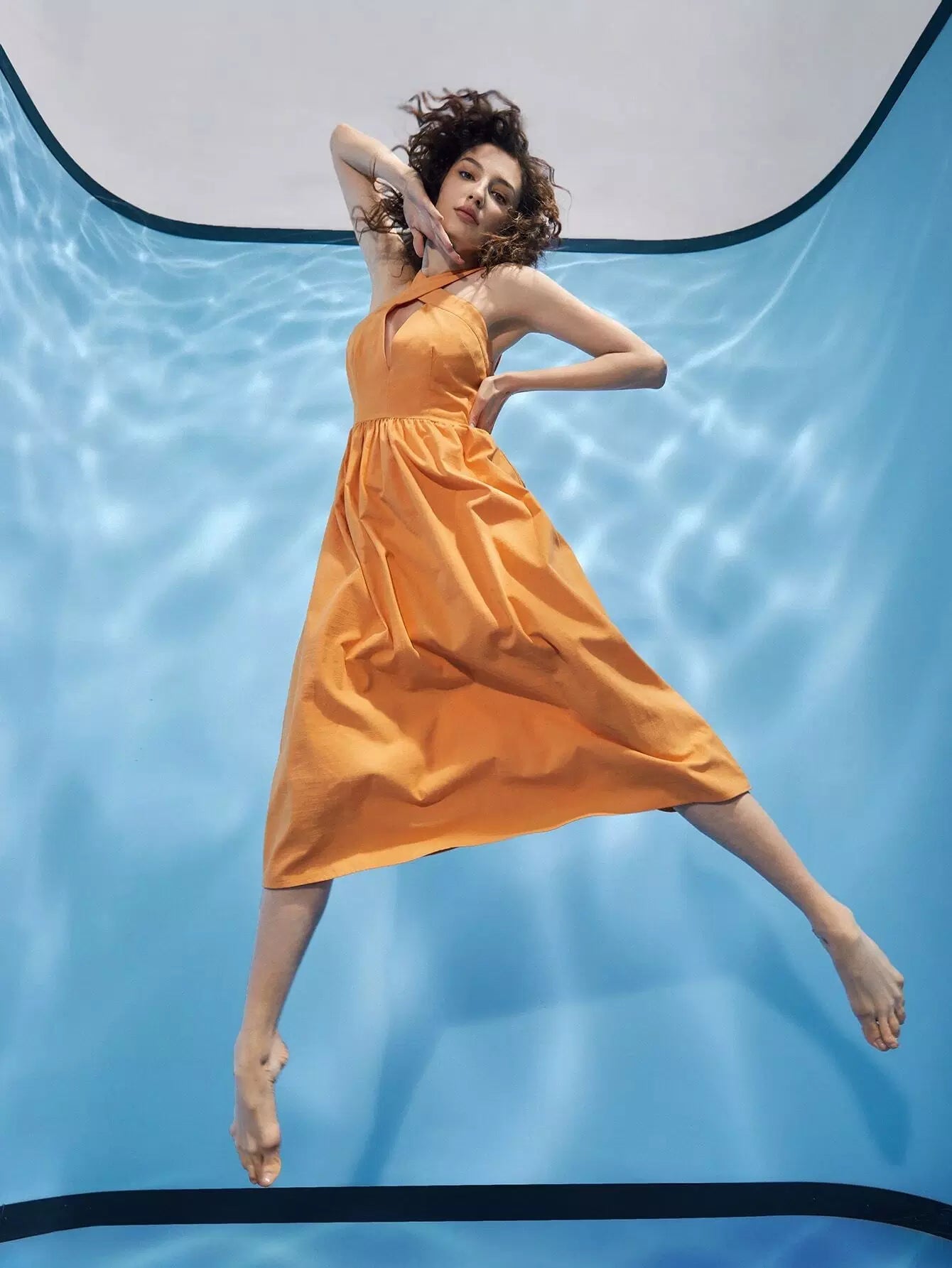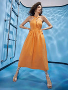 فستان هالتر متقاطع بفتحة رقبة منخفضة