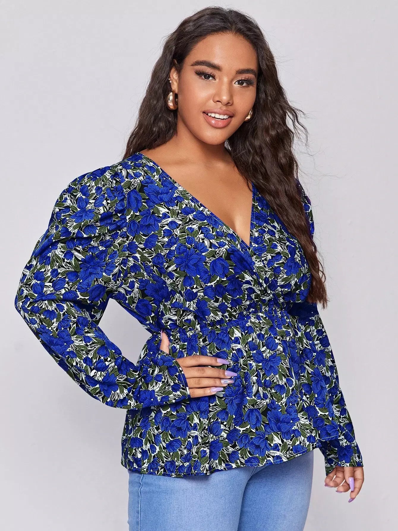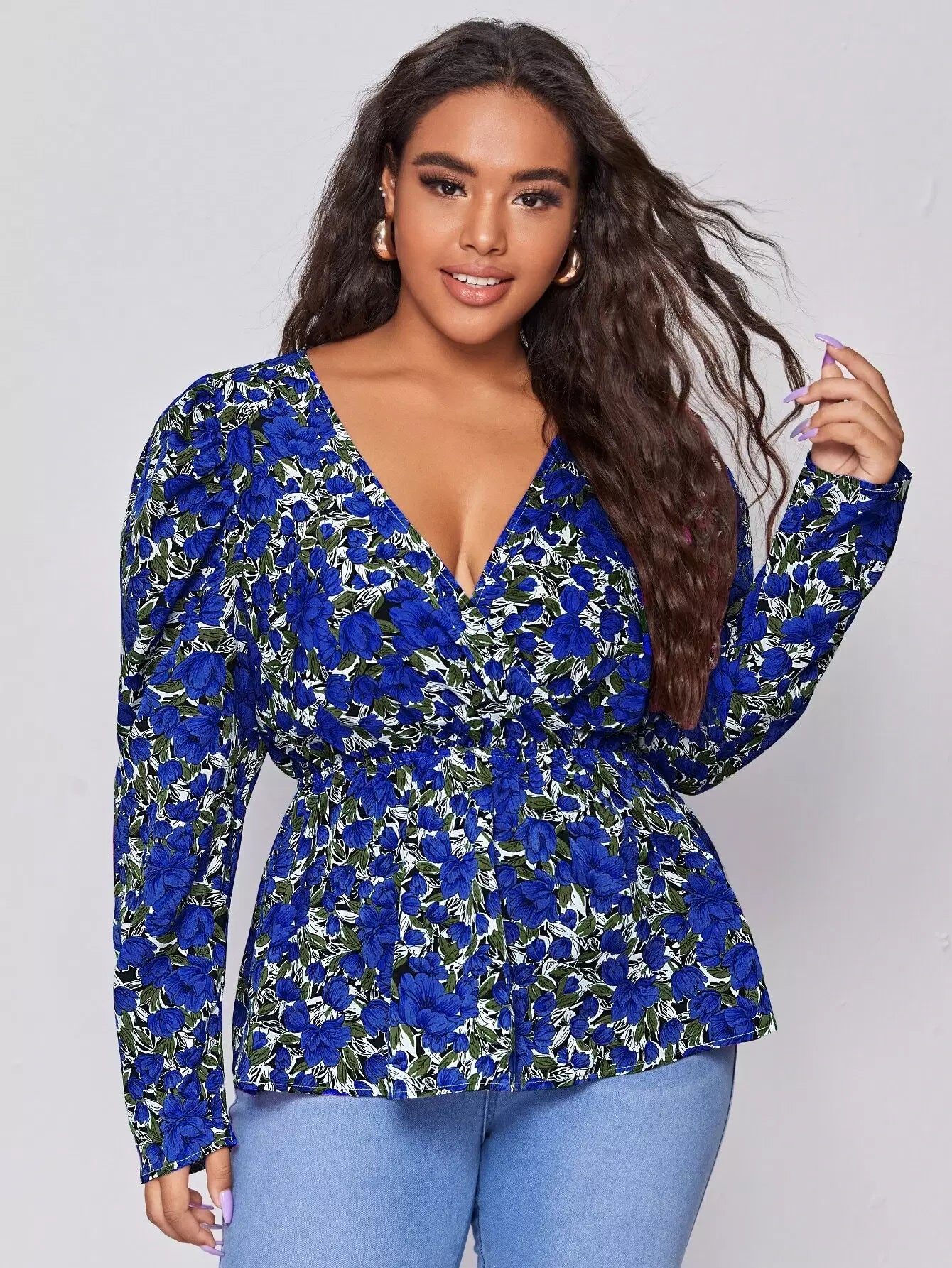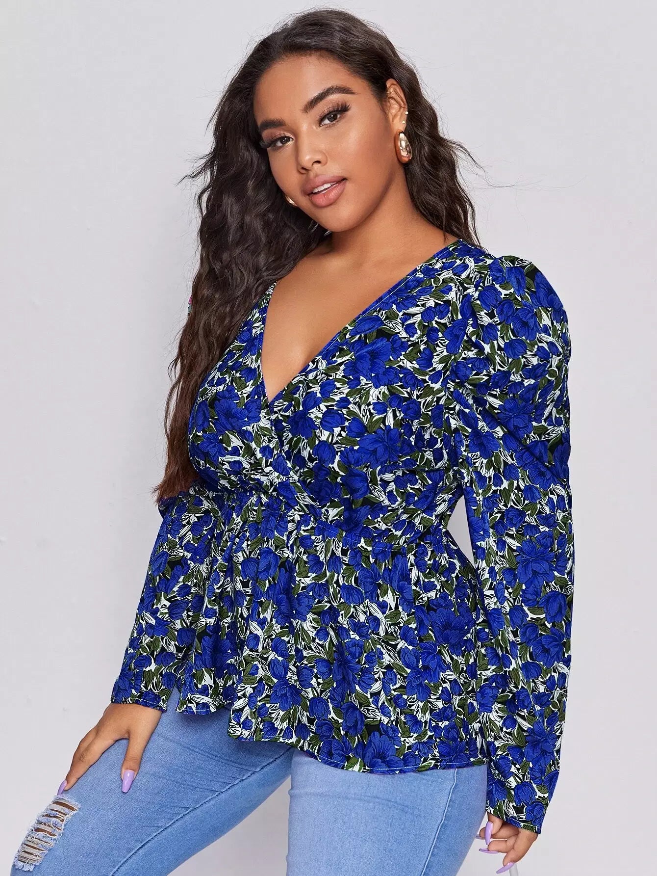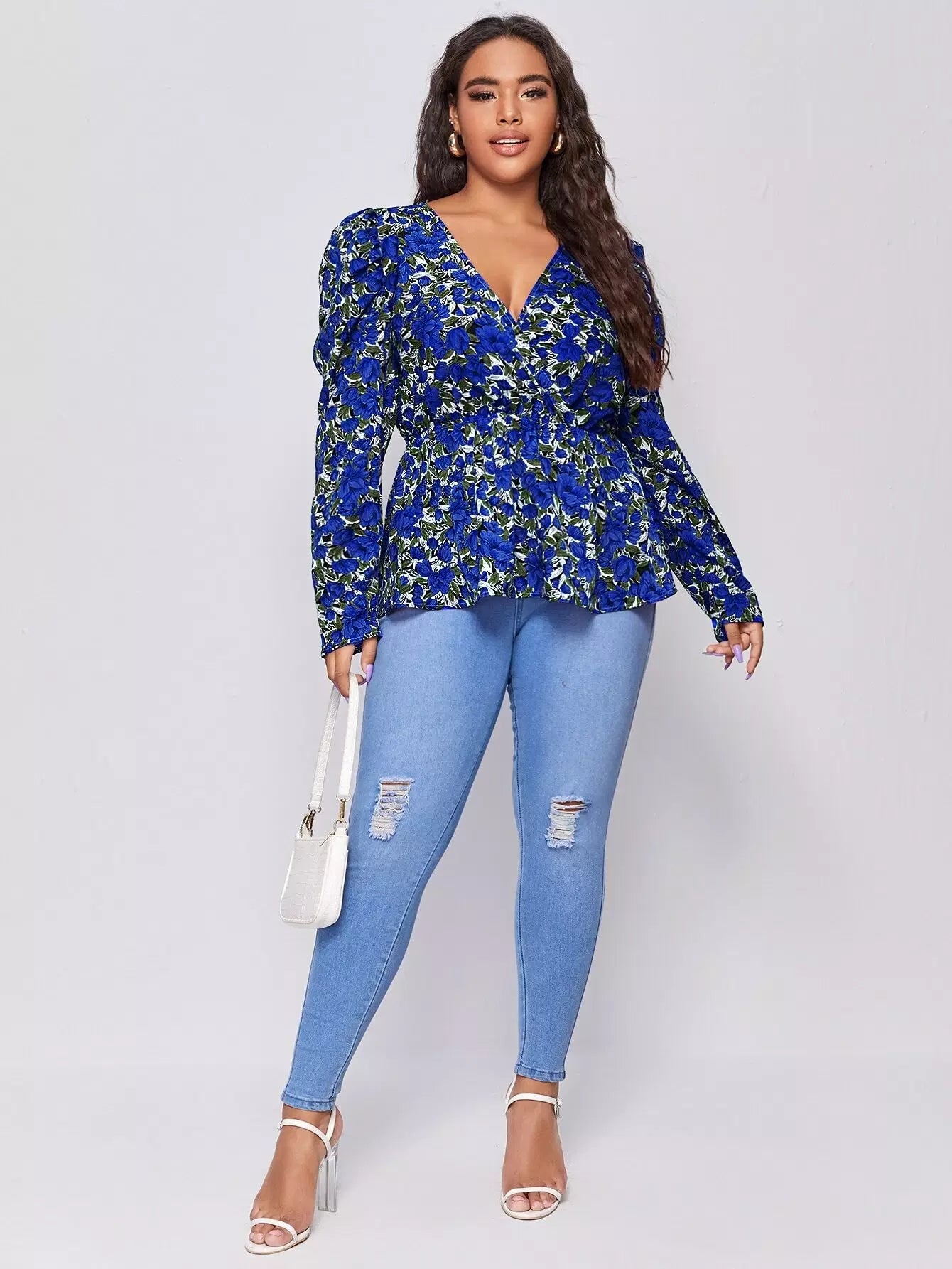 بلوزة بيبلوم بطبعة زهور بلوفر بلوفر بلوفر