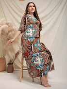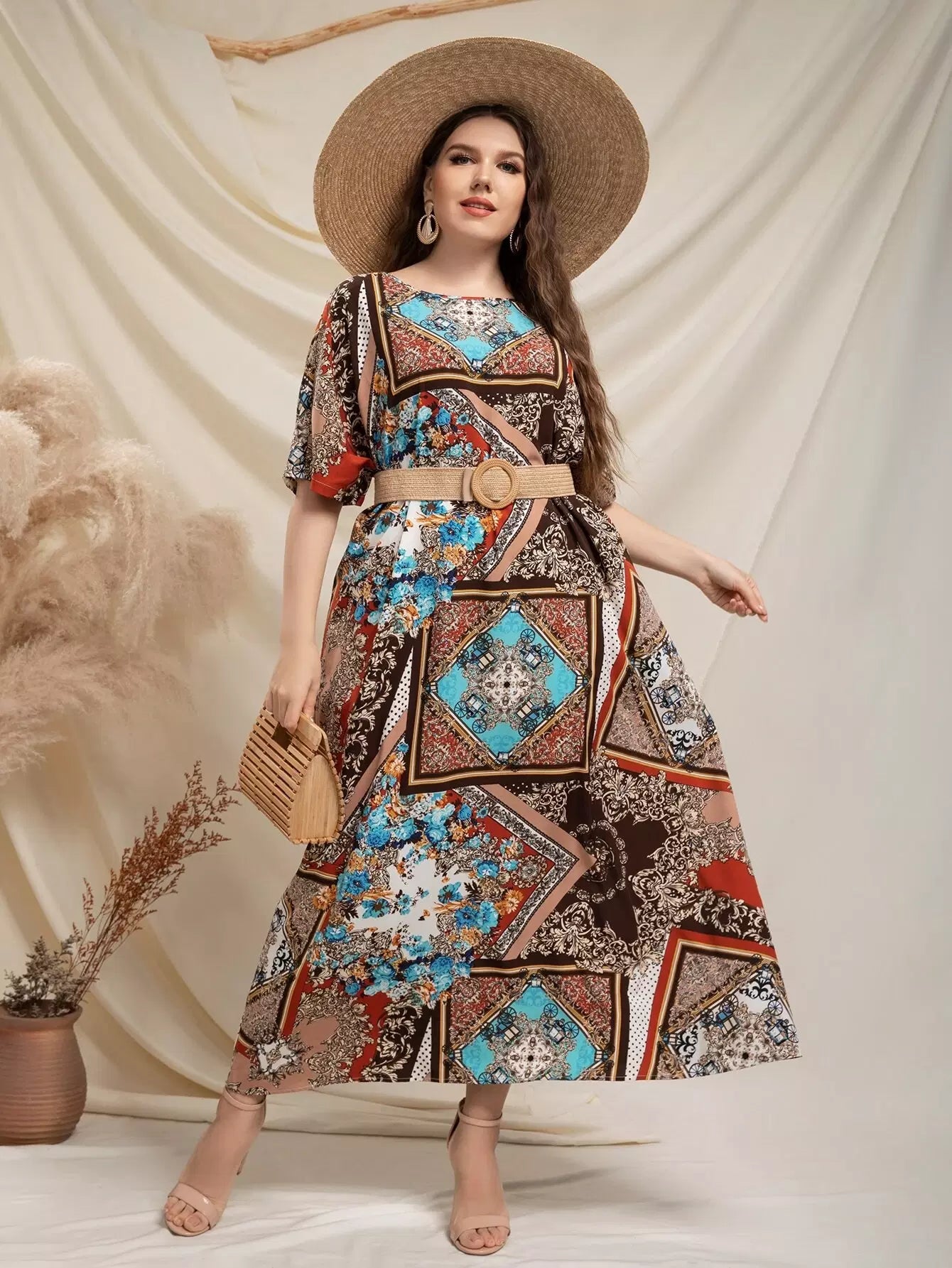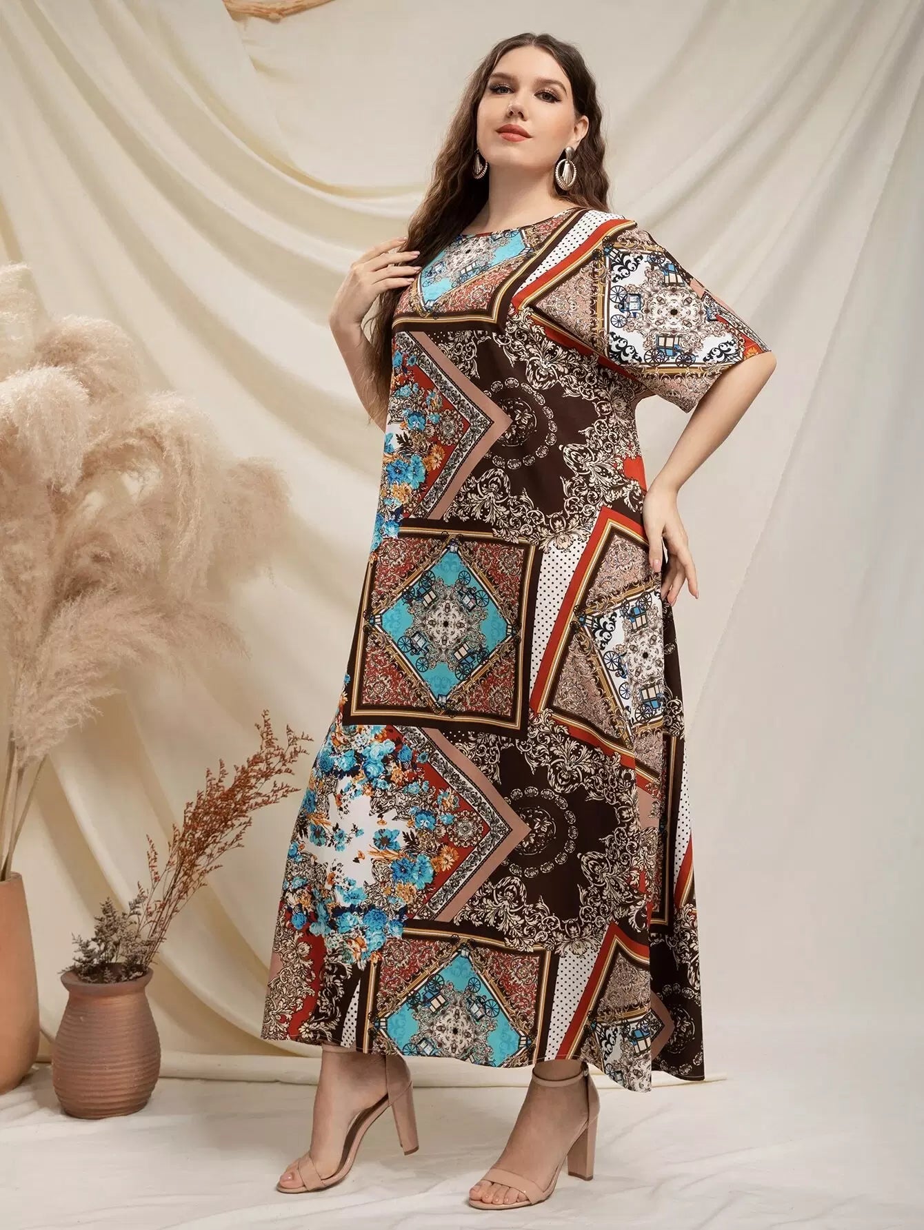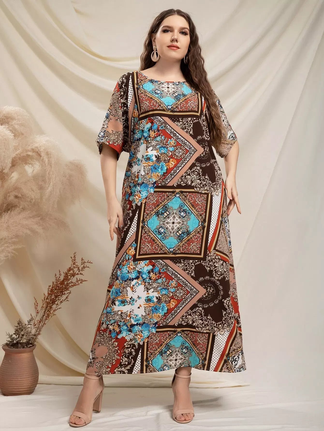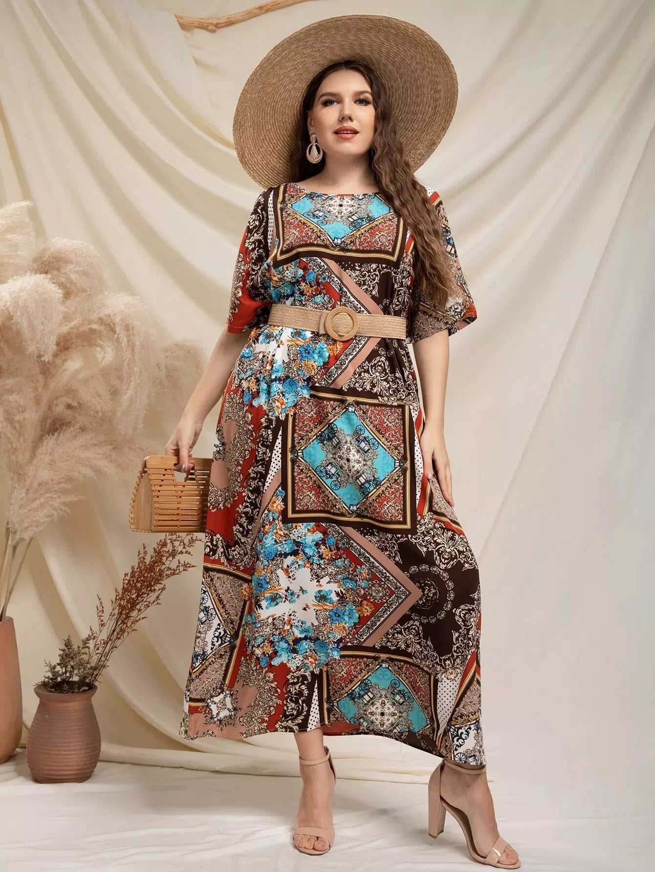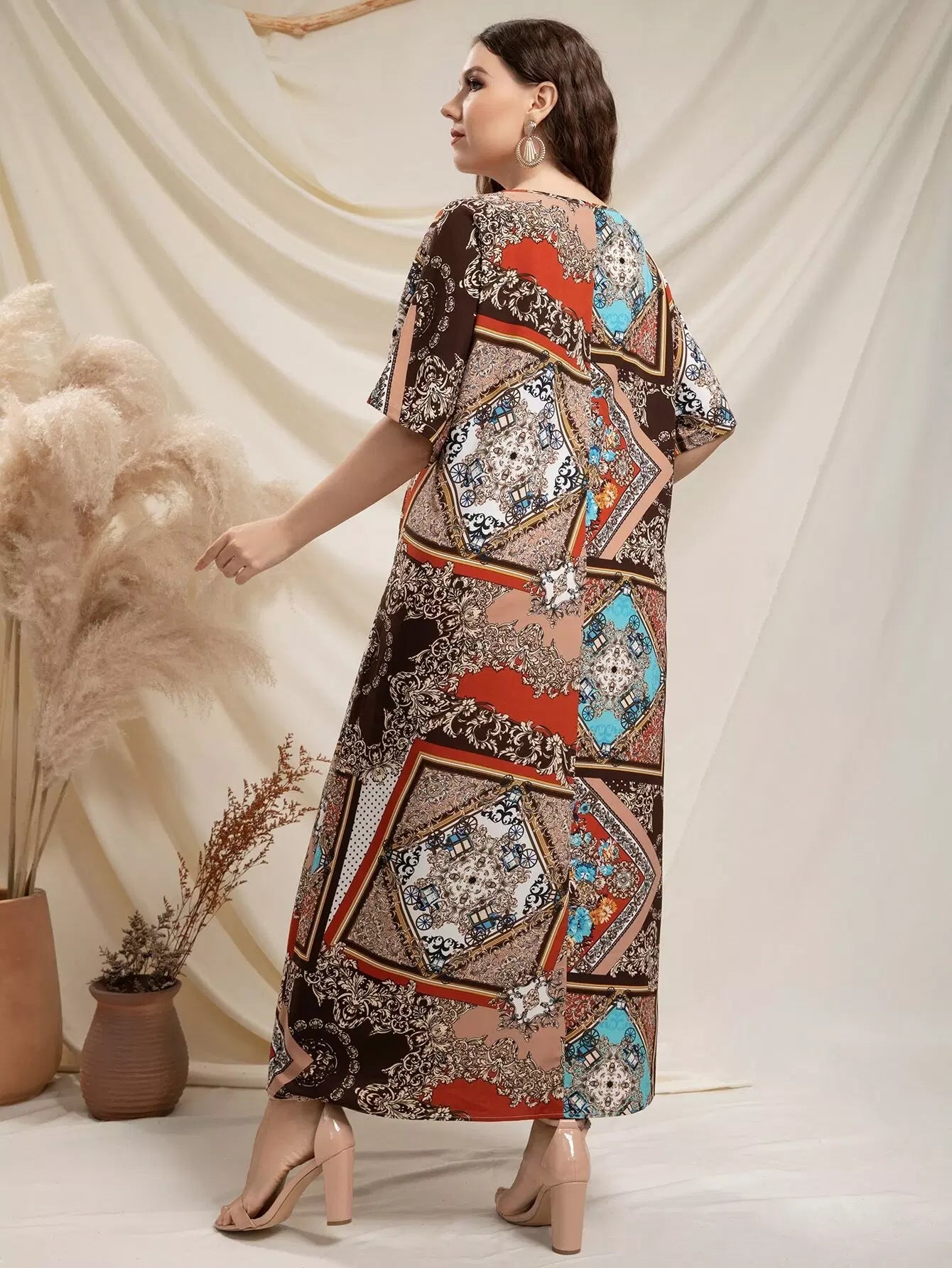 فستان دولمان بأكمام دولمان بدون حزام بأكمام باروكية ووشاح