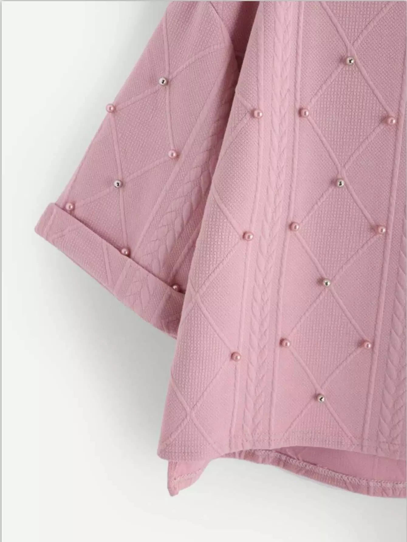 سويت شيرت مزخرف بالخرز مزين بالخرز عالي منخفض