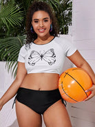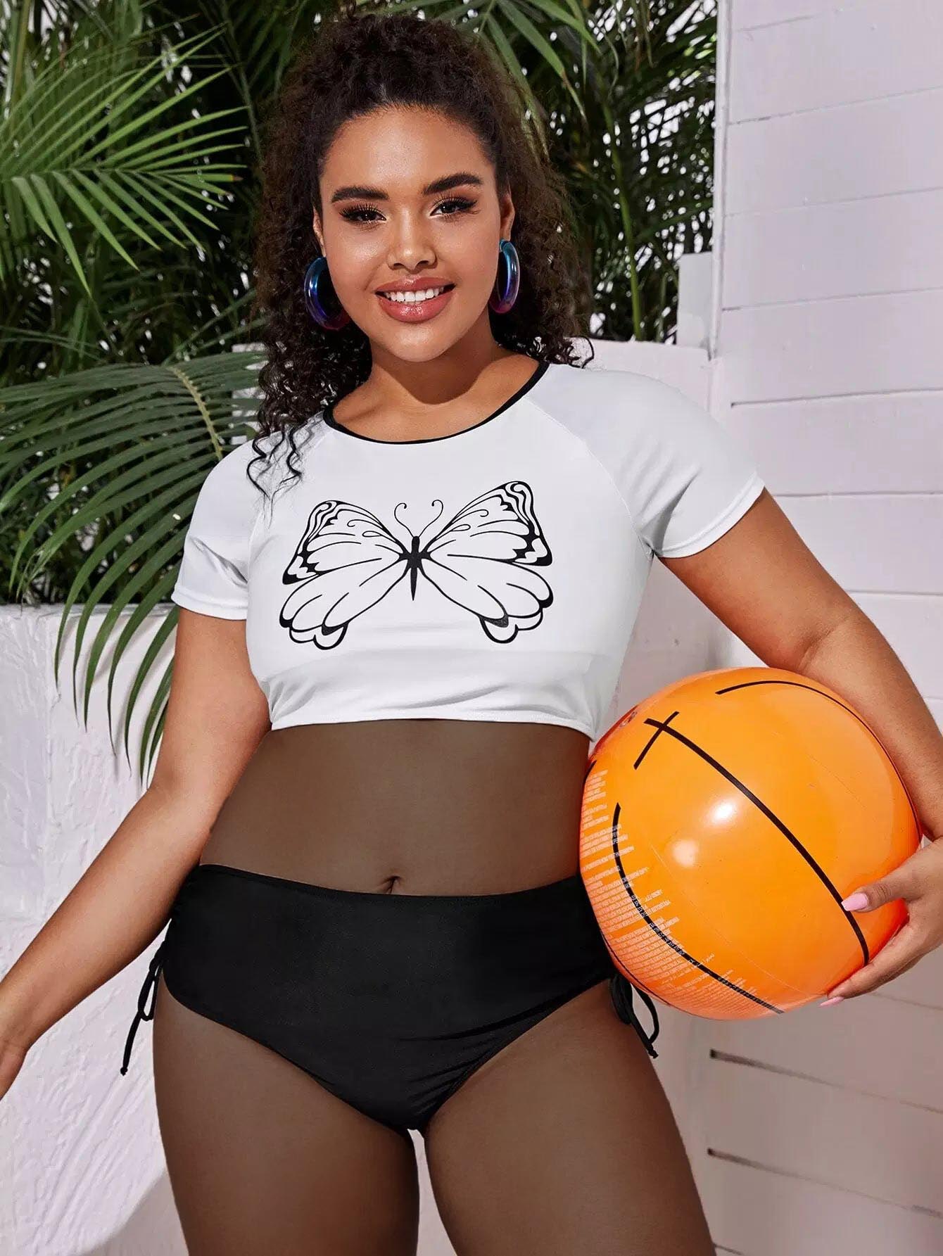 بدلة سباحة بيكيني بطبعة فراشة زائد مع أكمام قصيرة