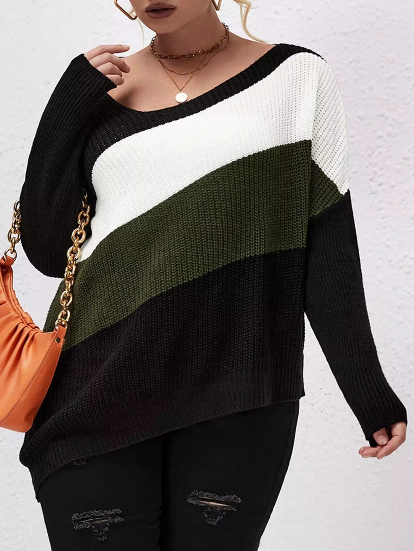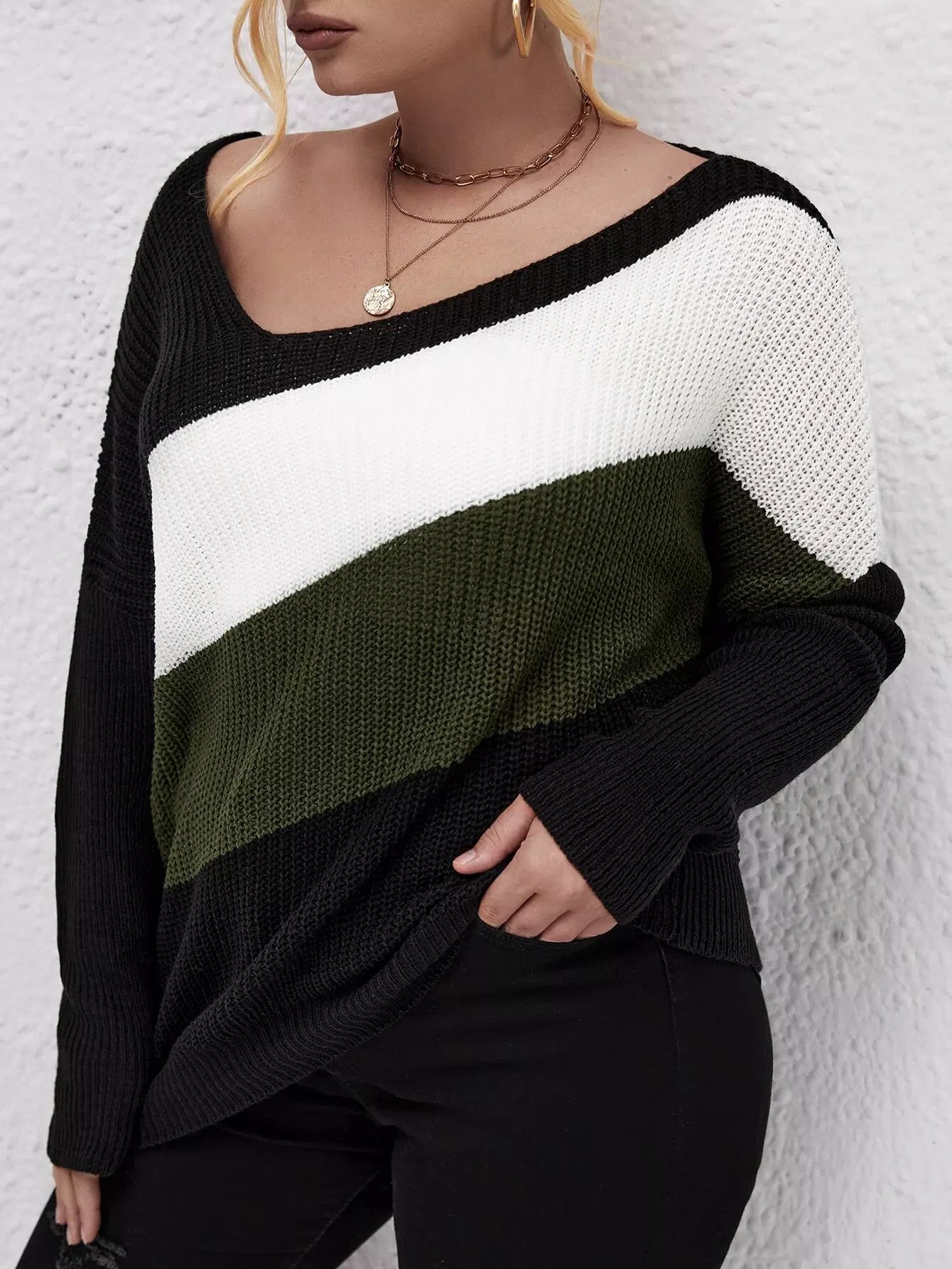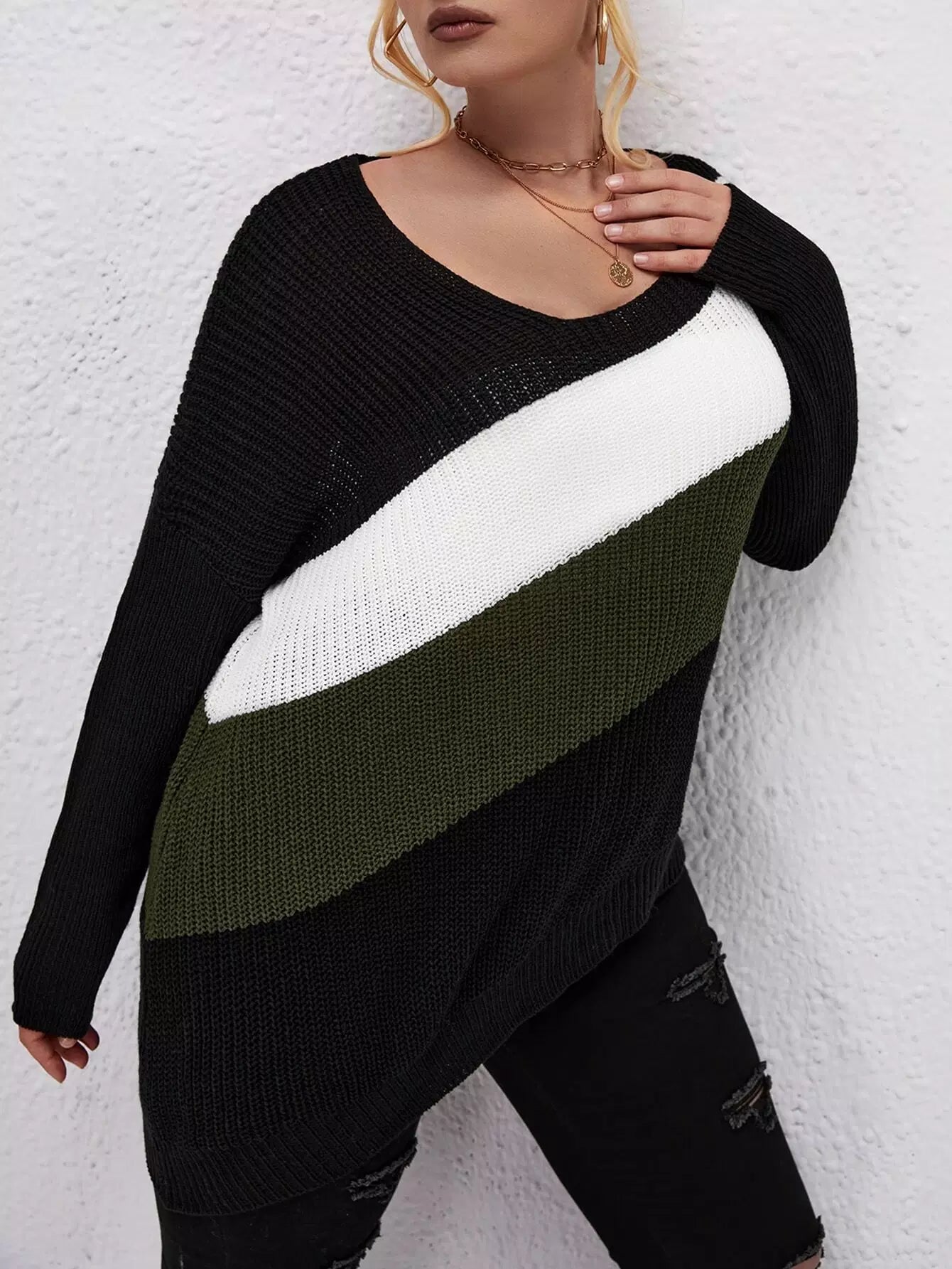 بلوز بحافة غير متماثلة منسدلة الكتفين بحافة غير متماثلة بلون زائد