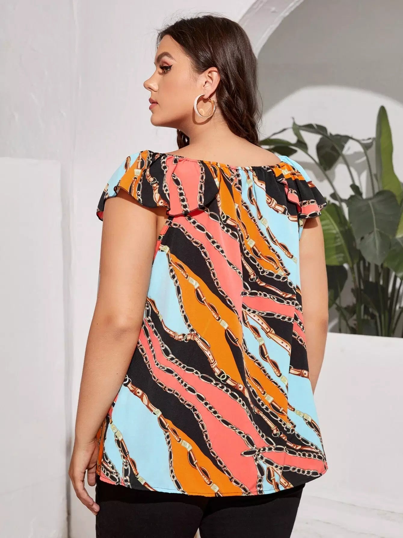 بلوزة بطبعة سلسلة مطبوعة بالألوان زائد