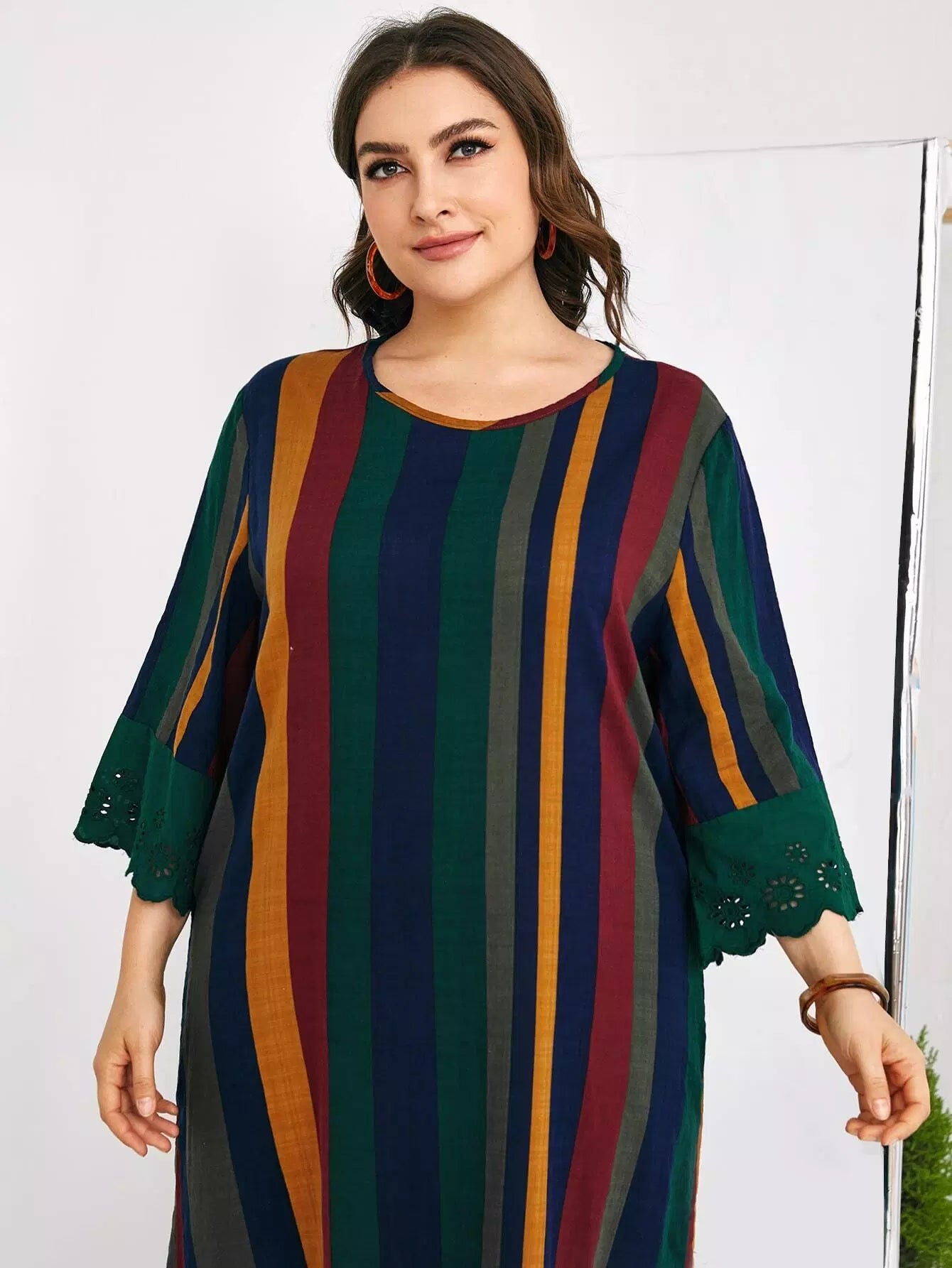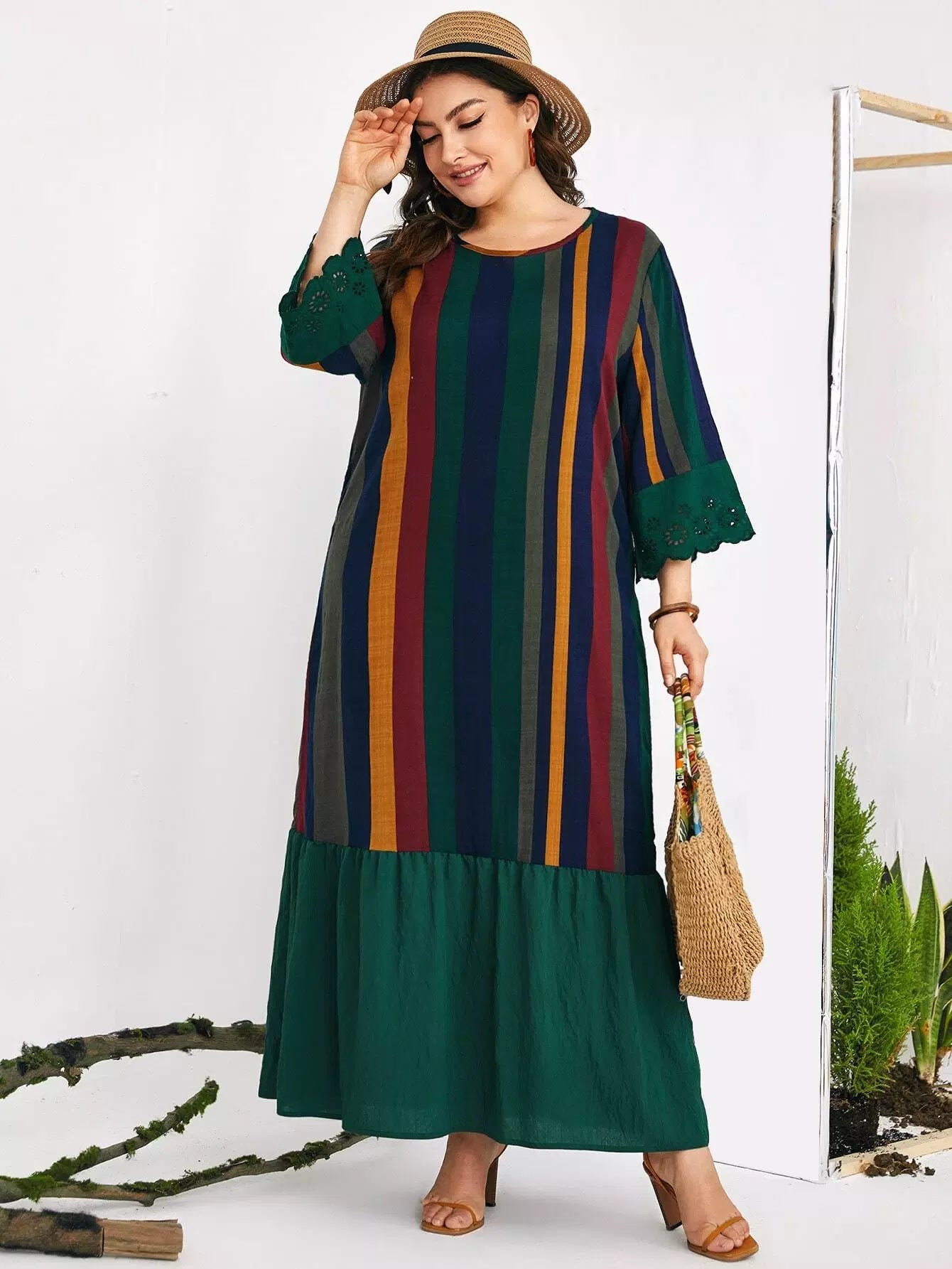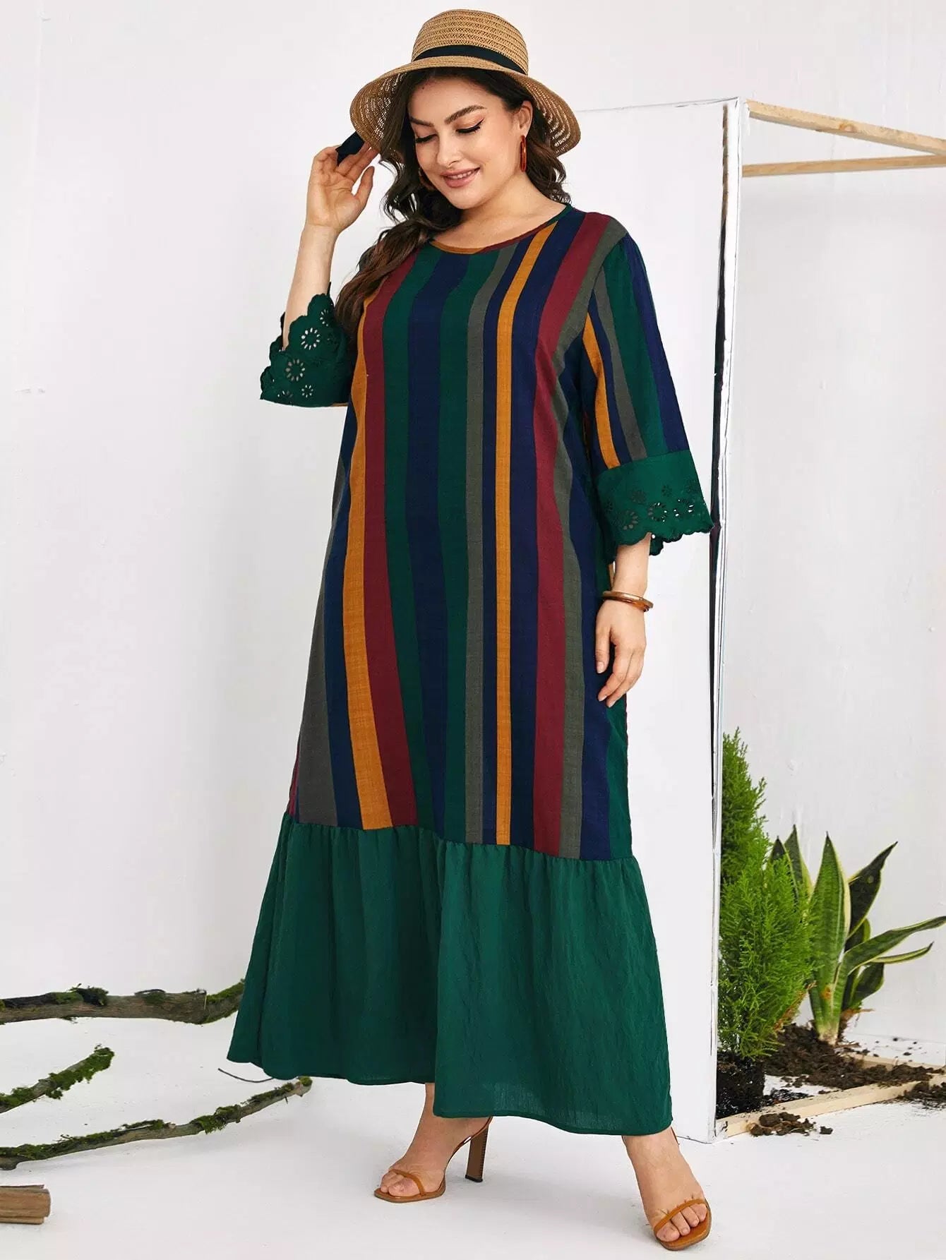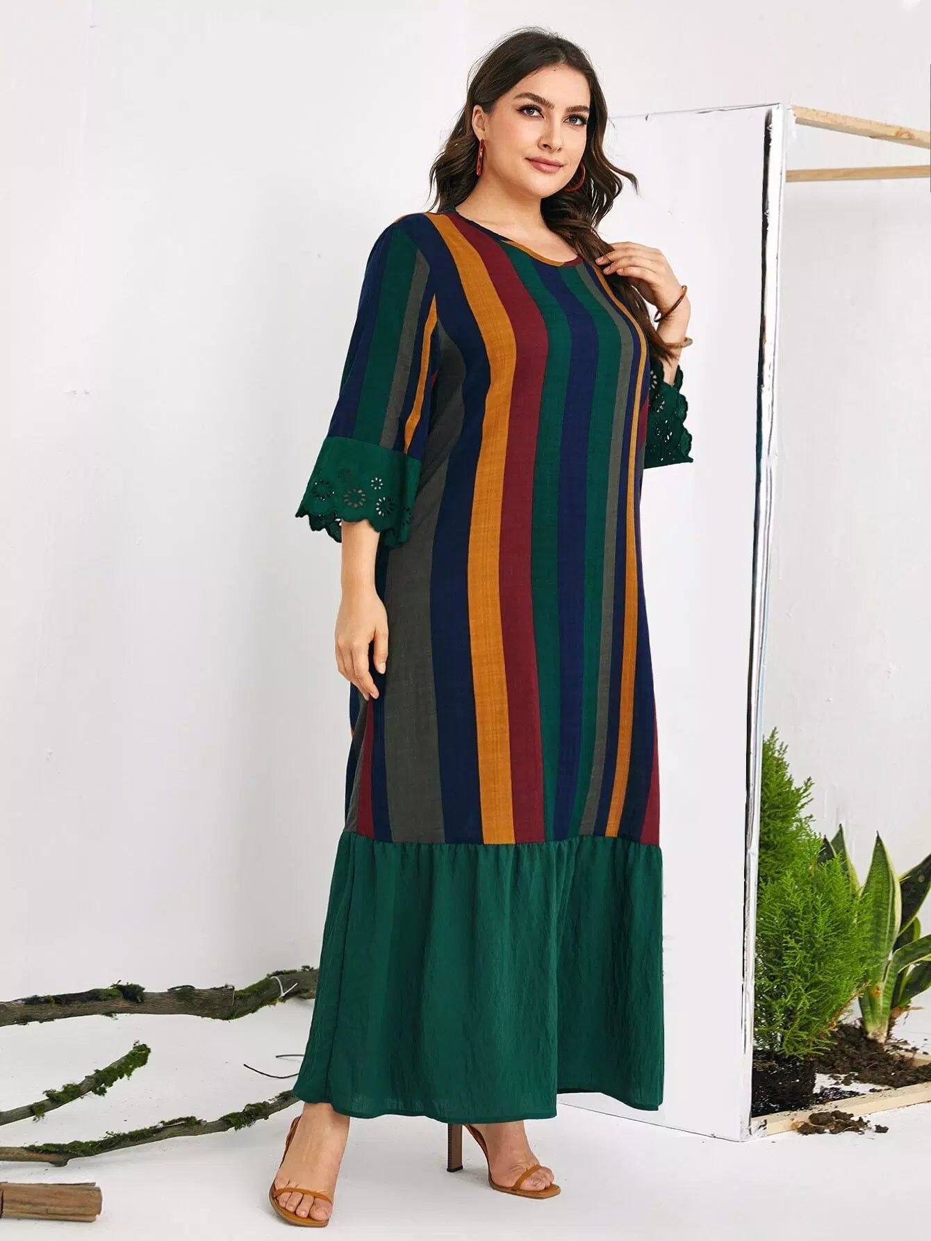 فستان ماكسي بطبعة مخططة بالألوان بلون زائد مخطط