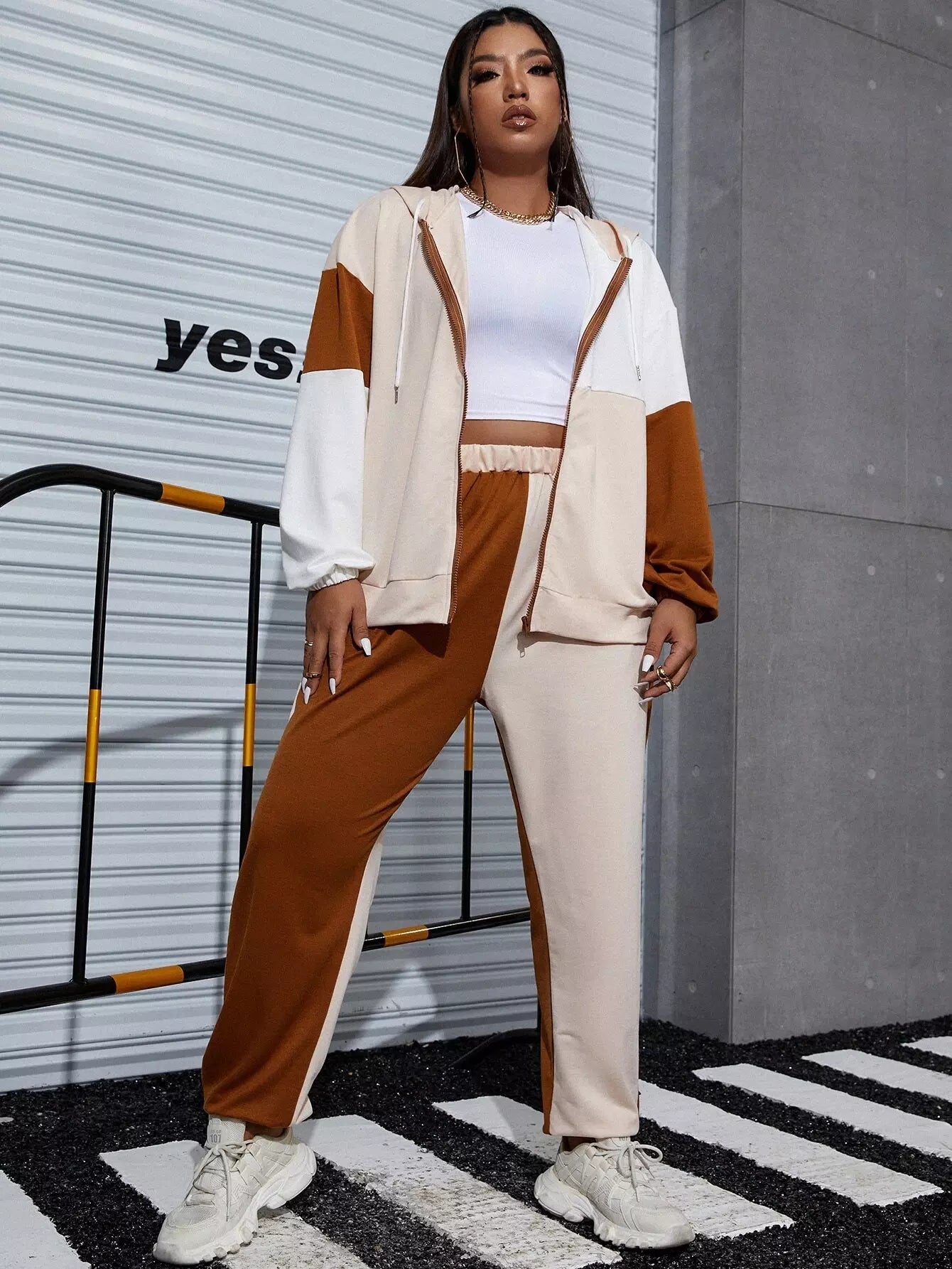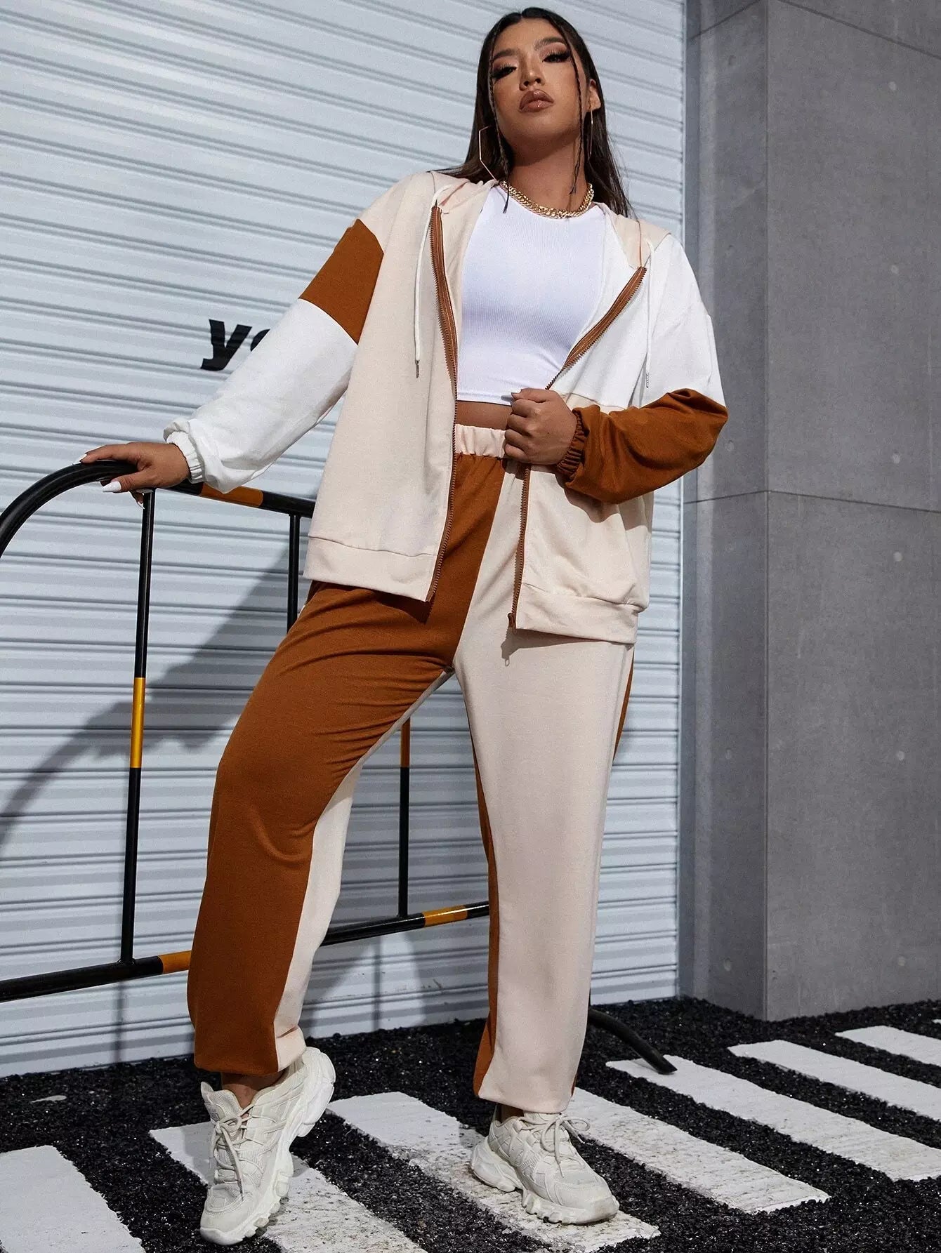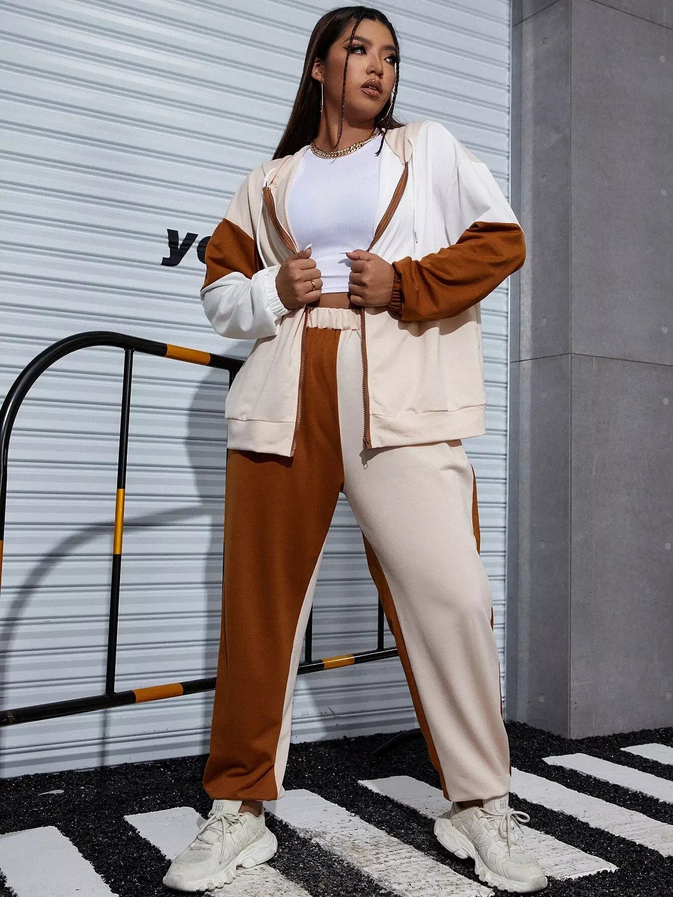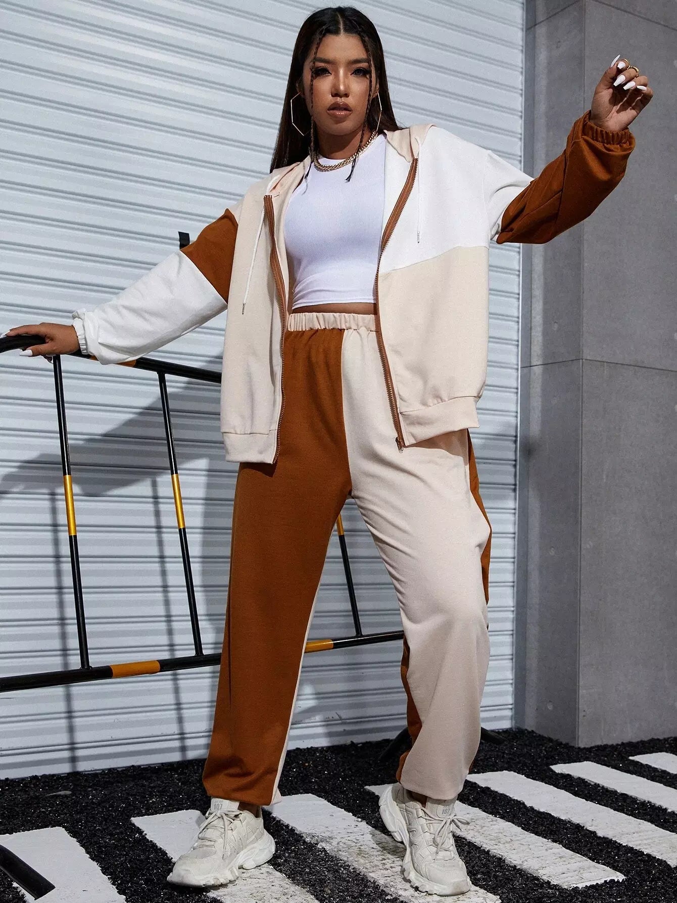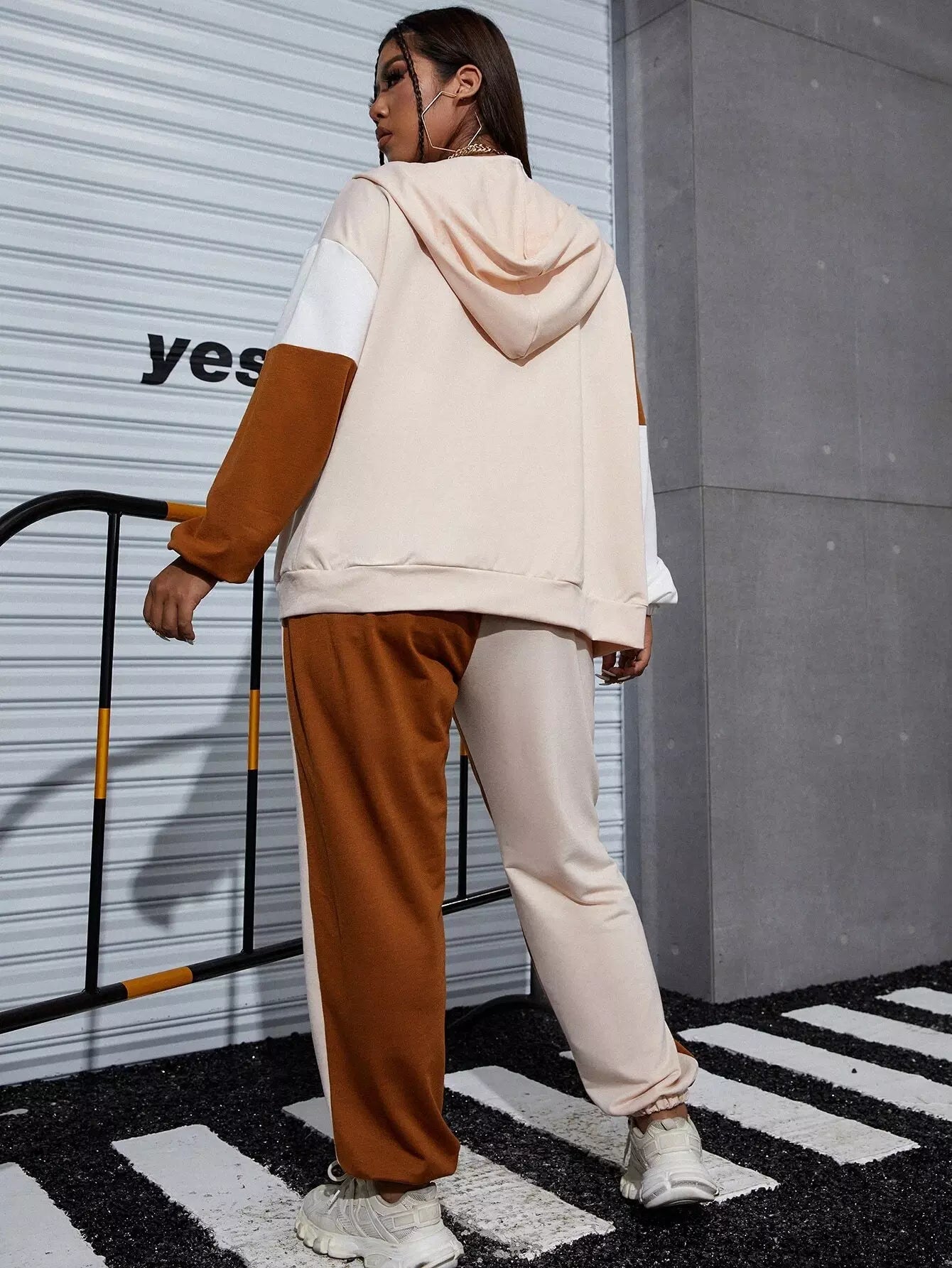 هودي وسراويل رياضية وسراويل رياضية ملونة بسحاب منسدل على الكتف