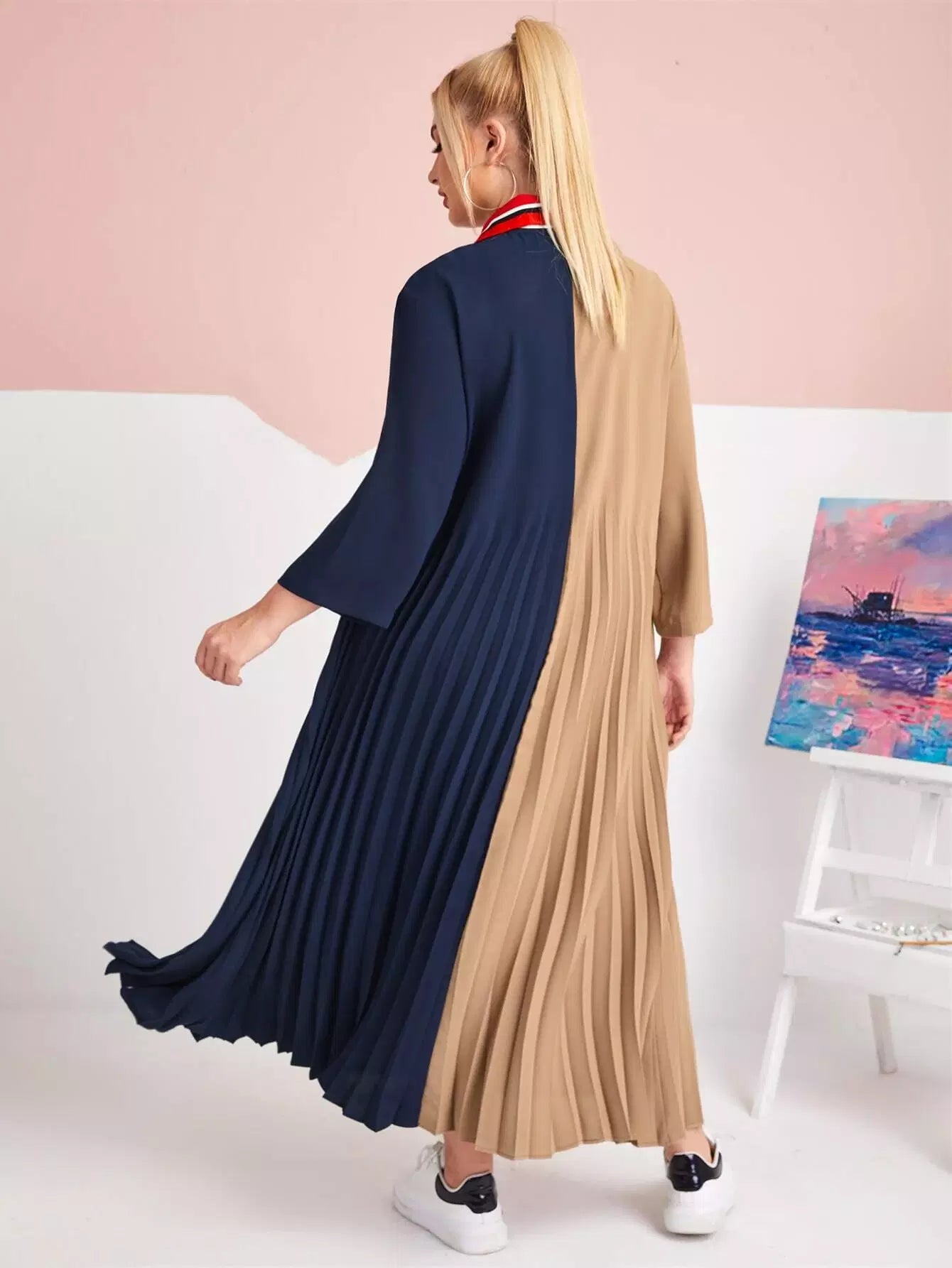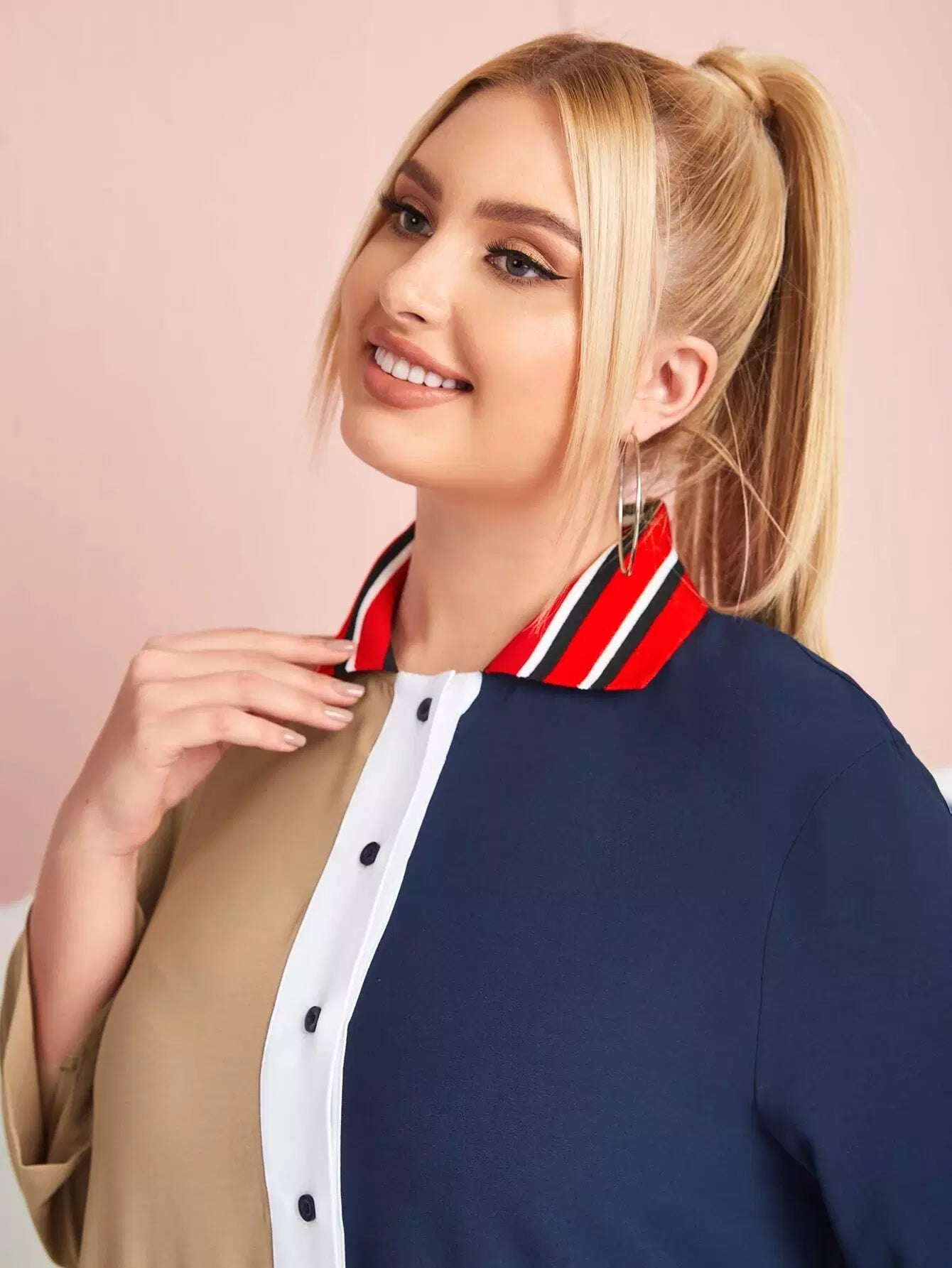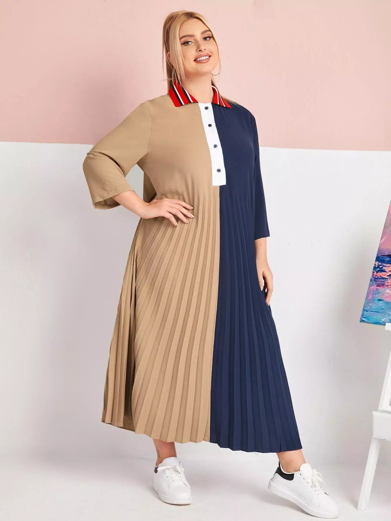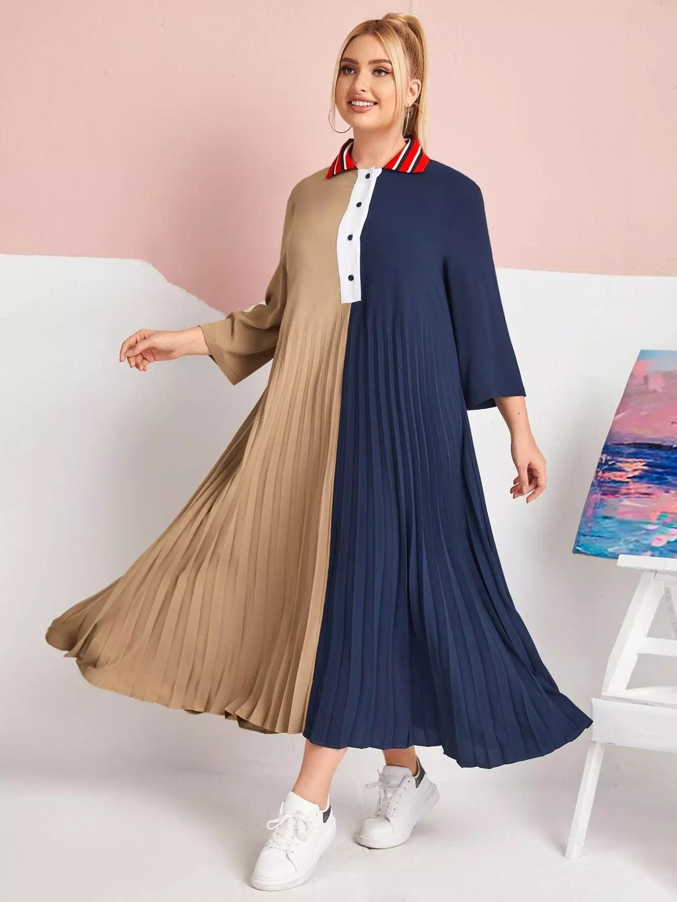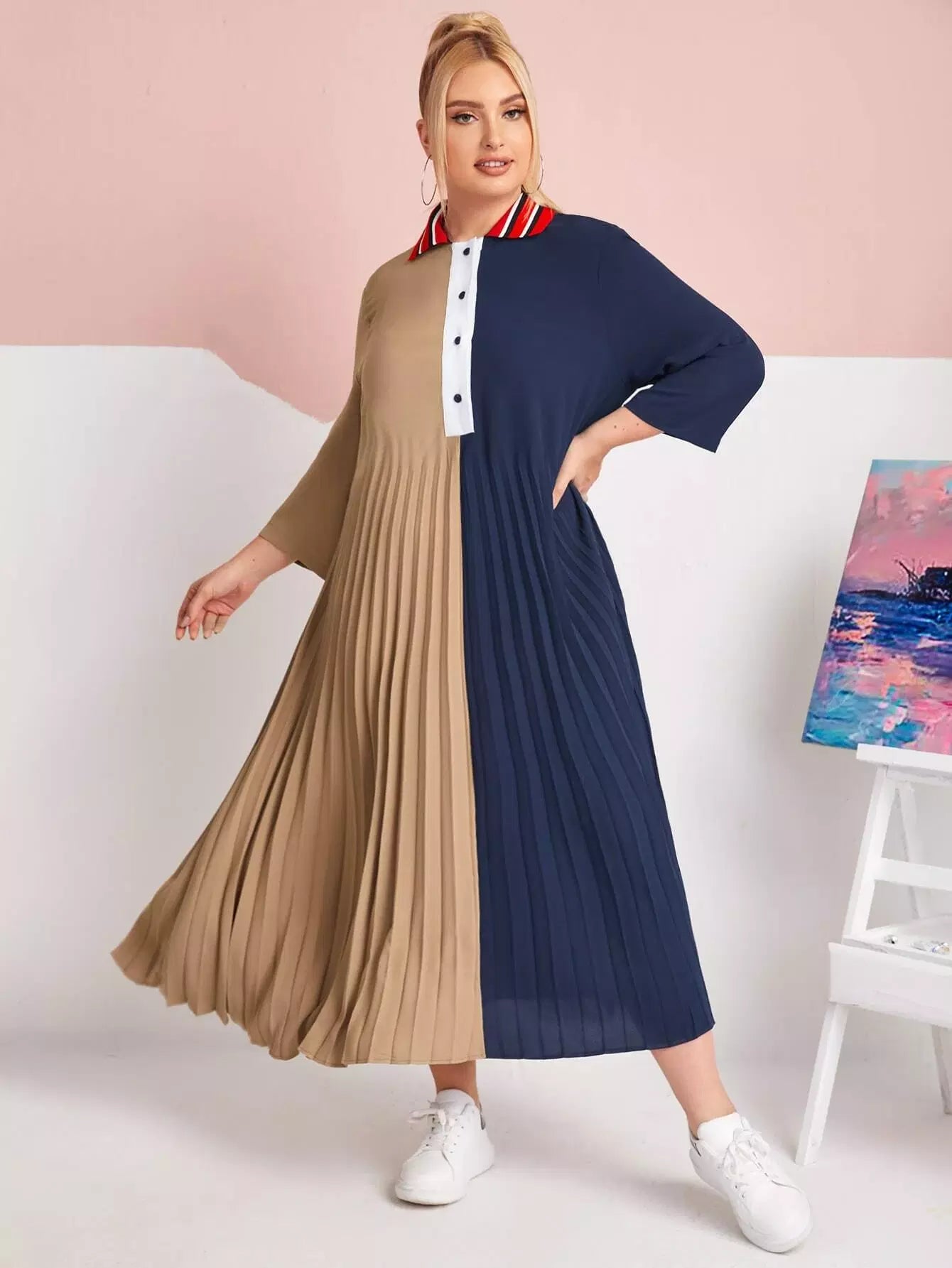 فستان بياقة مخططة بلون مغاير بياقة مخططة بلون مغاير وحافة مطوية