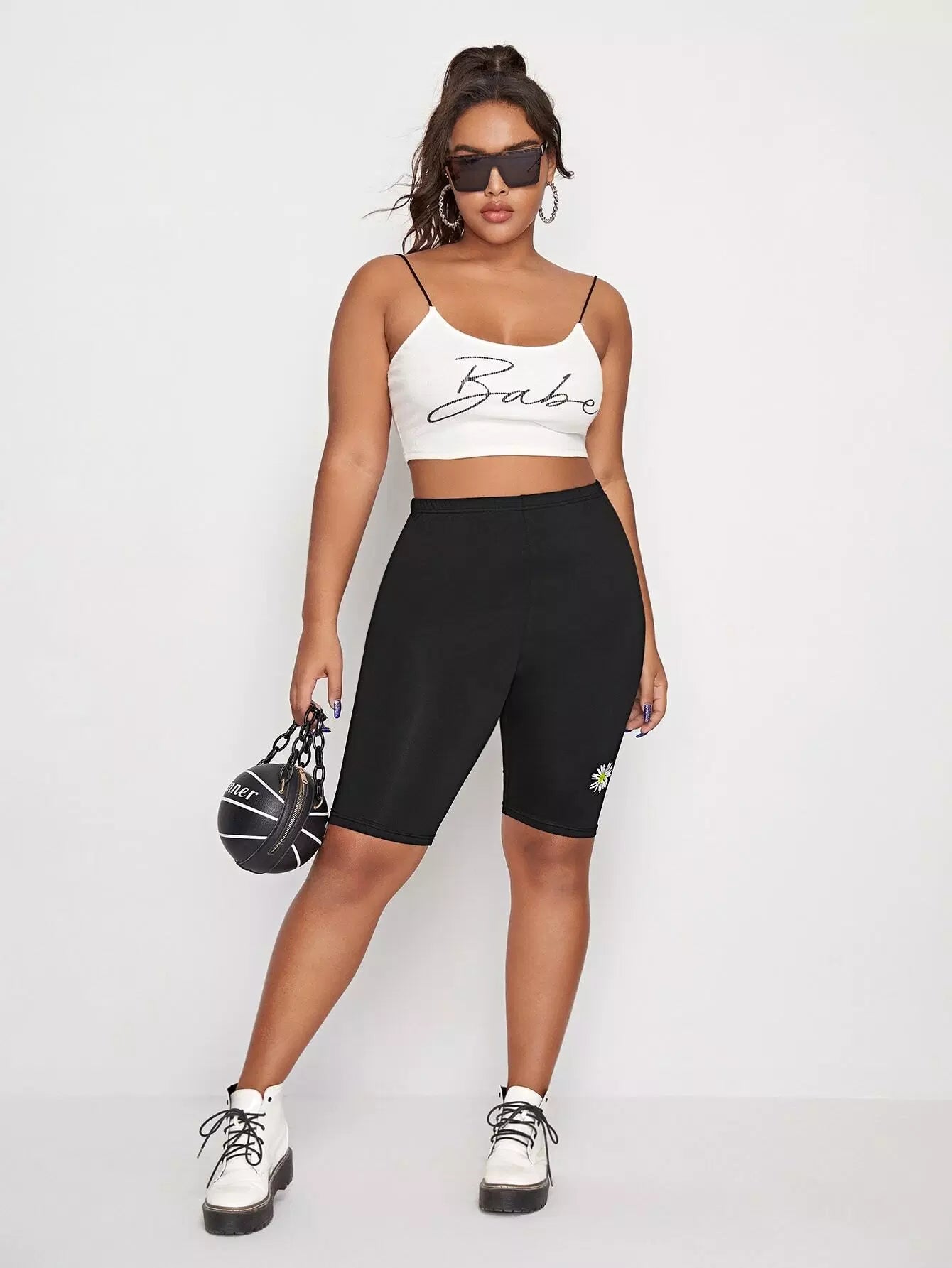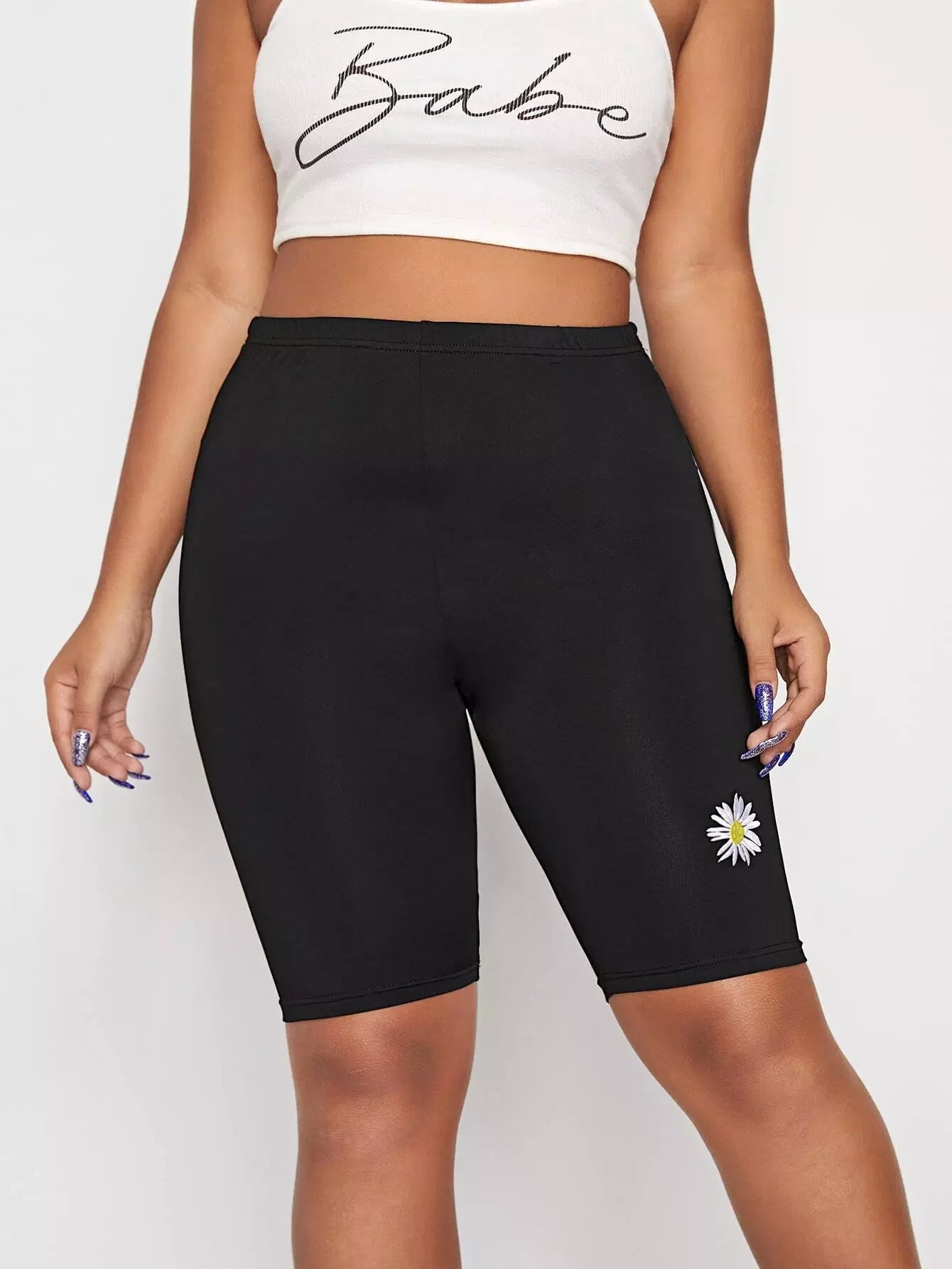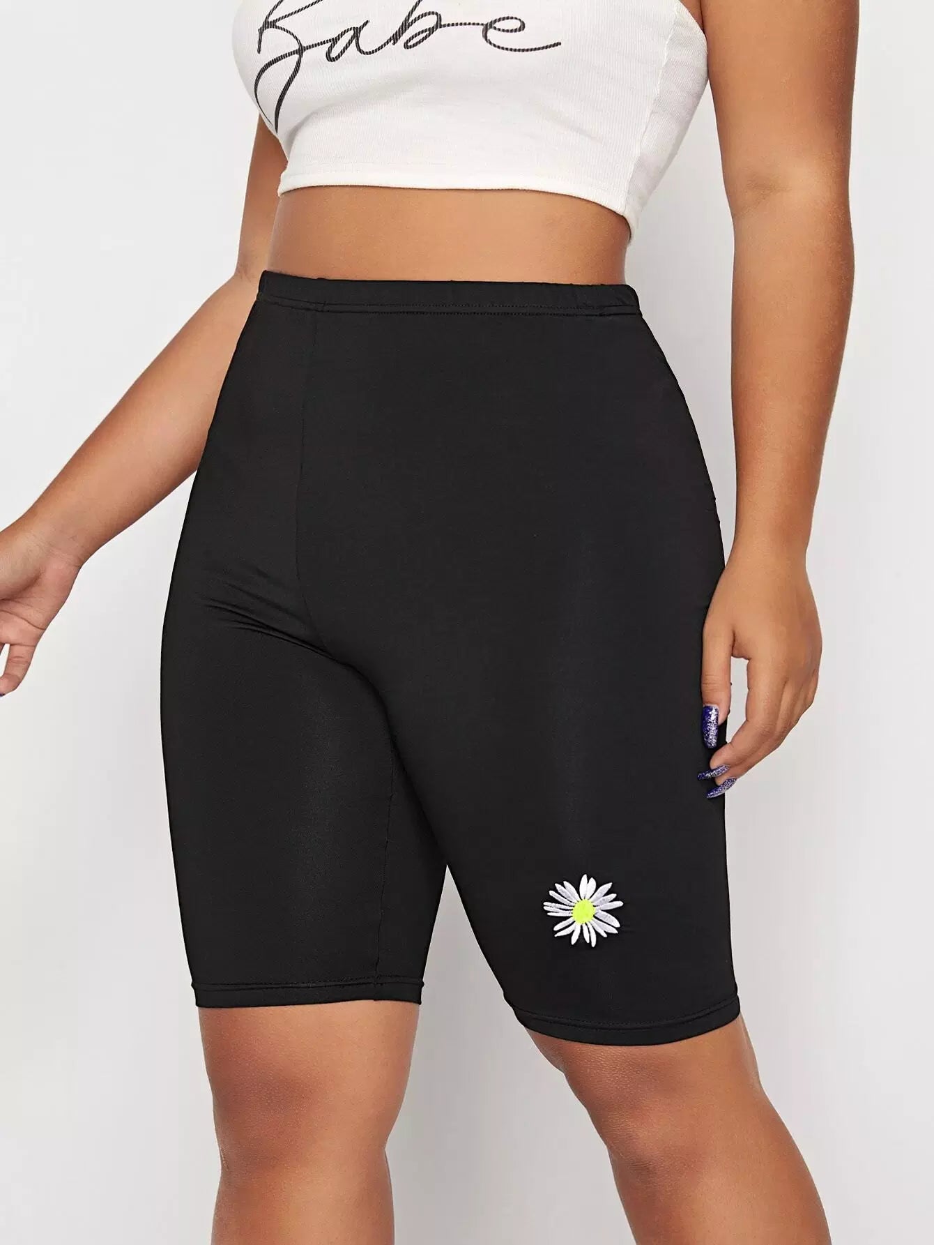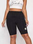 نحيف - مقاس كبير شورت بايكر مطرز بالزهور من ديزي