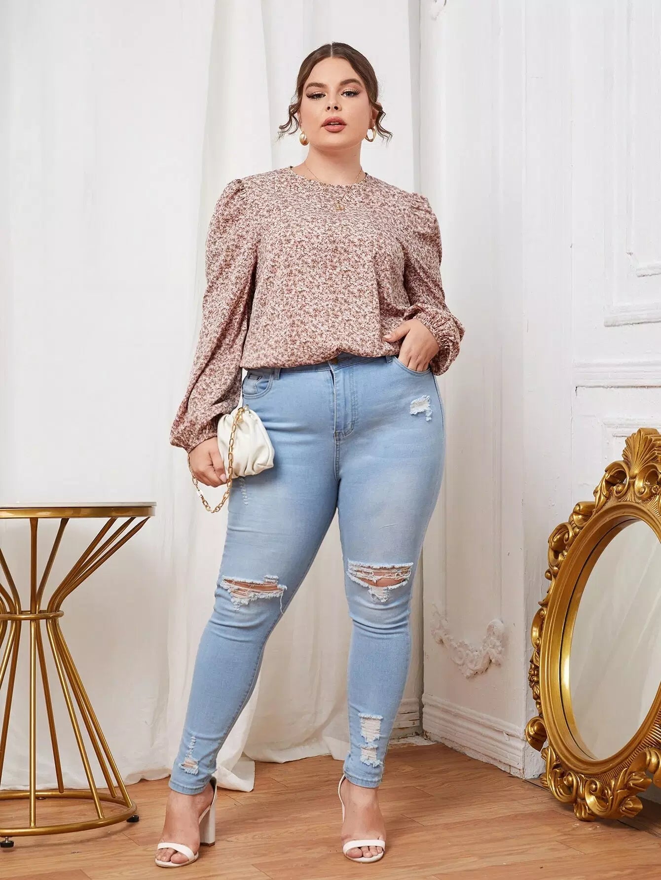 بلوزة بأكمام ديتسي ديتسي بأزهار زهرية بأكمام أسقف