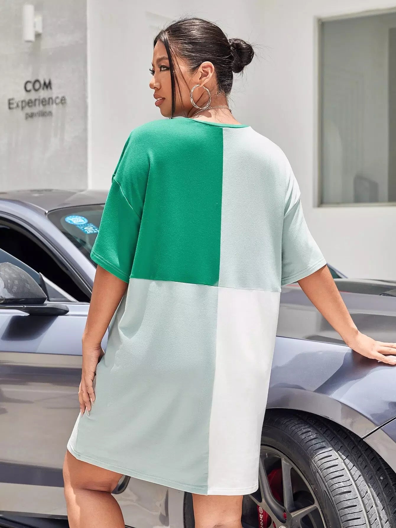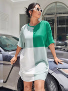 فستان بدون أكتاف منسدل الأكتاف زائد ملون