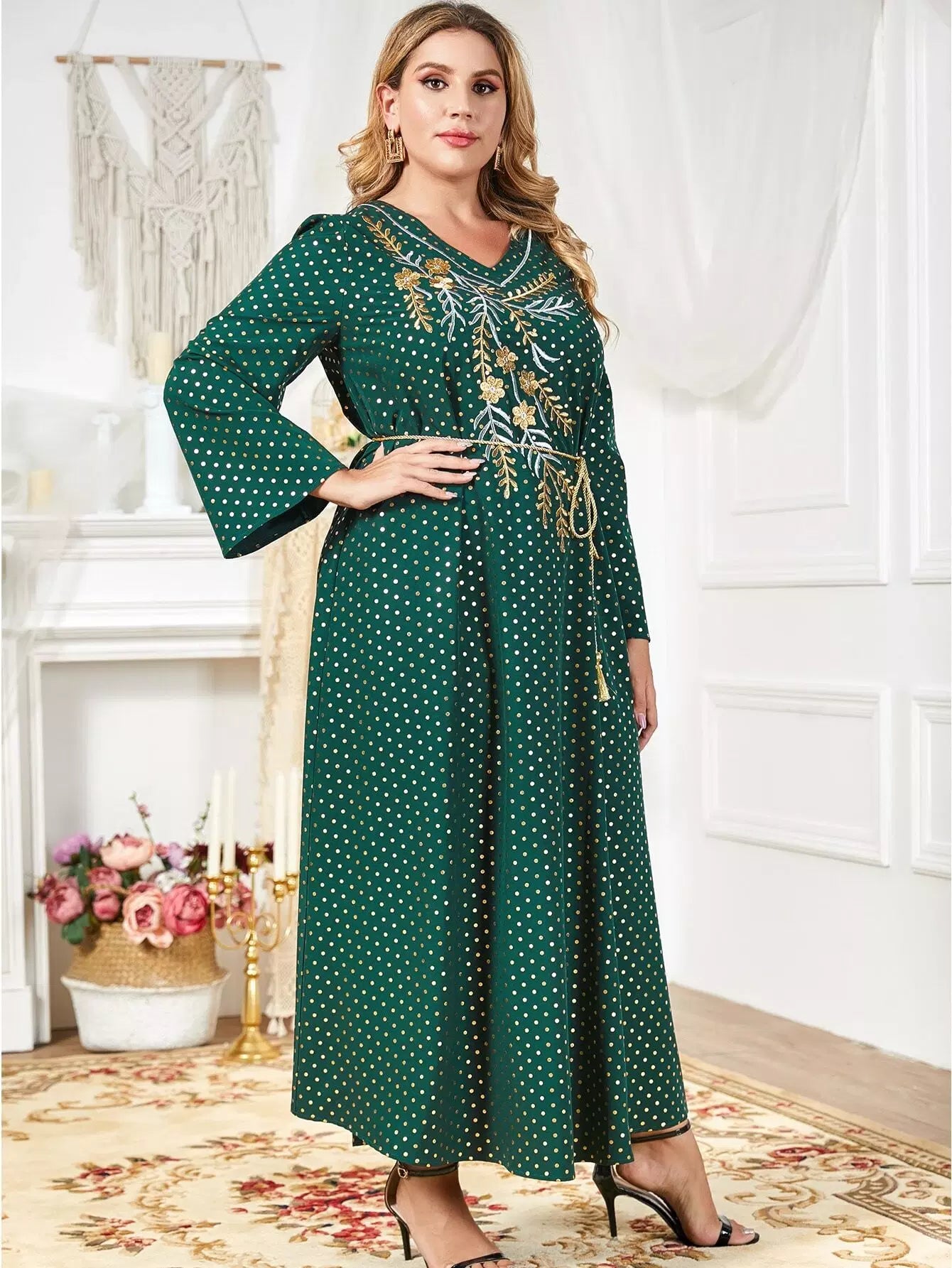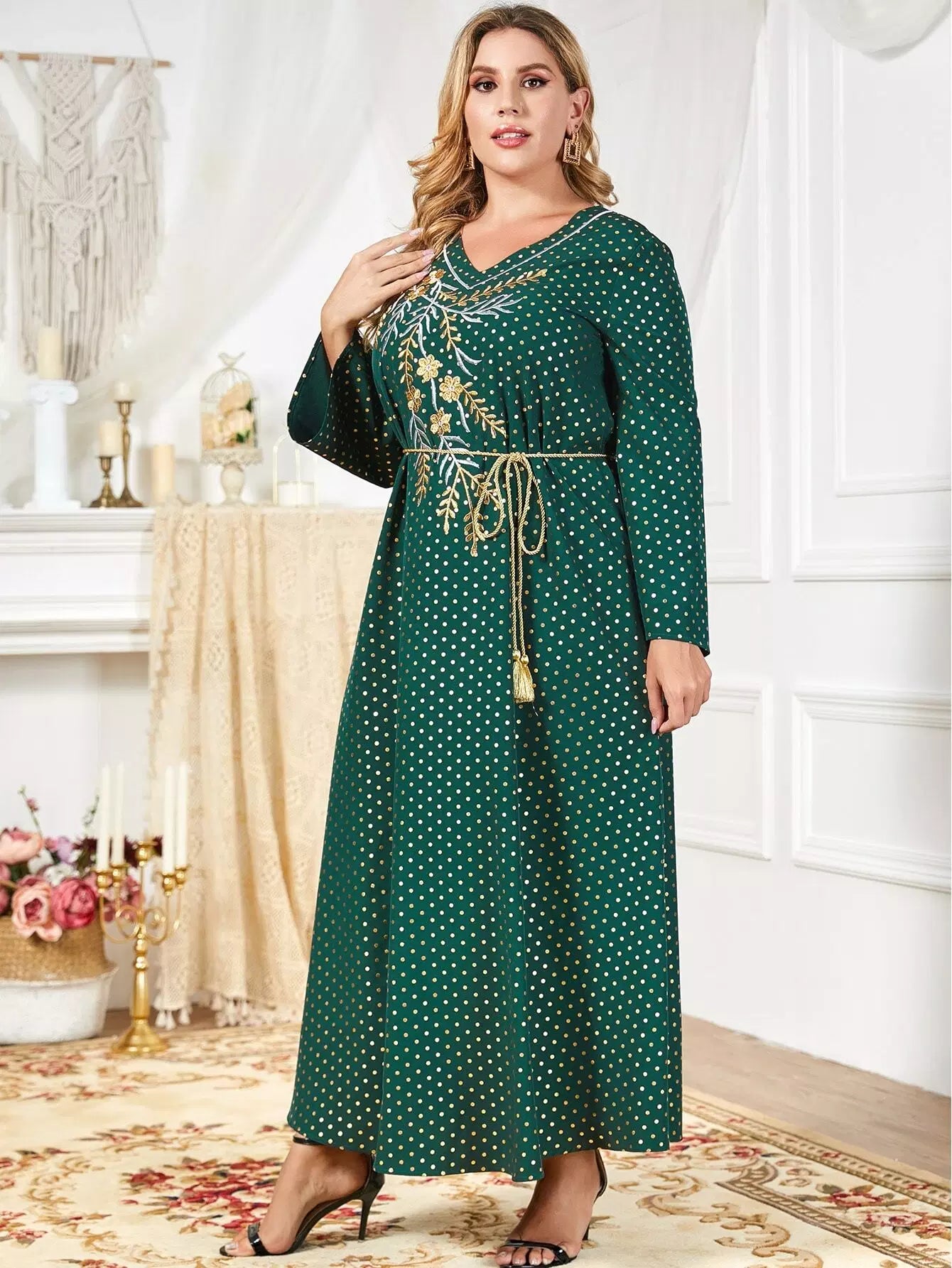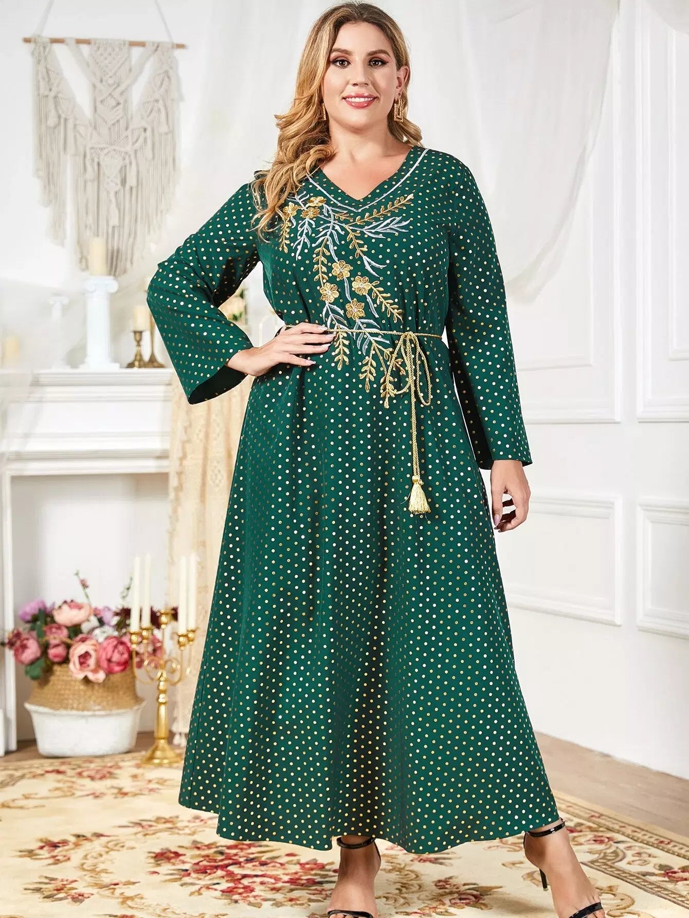 بالإضافة إلى فستان شرابة منقط ذهبي مطرز بالزهور بدون حزام