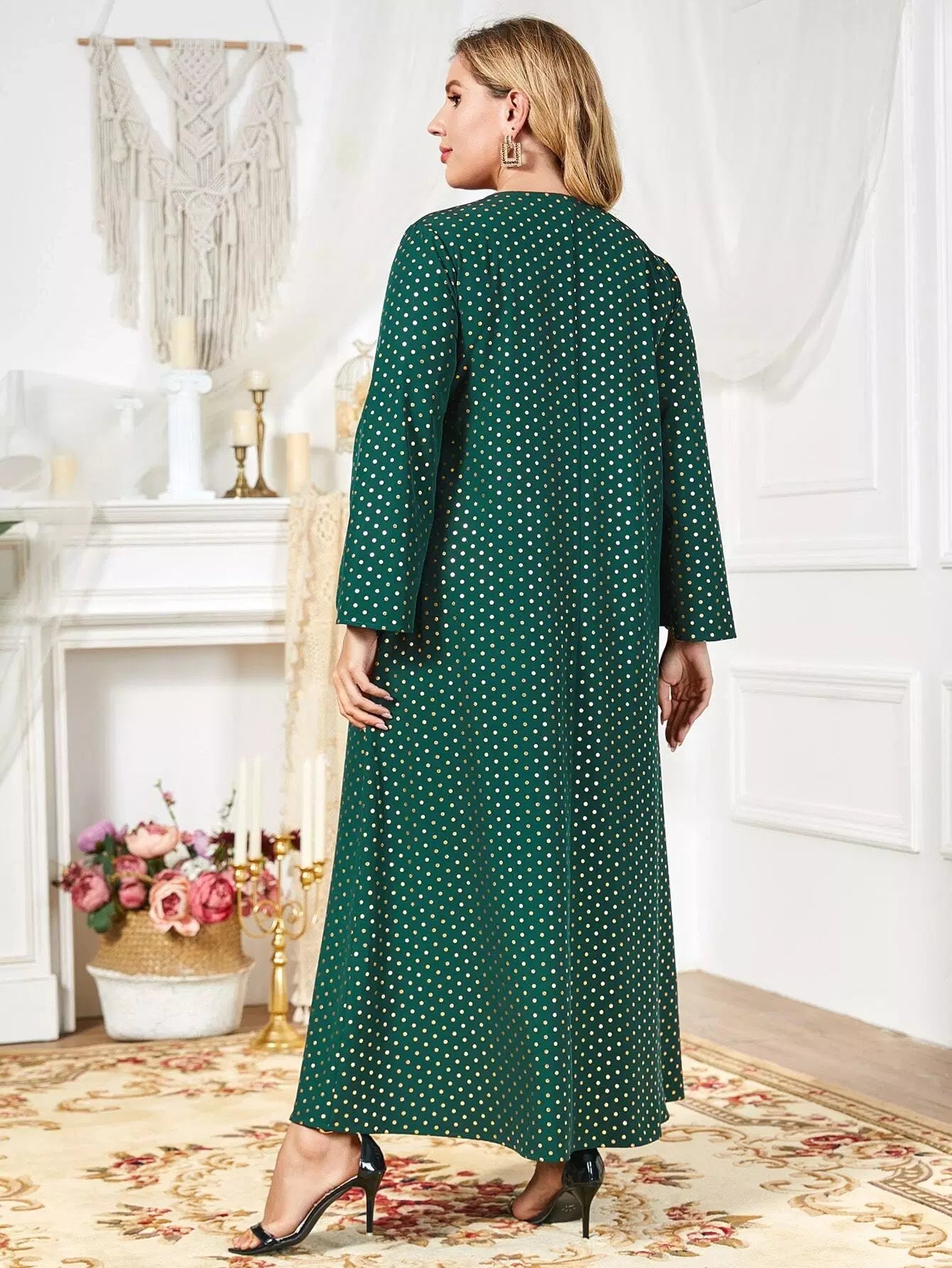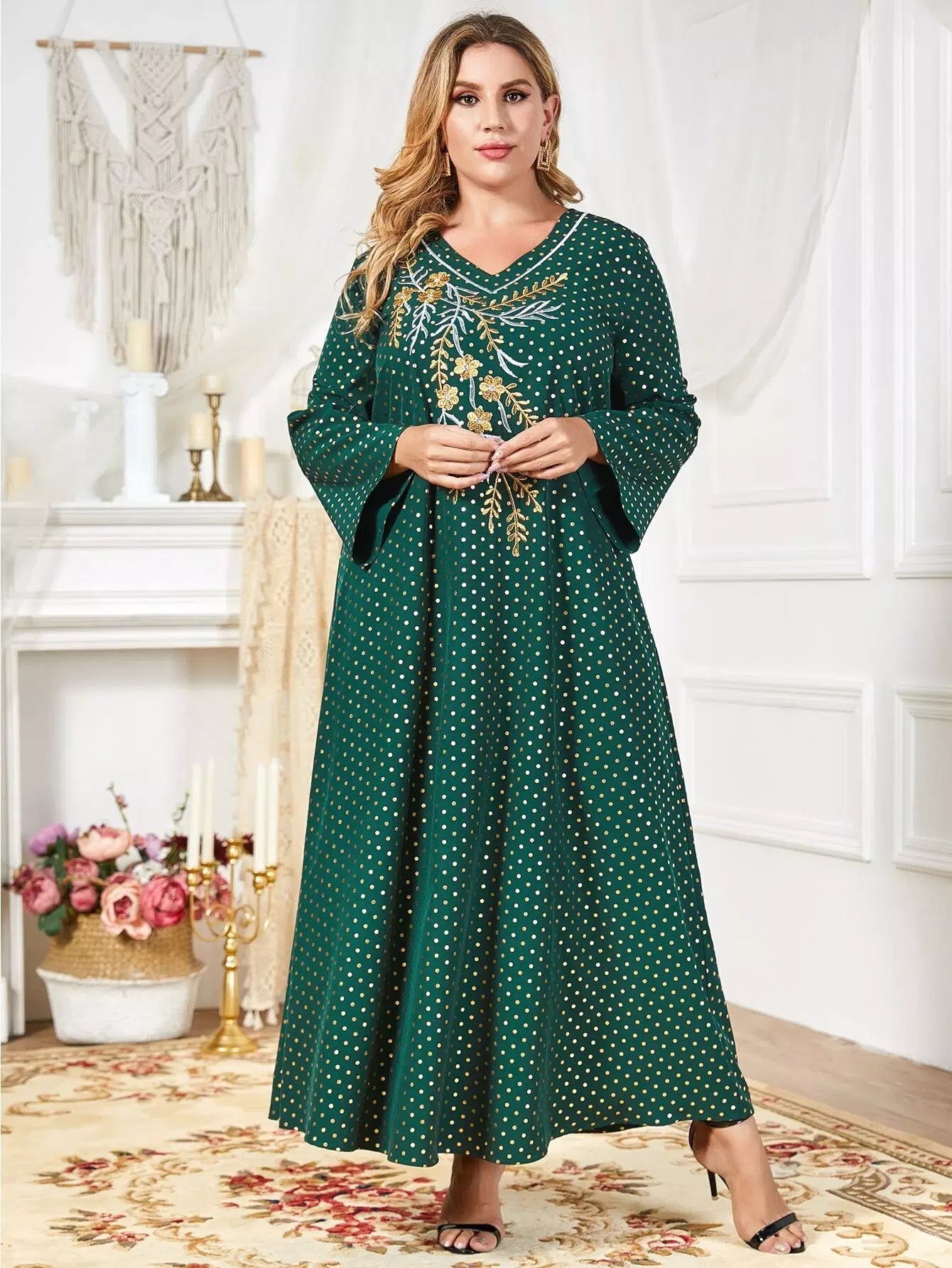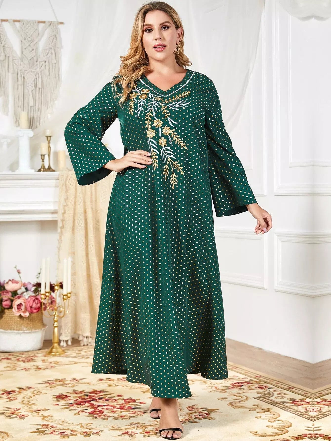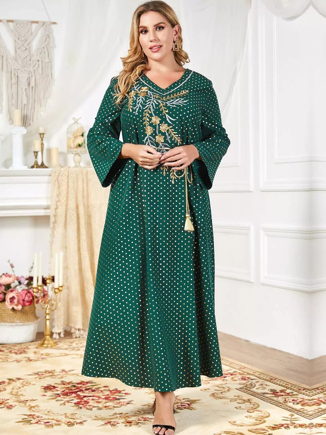 بالإضافة إلى فستان شرابة منقط ذهبي مطرز بالزهور بدون حزام