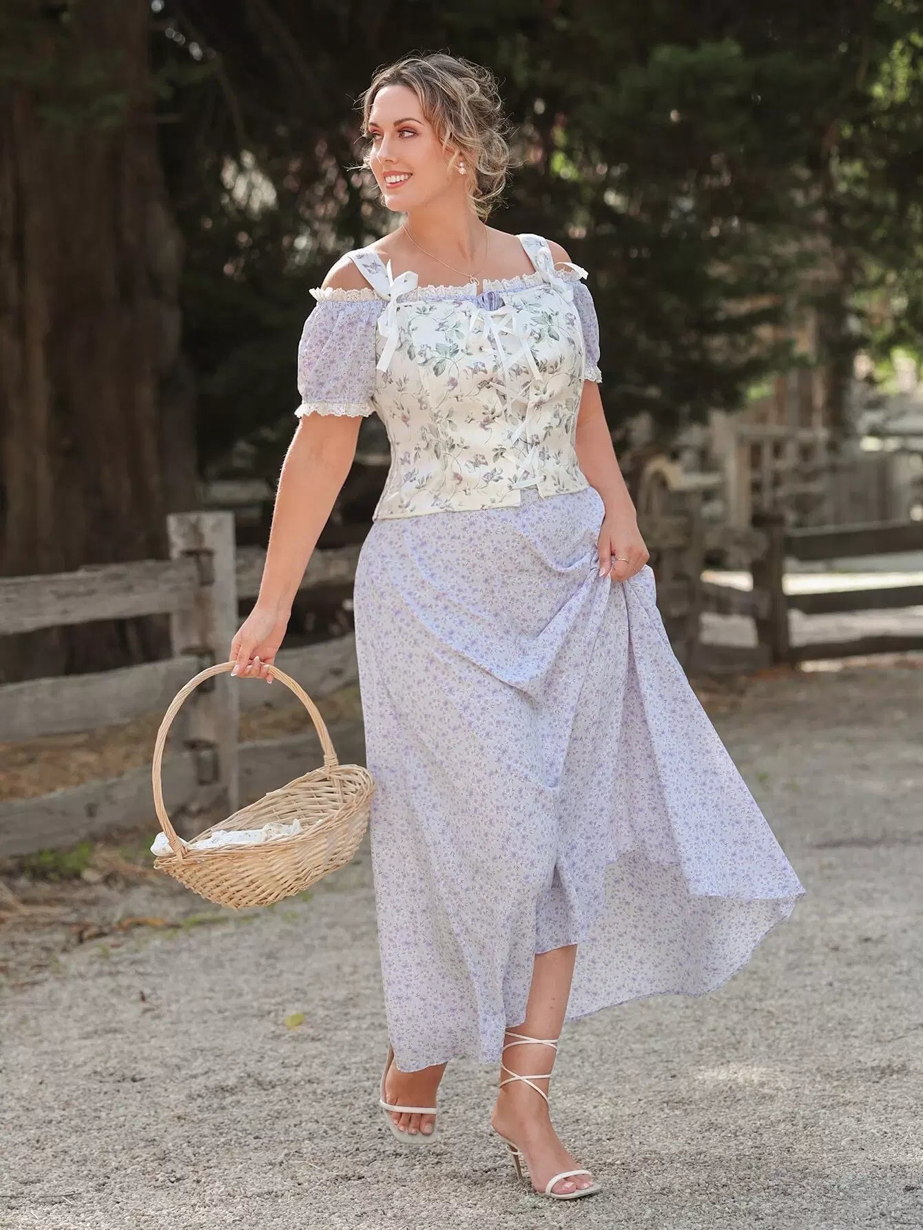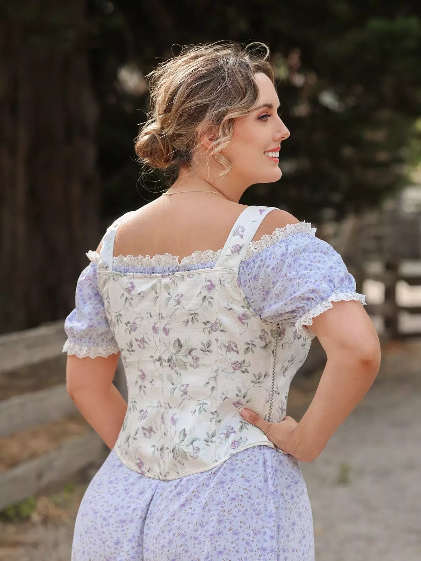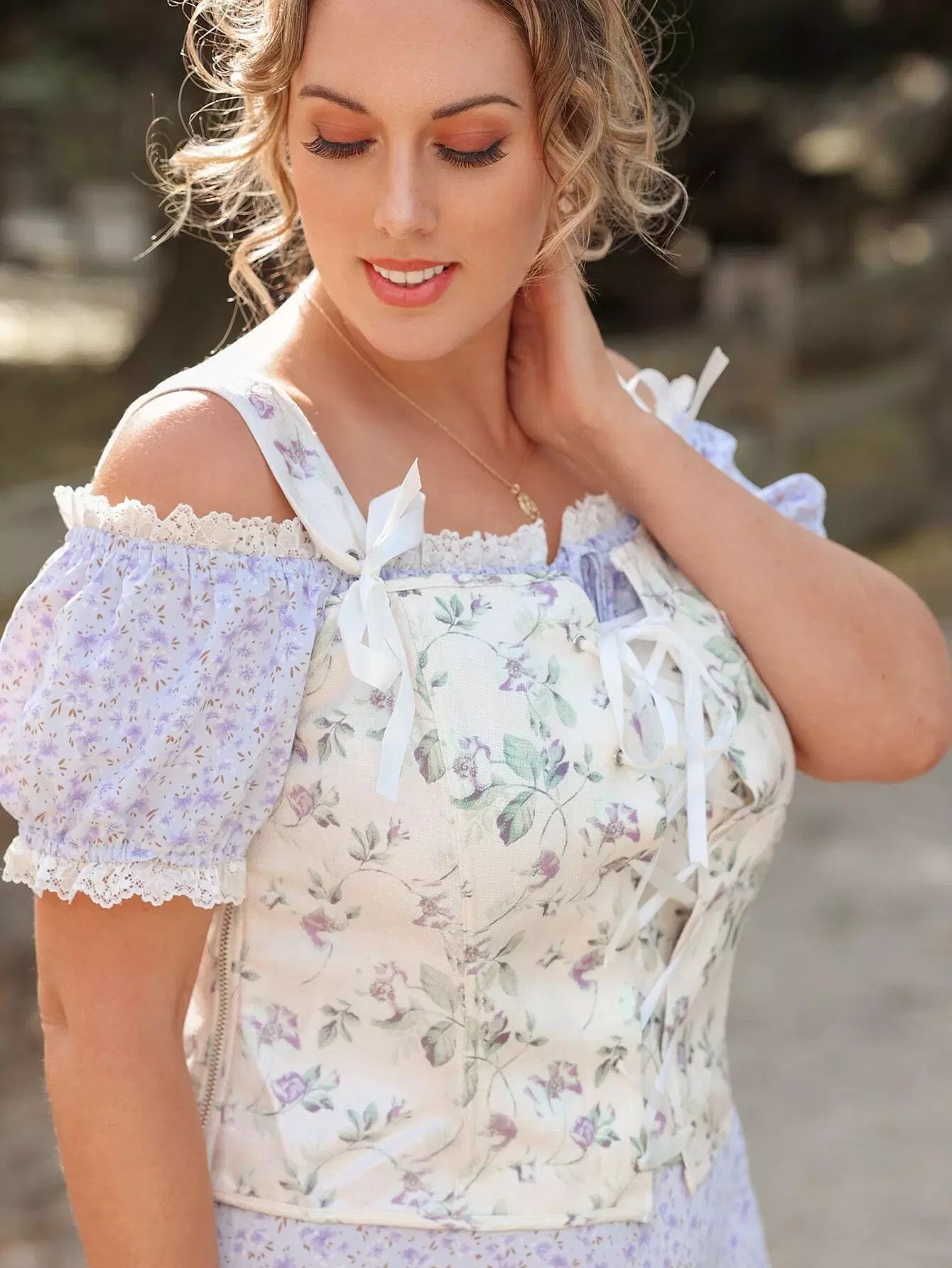 كورسيه من الأمام بطبعة زهور زائد من الدانتيل المطبوع عليه من الأمام