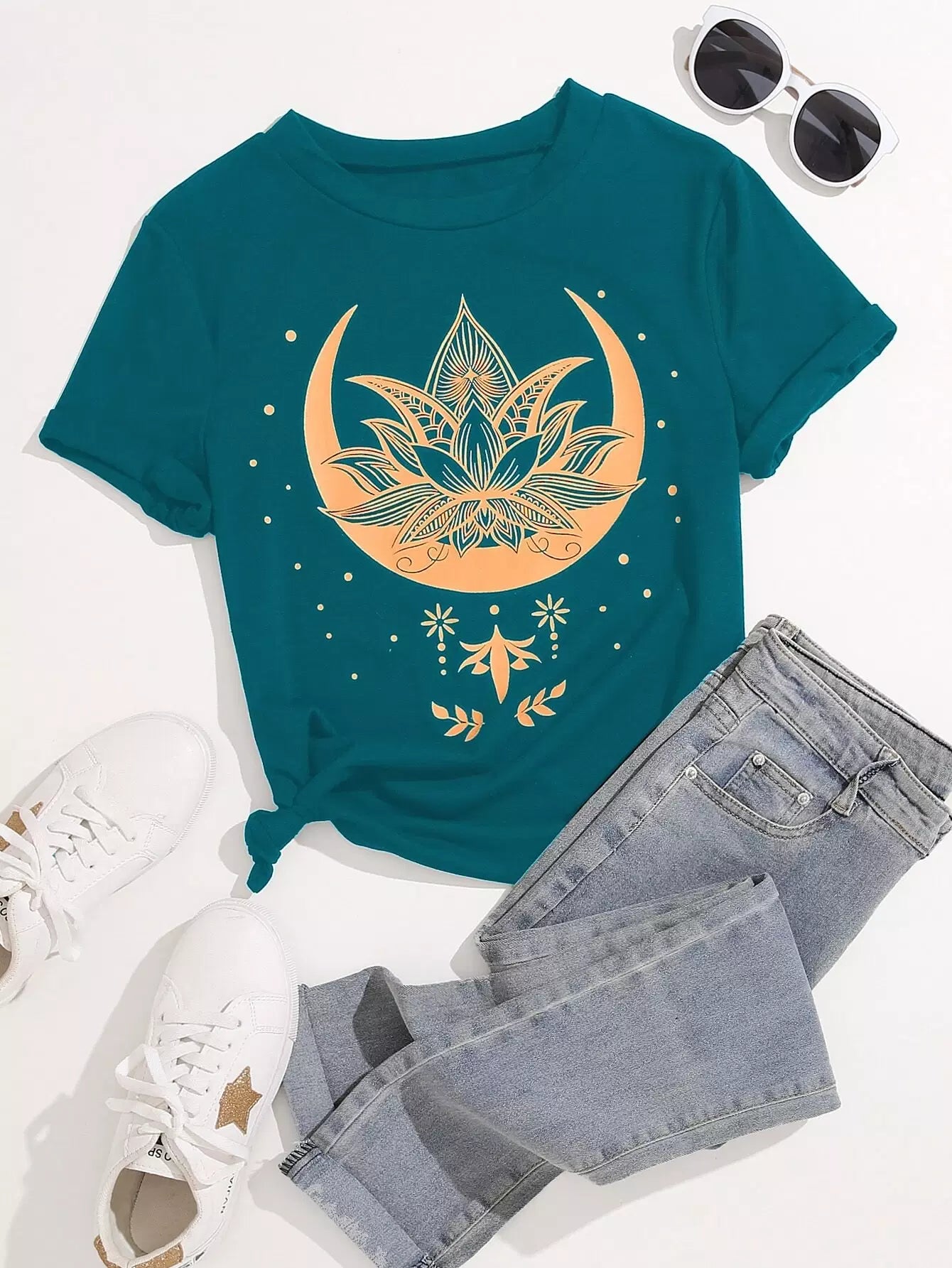 تي شيرت بطبعة زهور زائد