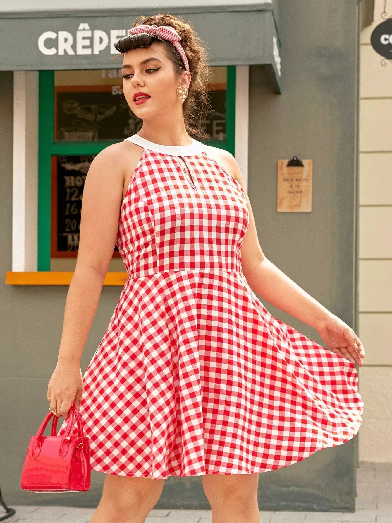 فستان بفتحة رقبة على شكل رقبة على شكل حرف A برقبة قطنية