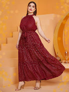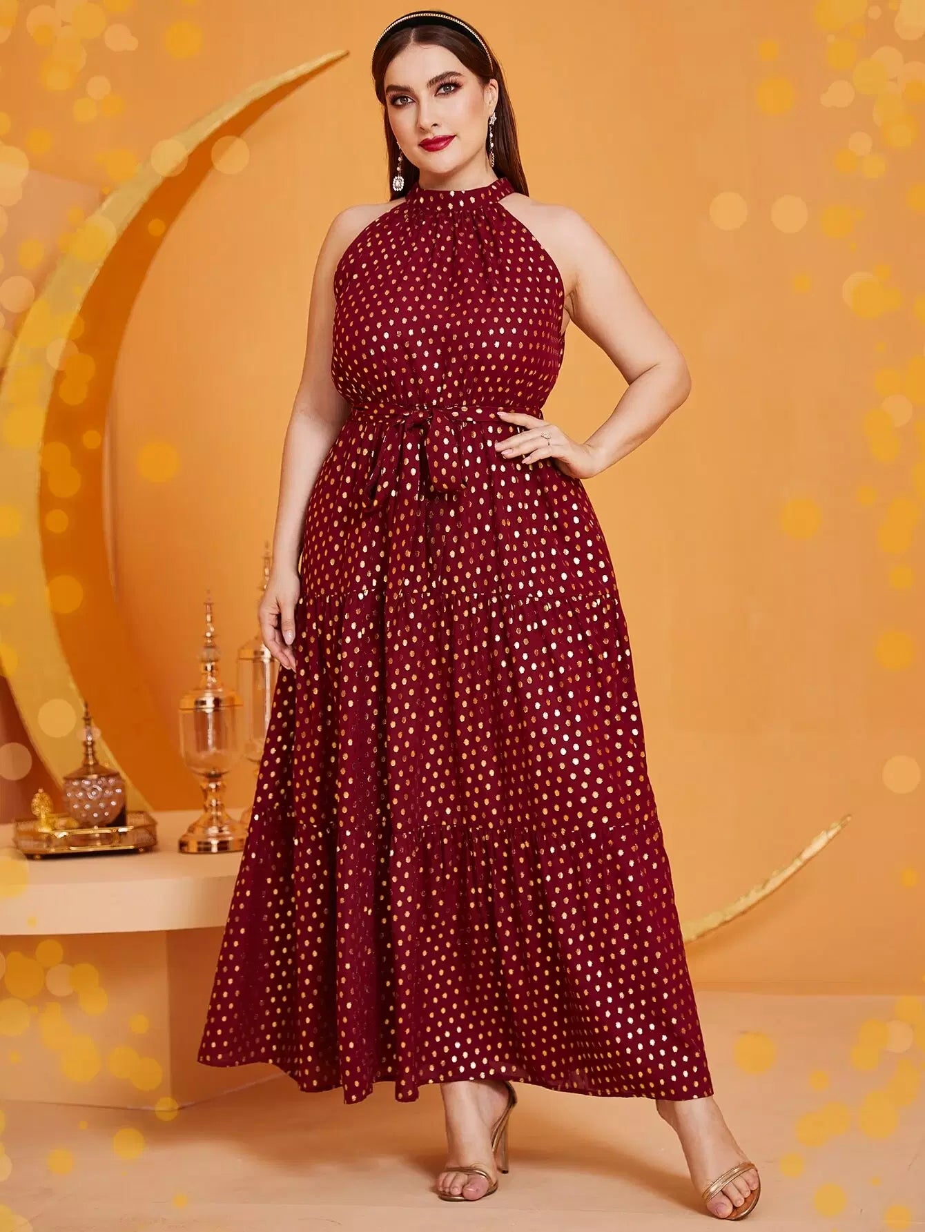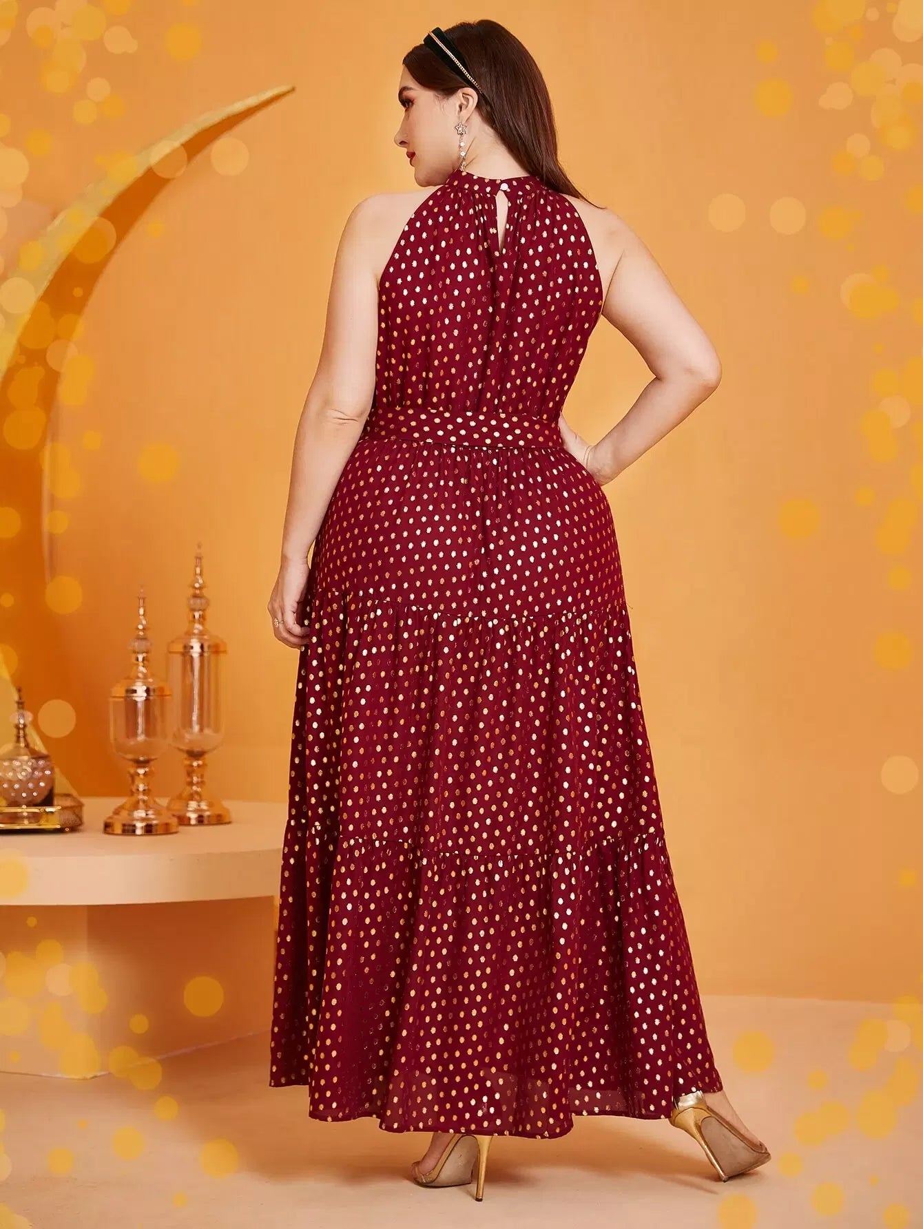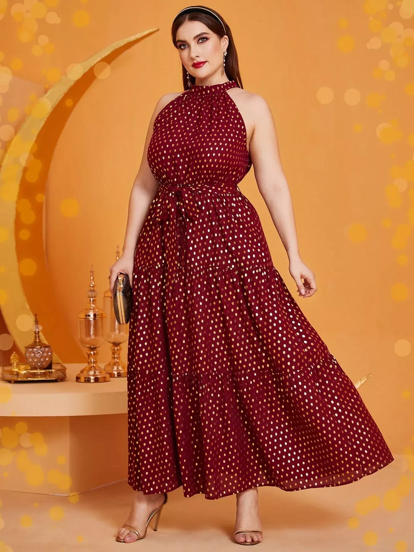 بالإضافة إلى فستان ذو حافة كشكش بطبعة نقاط ذهبية بدون حزام