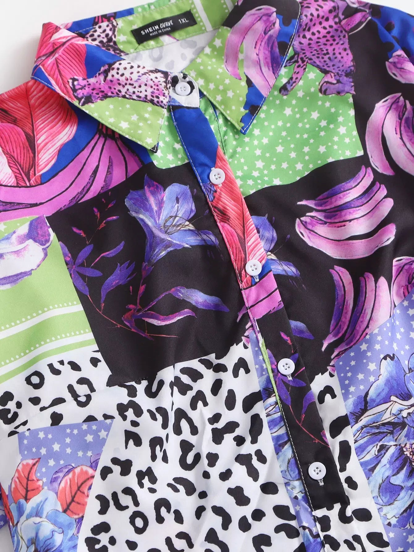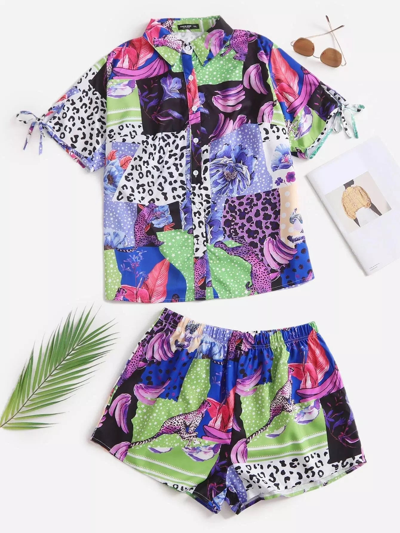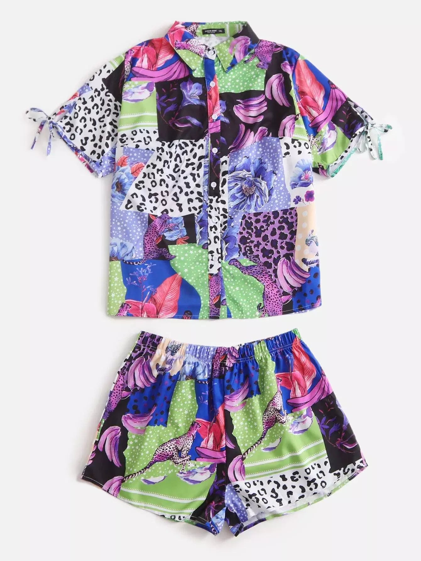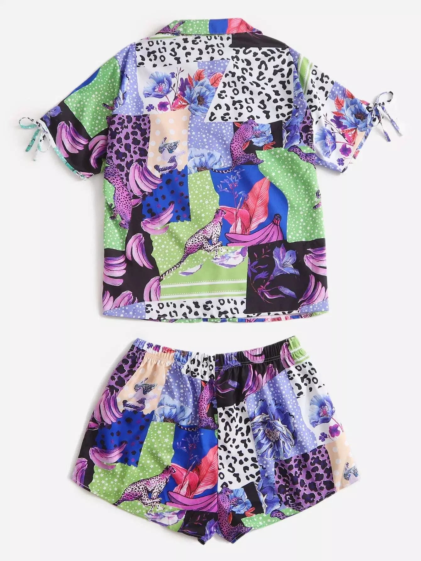 بلوزة وسروال قصير مرقع معقود الأكمام مرقع بلاس