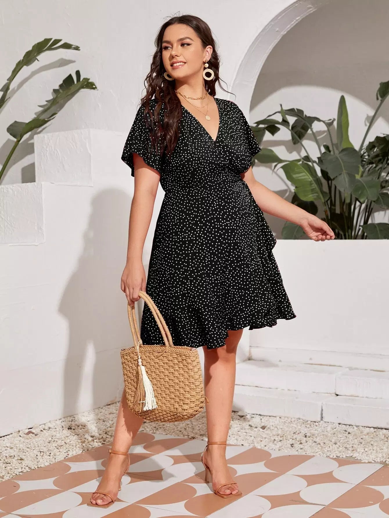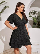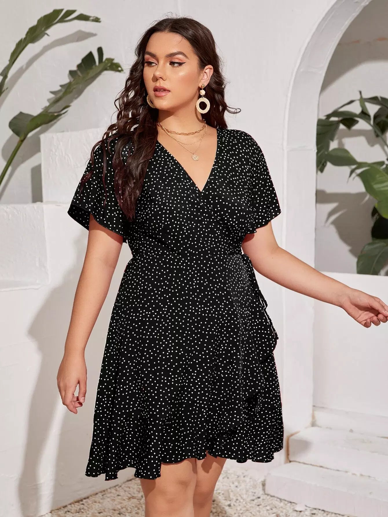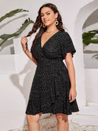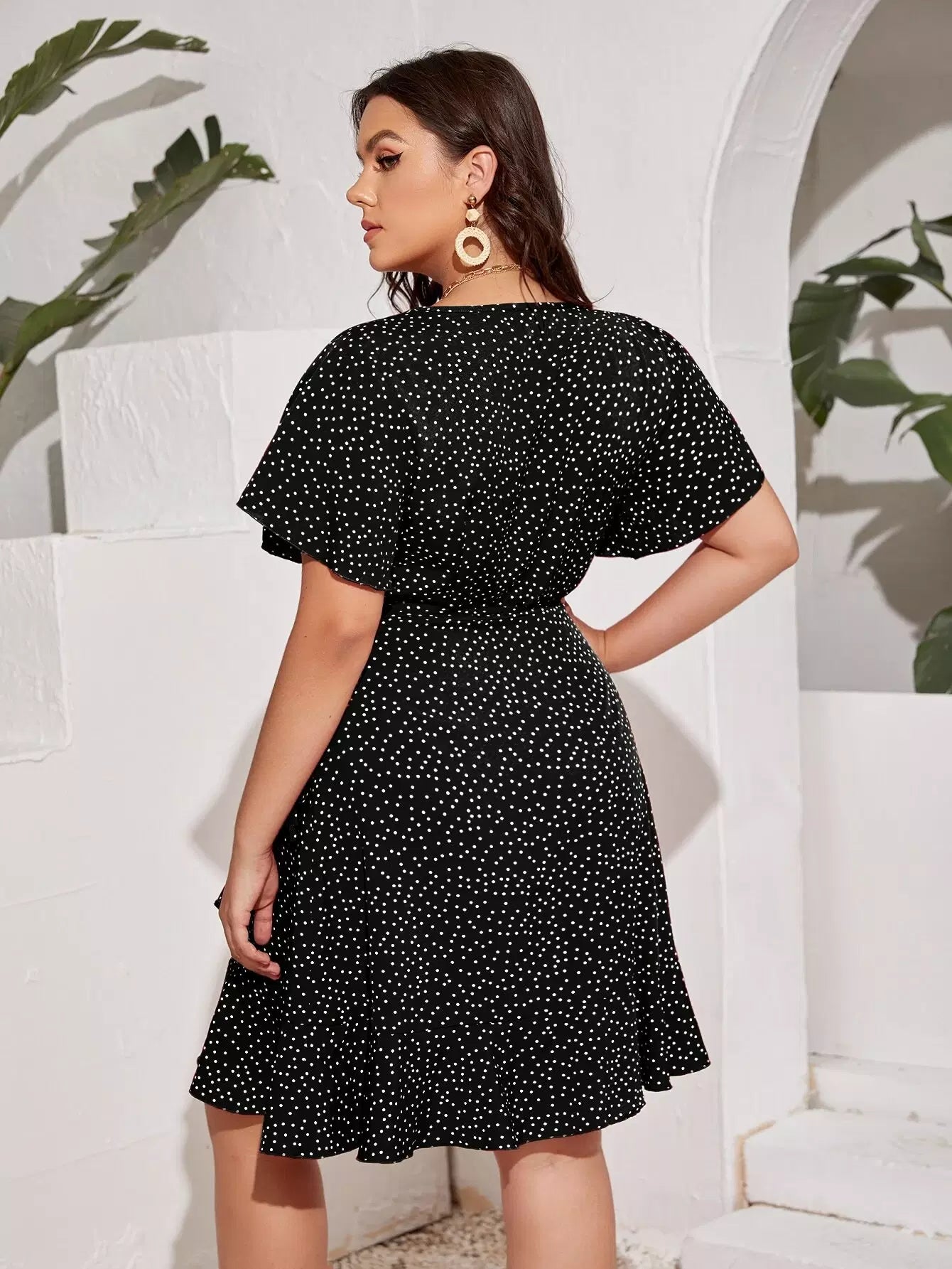 فستان بأكمام منقطة على شكل فراشة بأكمام منقطة على شكل عقدة جانبية
