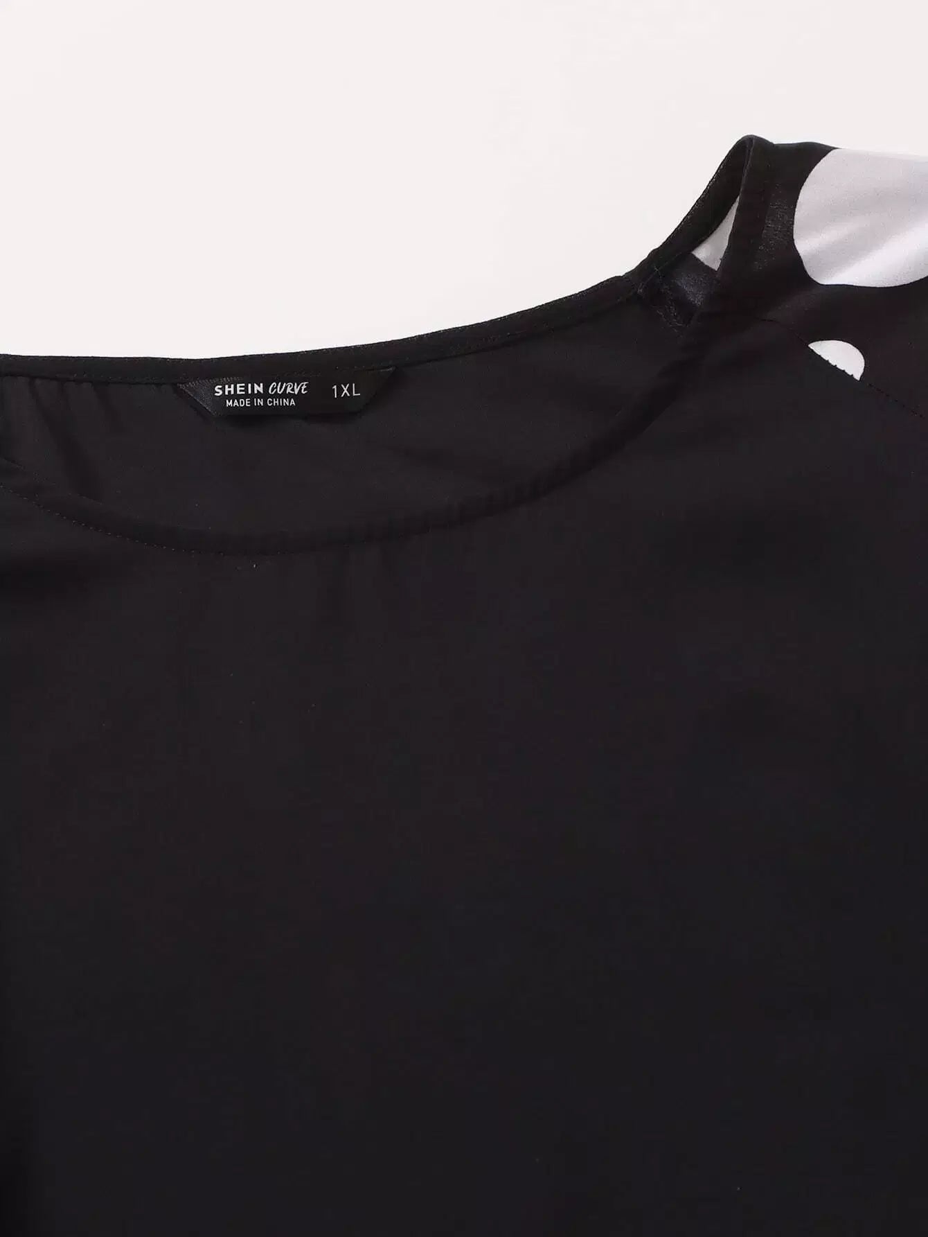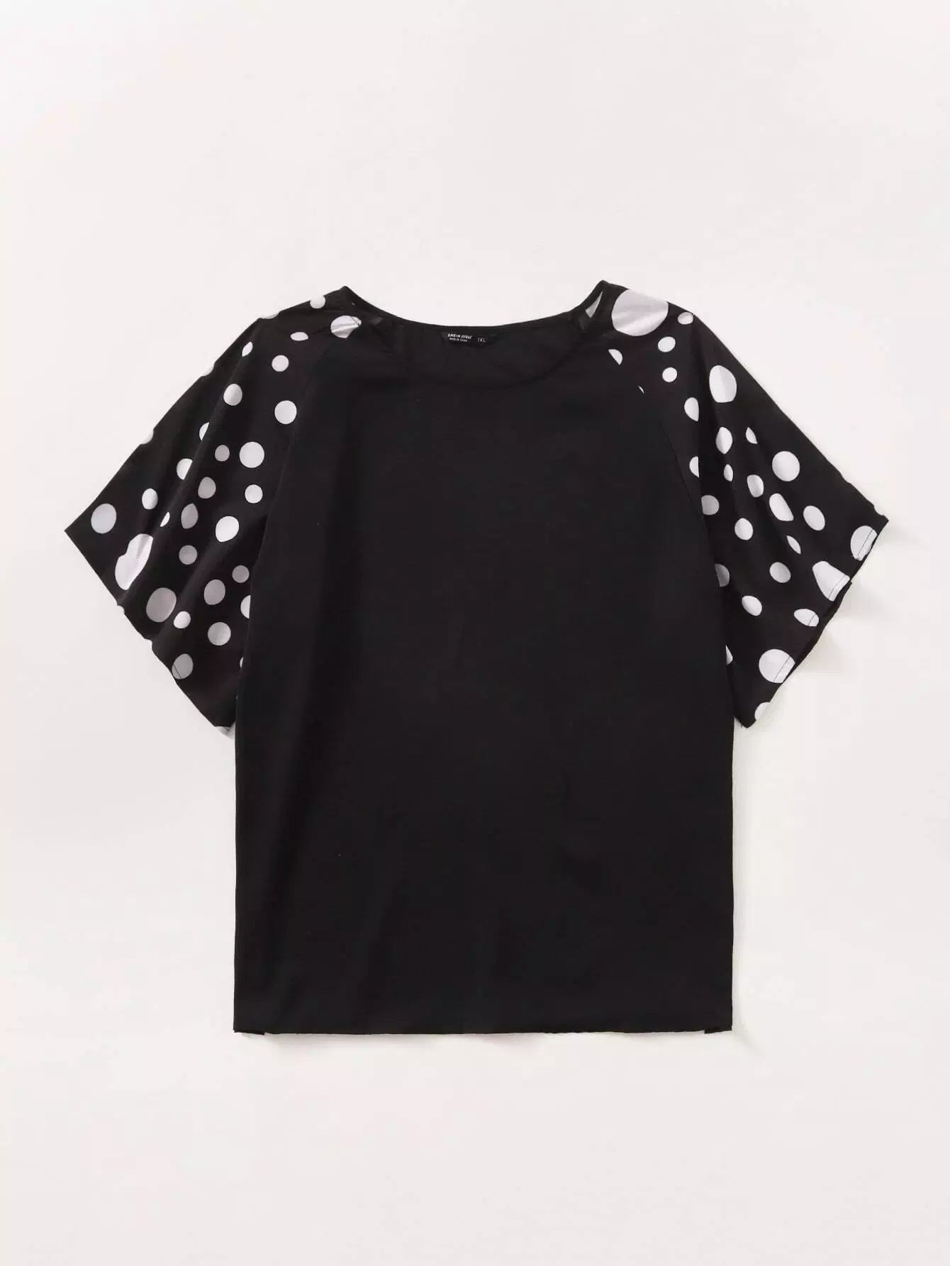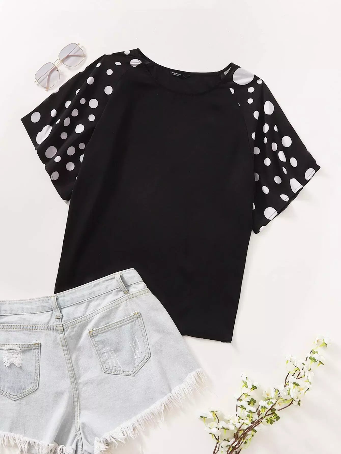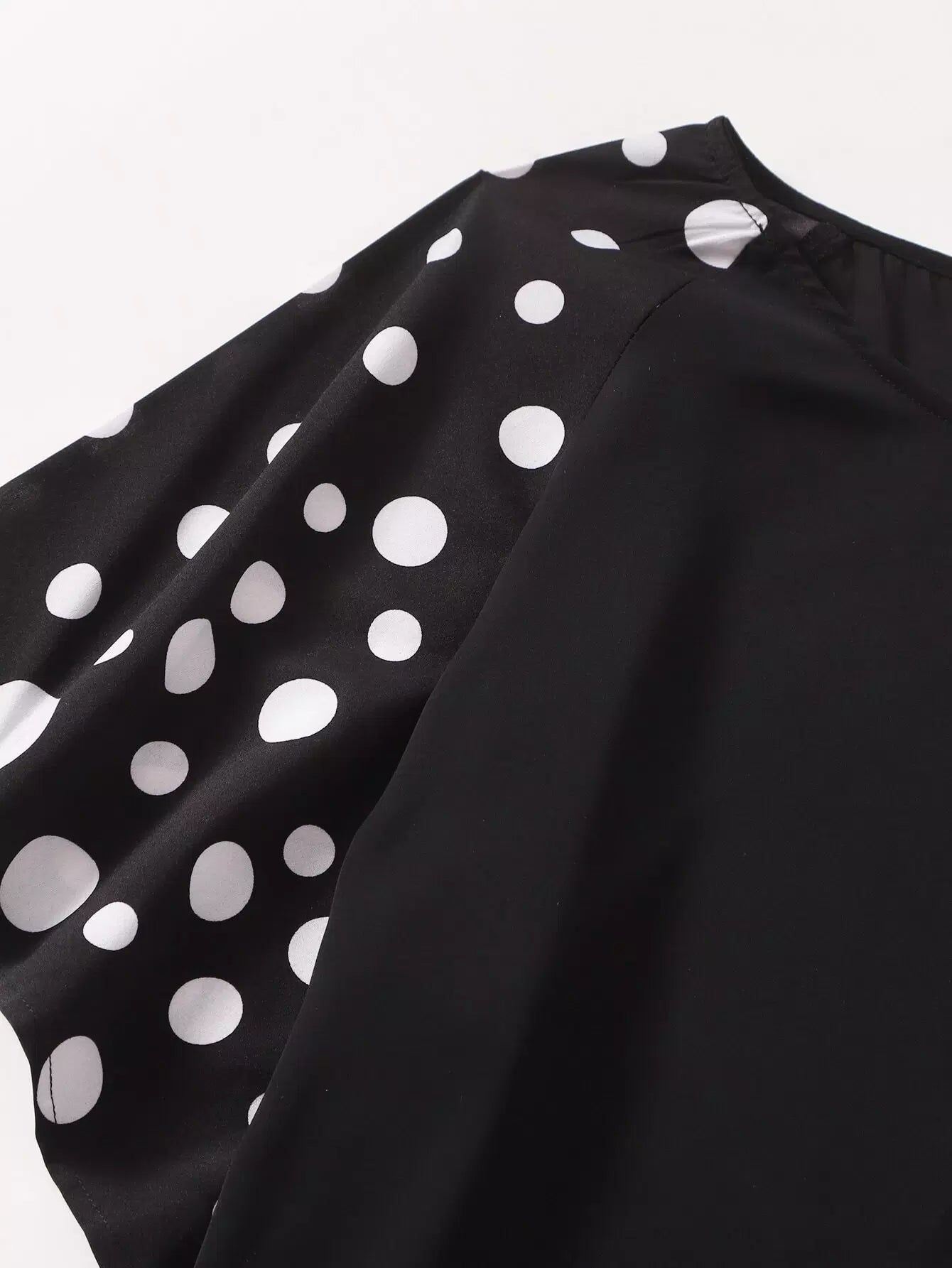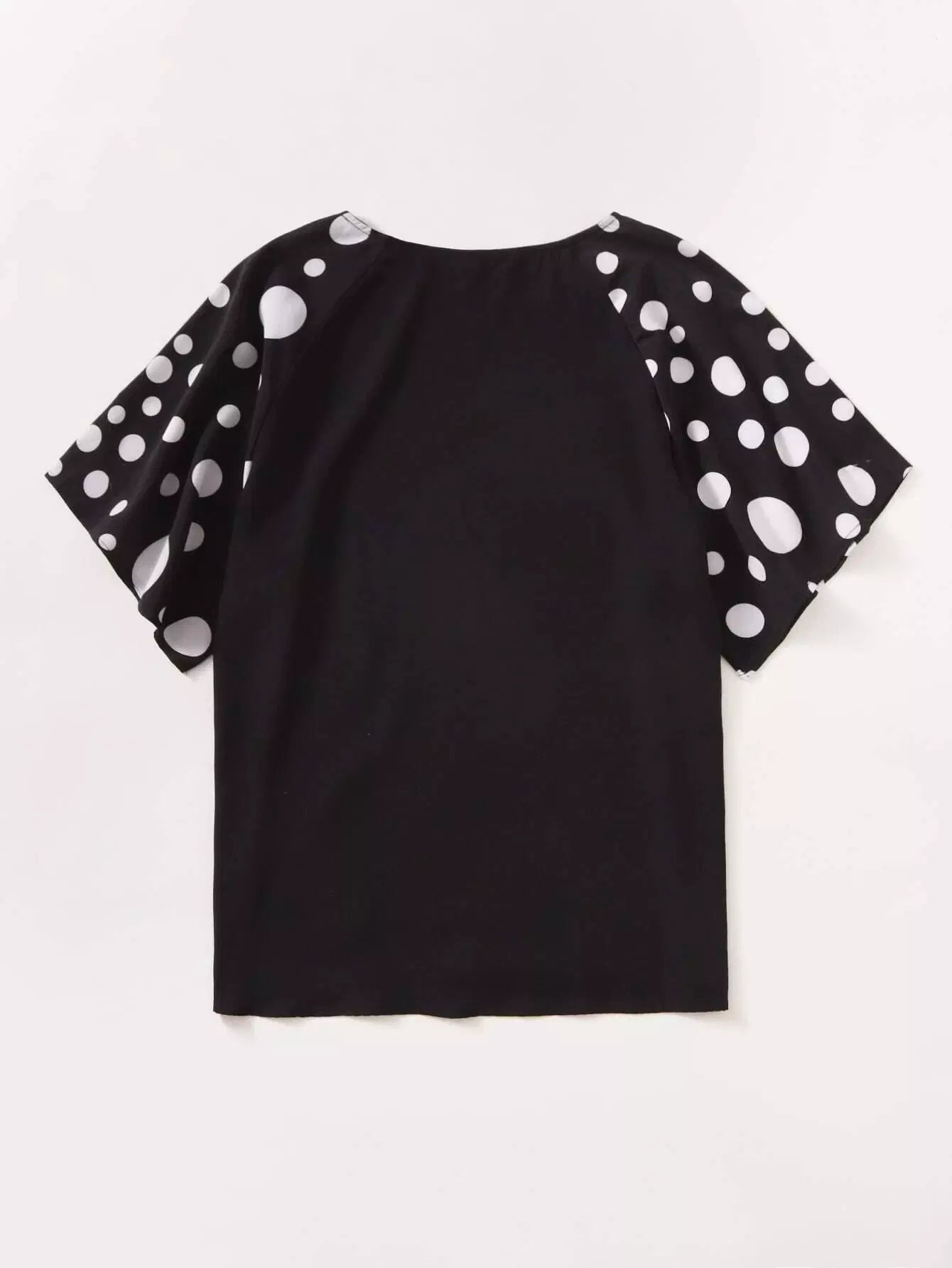 بلوزة بأكمام منقطة منقوشة بأكمام راجلان بلس