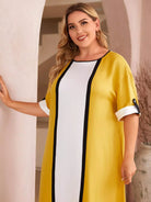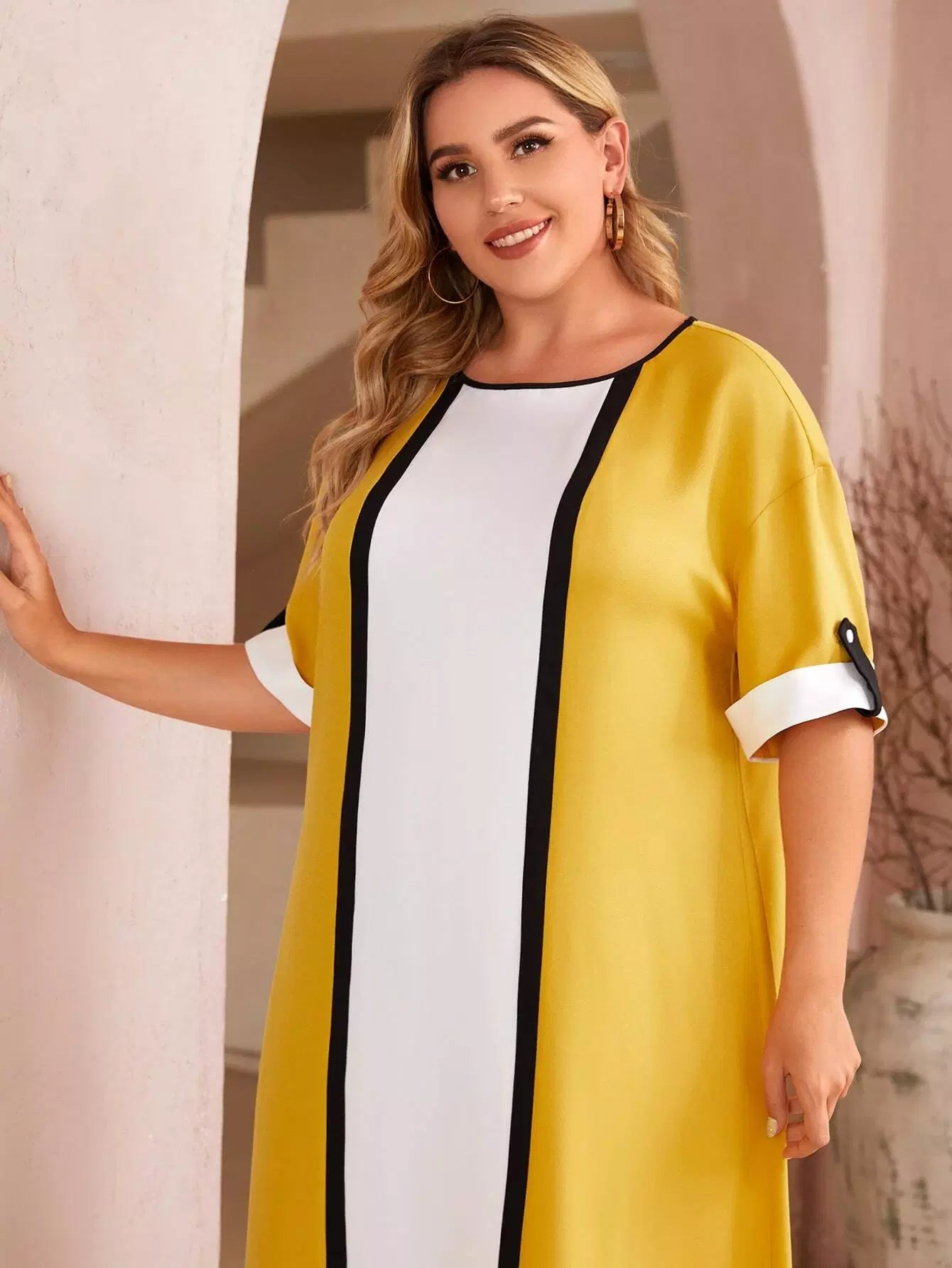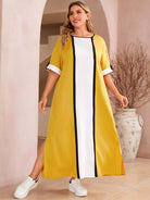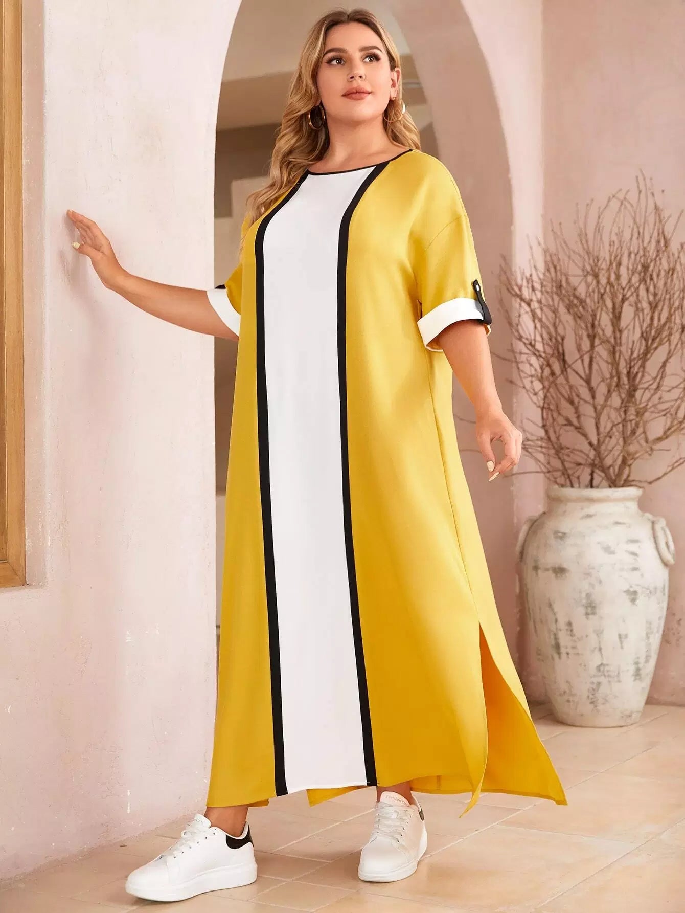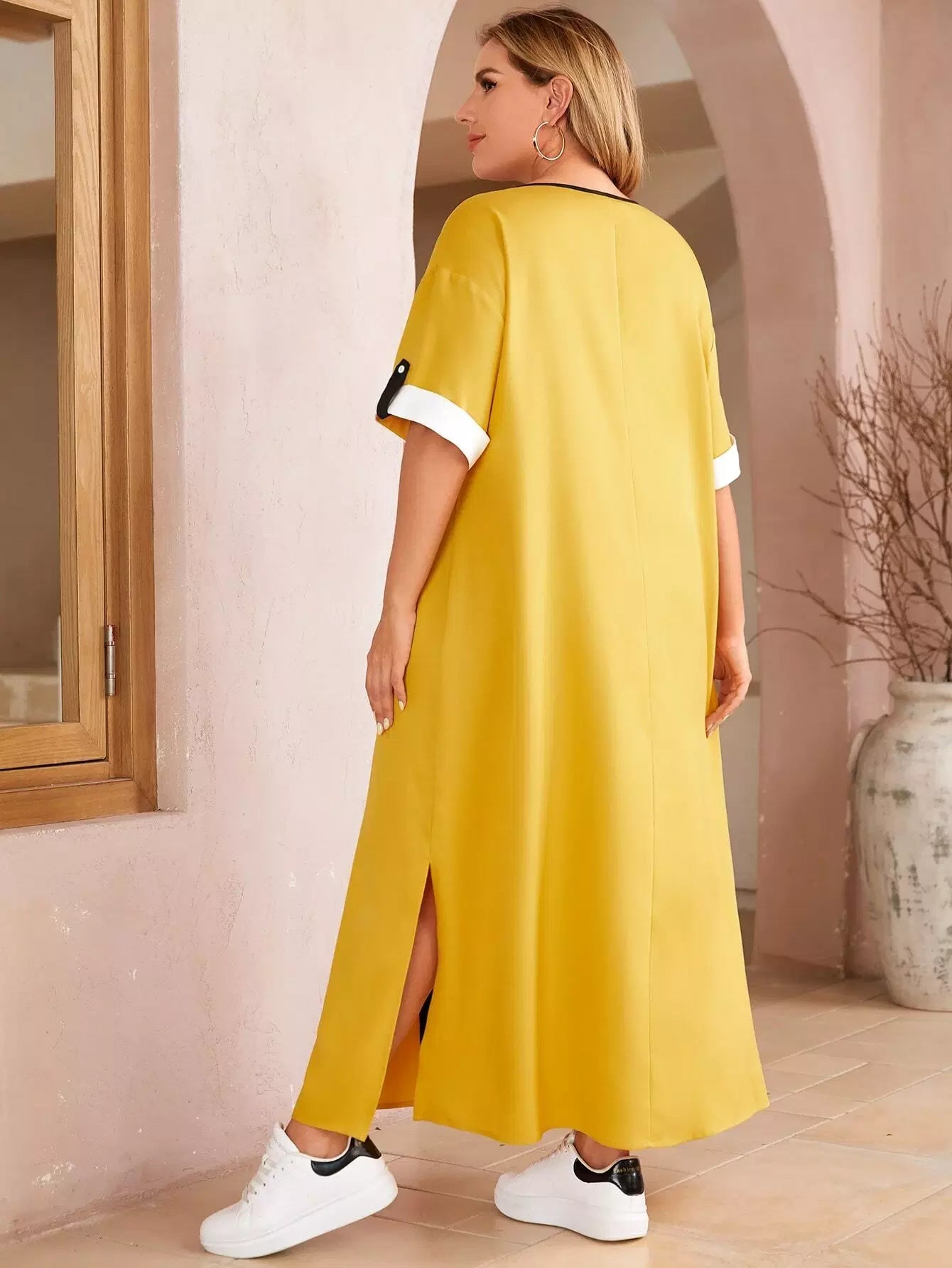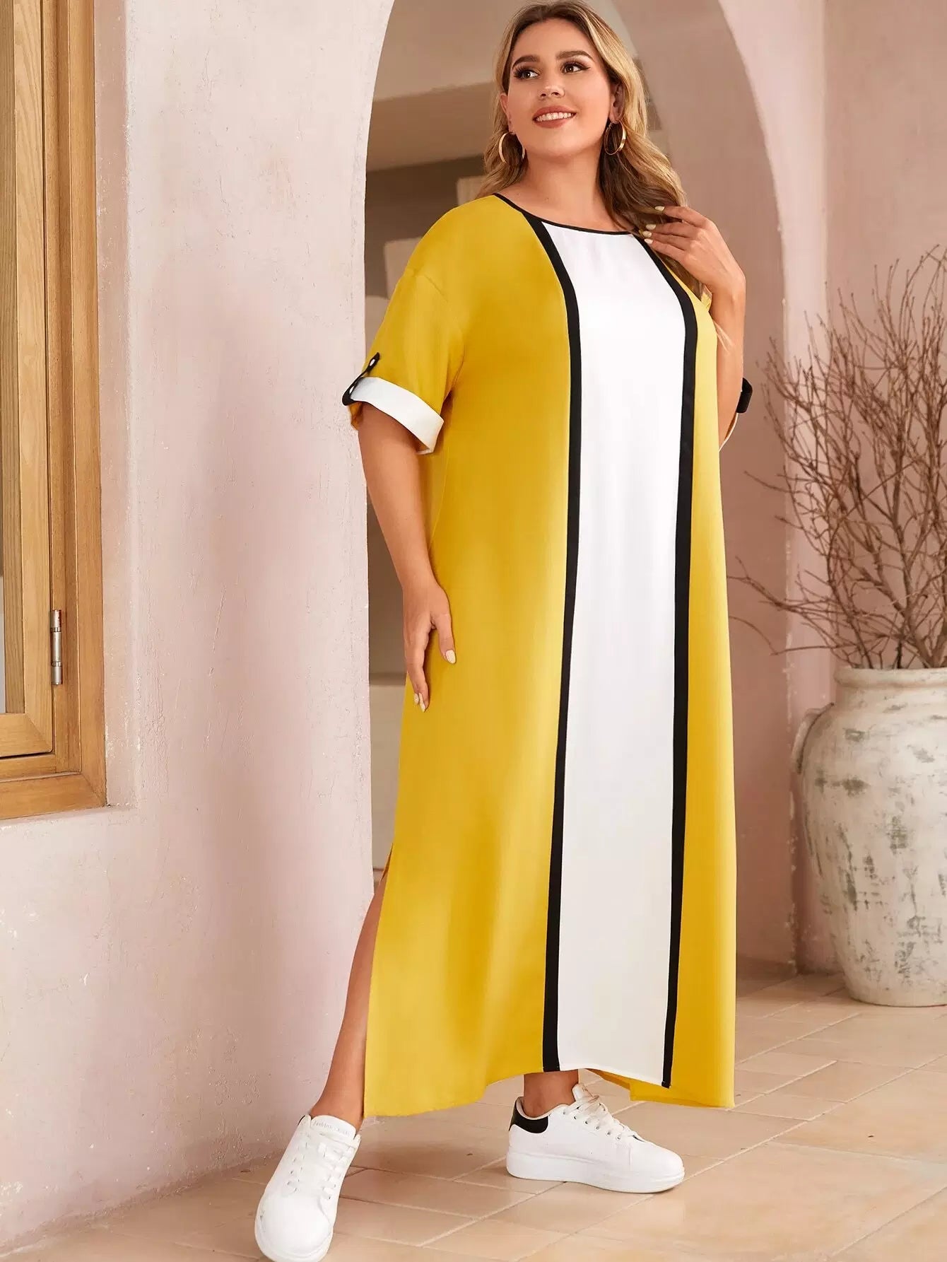 فستان بأكمام رول بلاس بفتحة منقسمة الحواف ملون