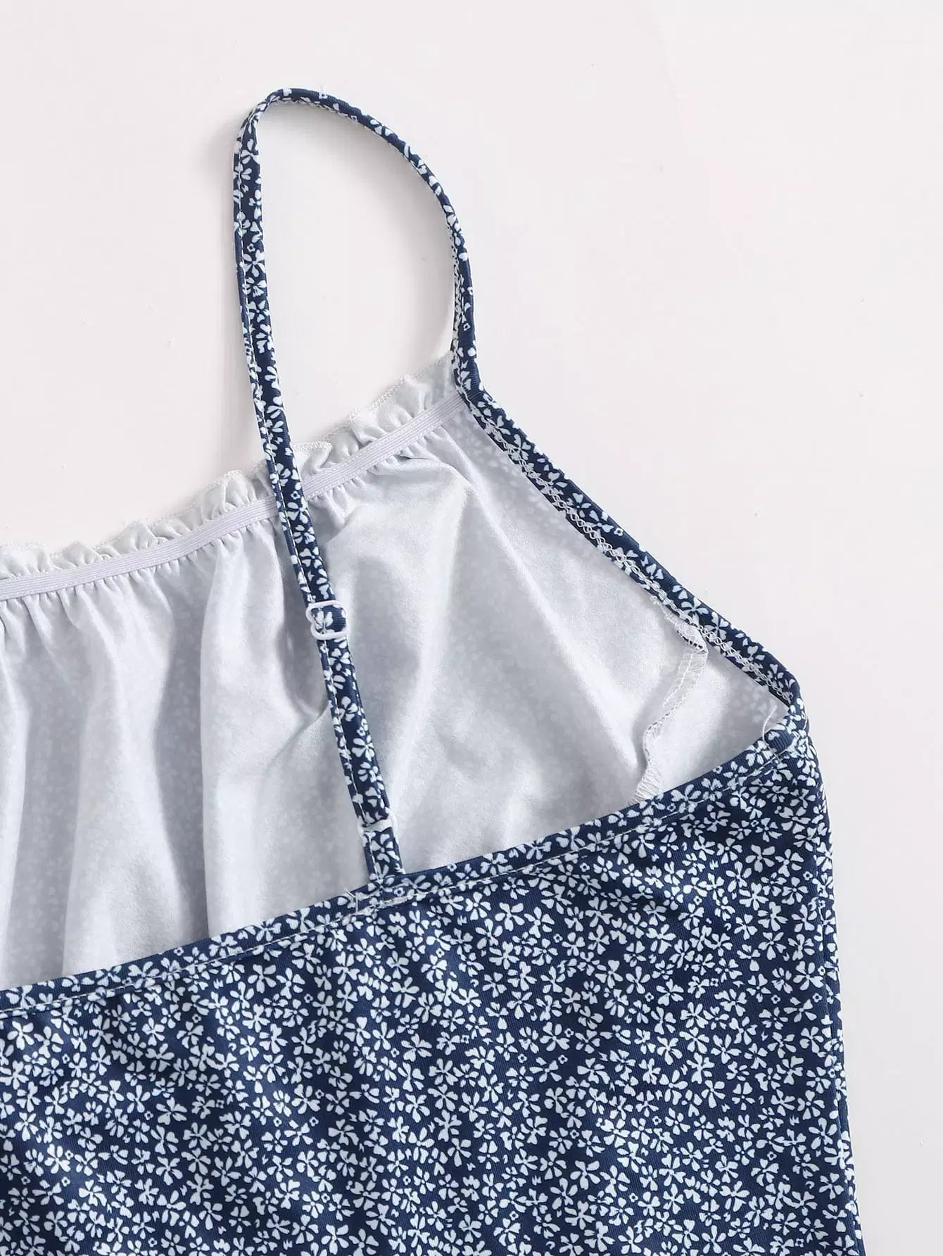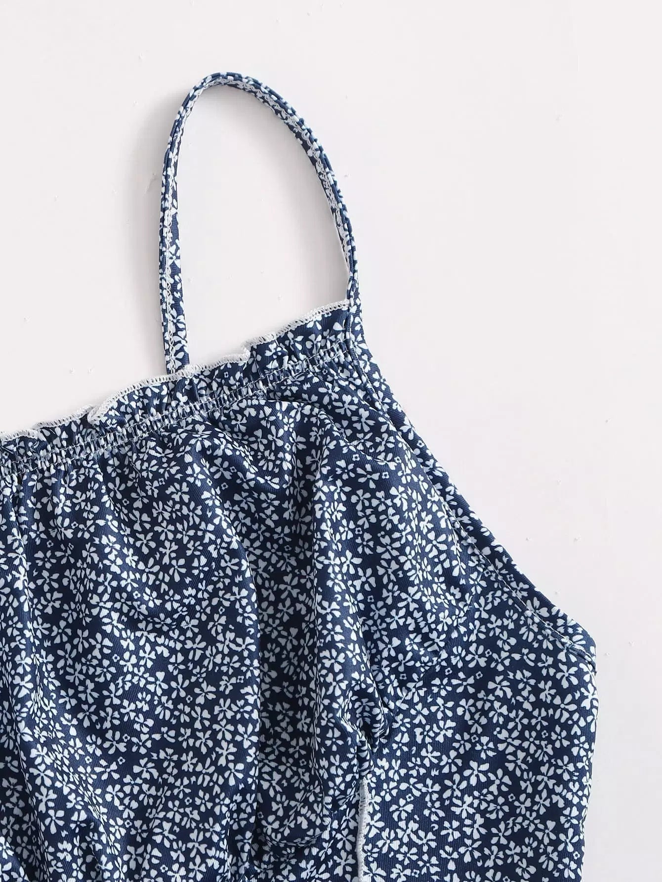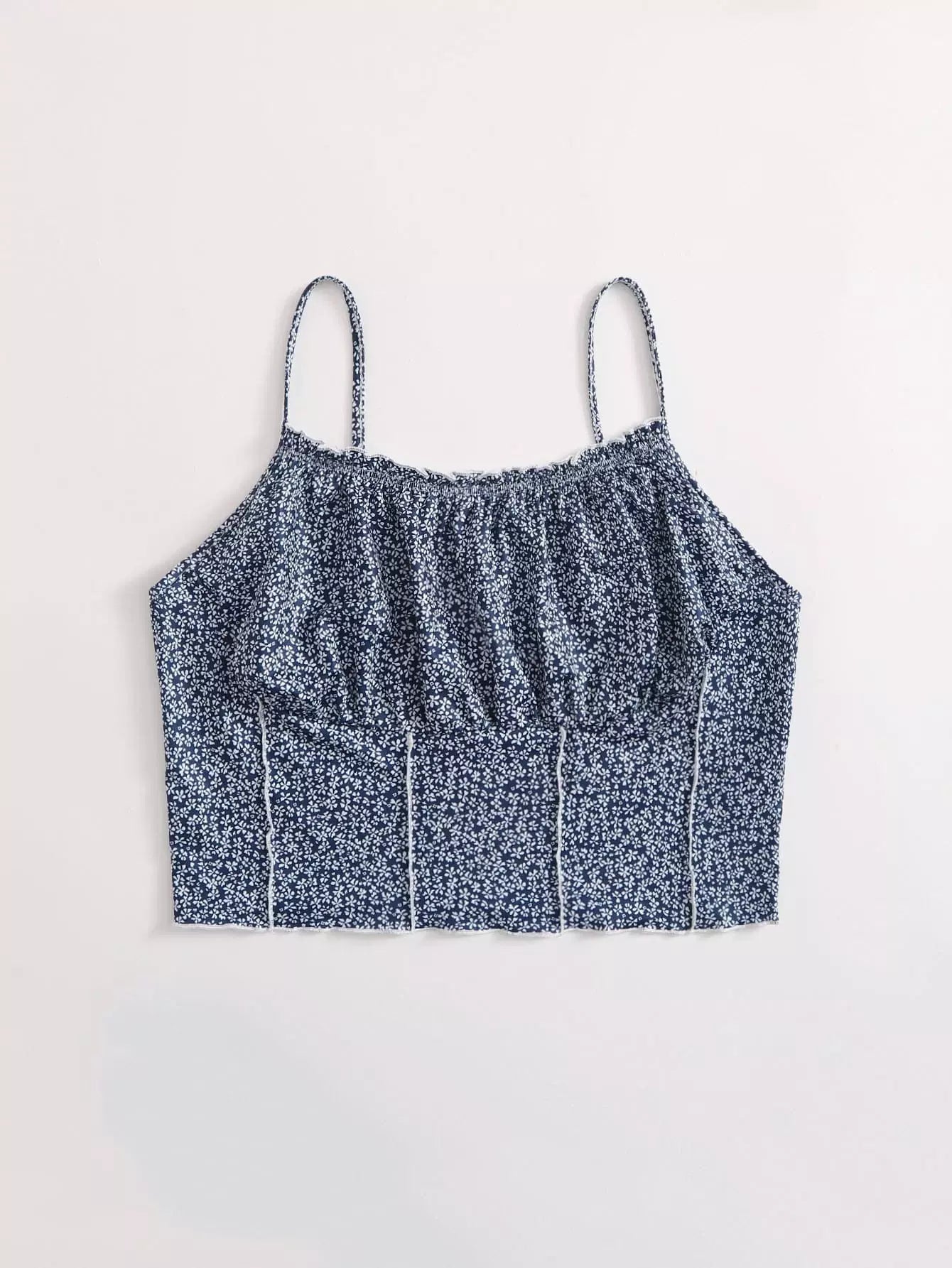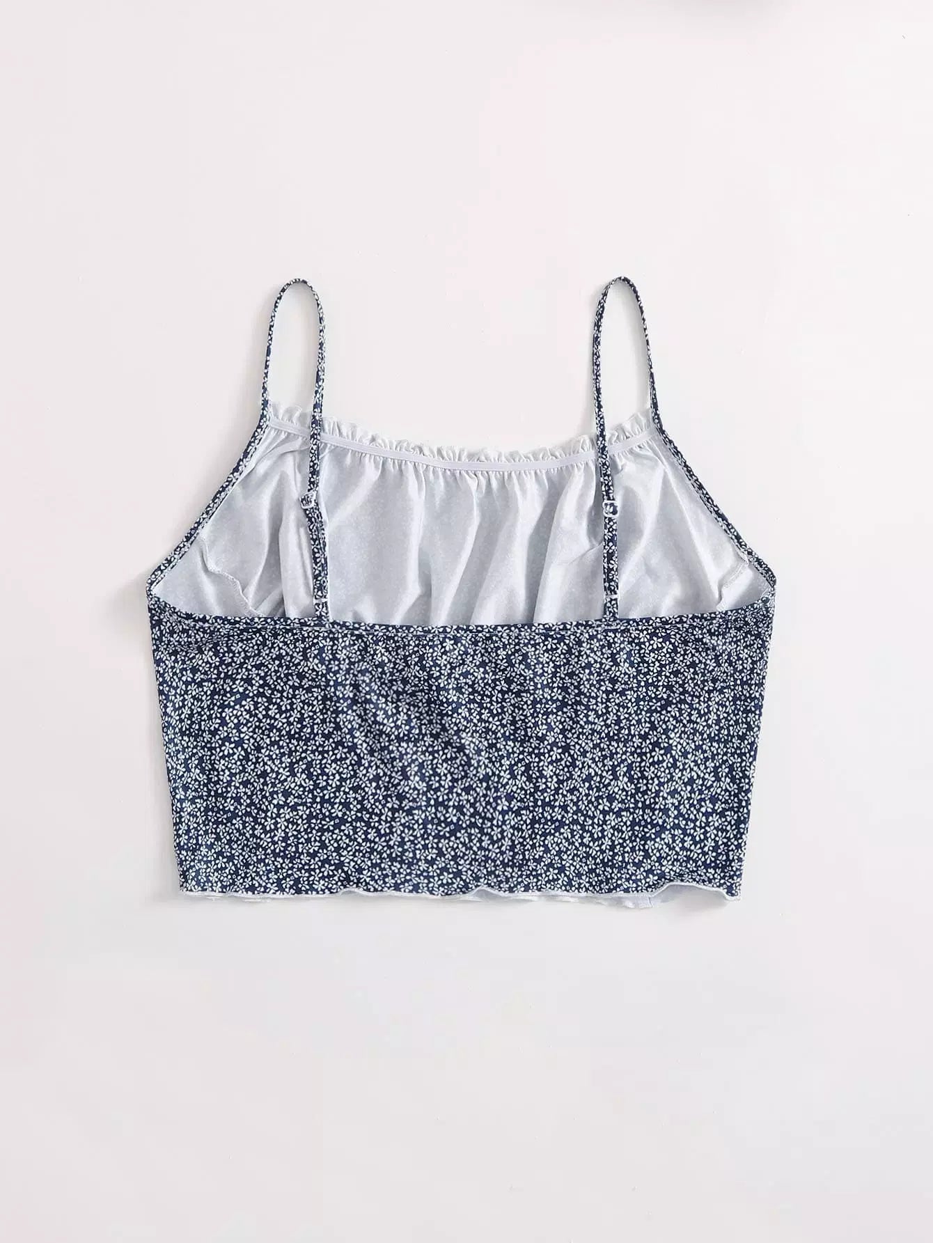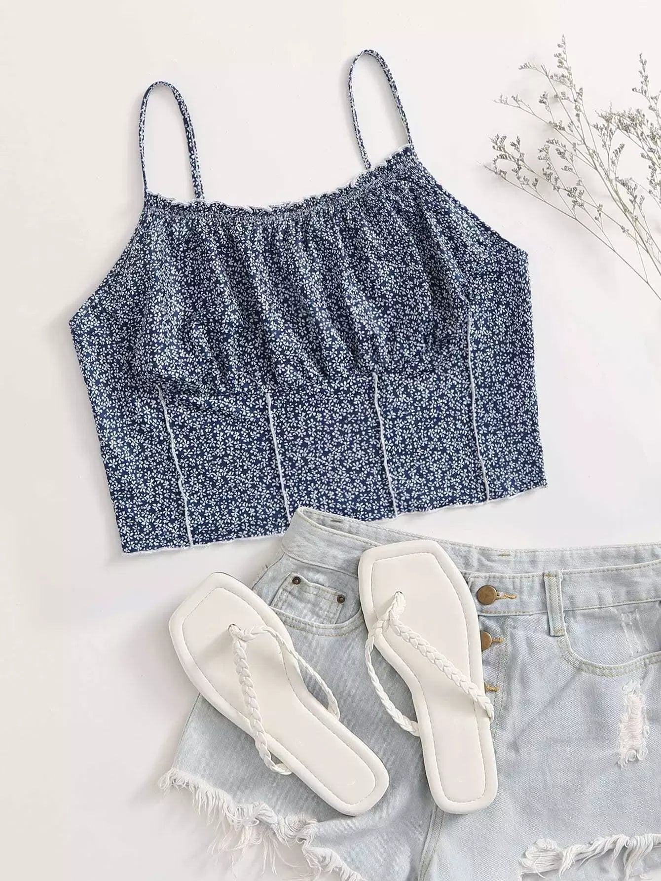 توب قصير مكشكش الصدر مكشكش مزين بالورود