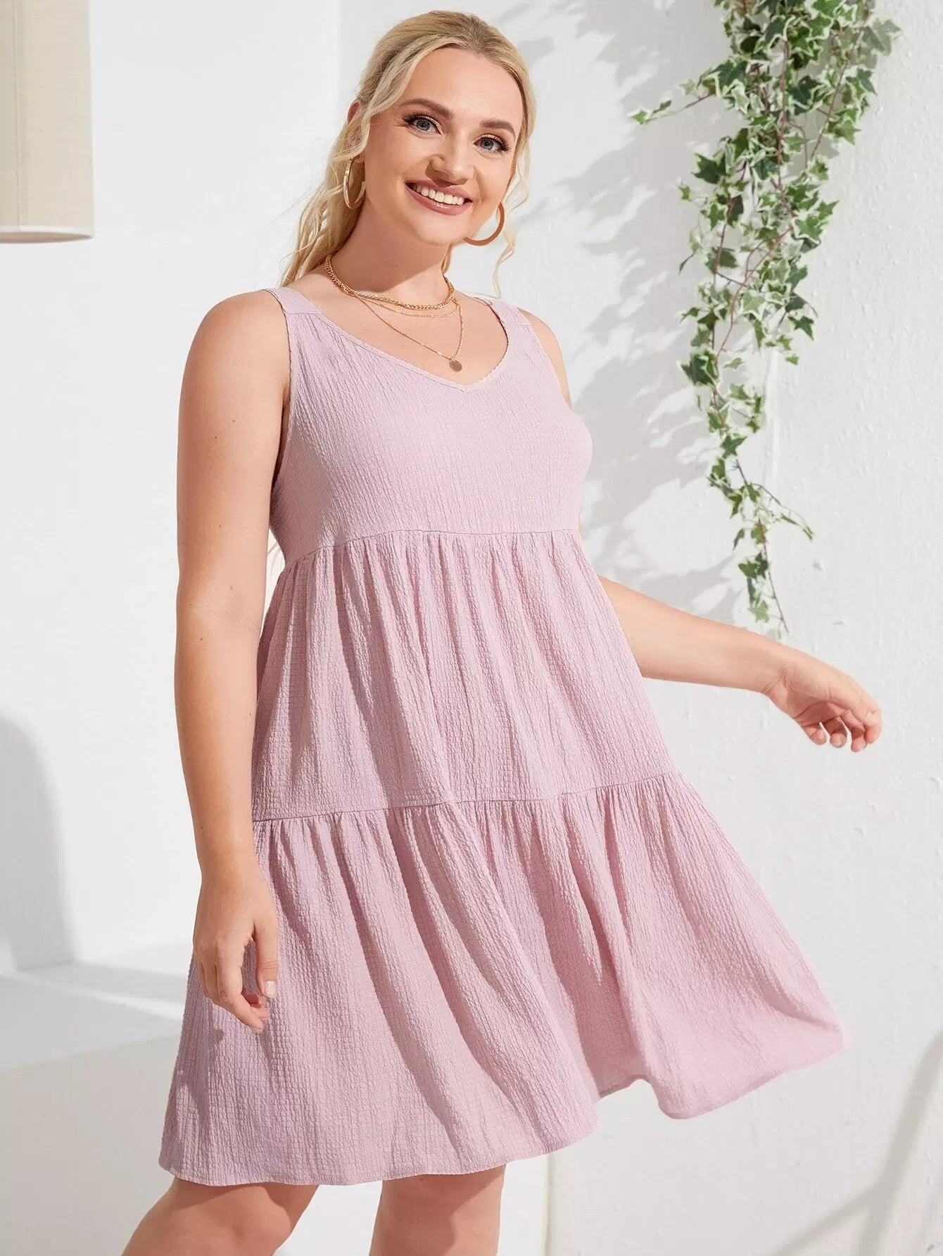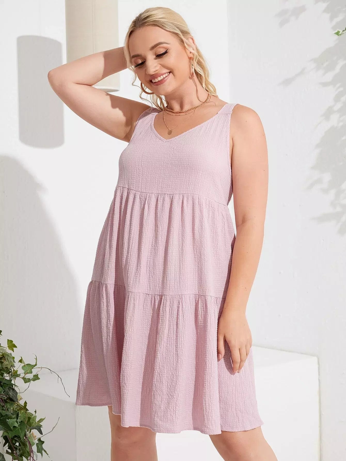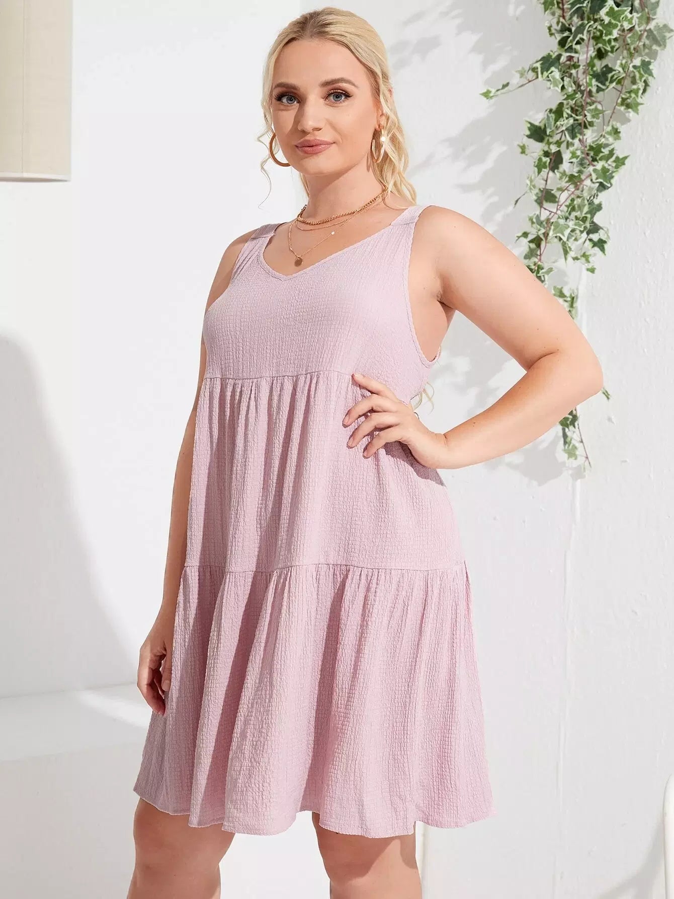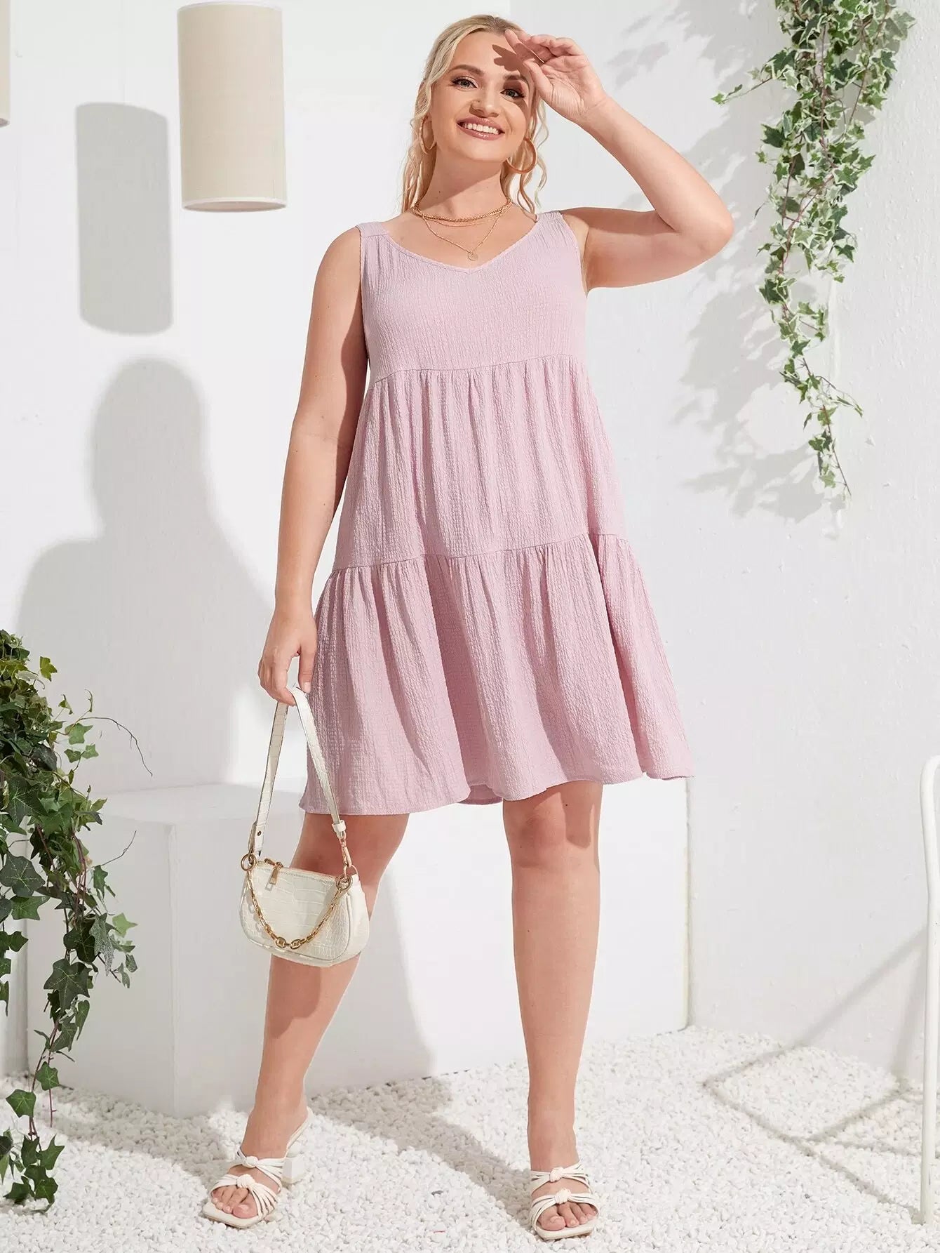 فستان كامي بحواف كشكش زائد