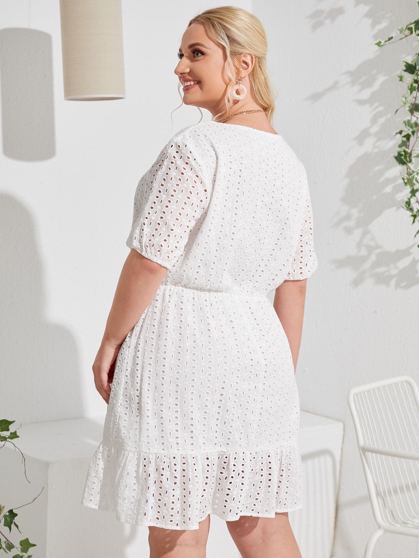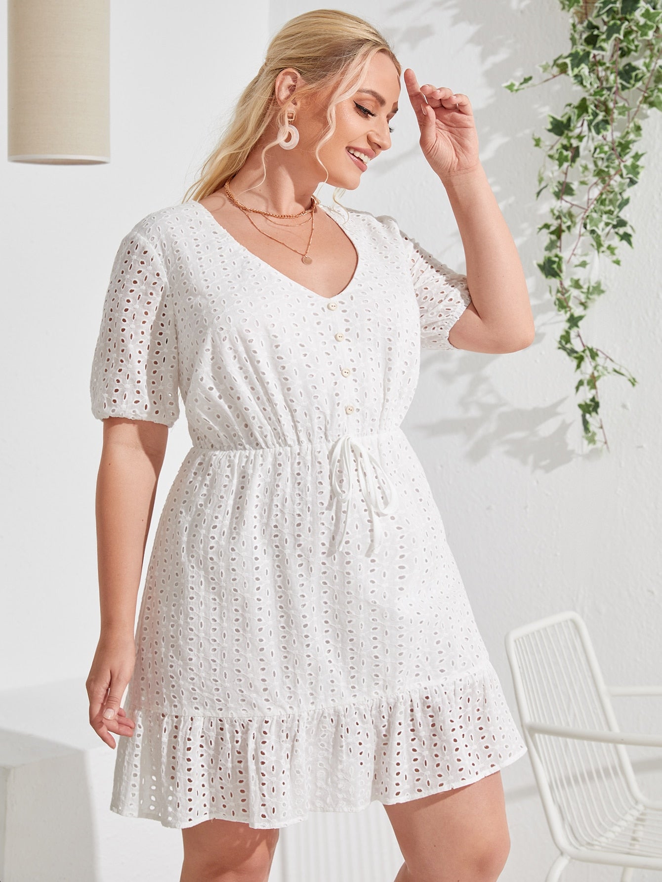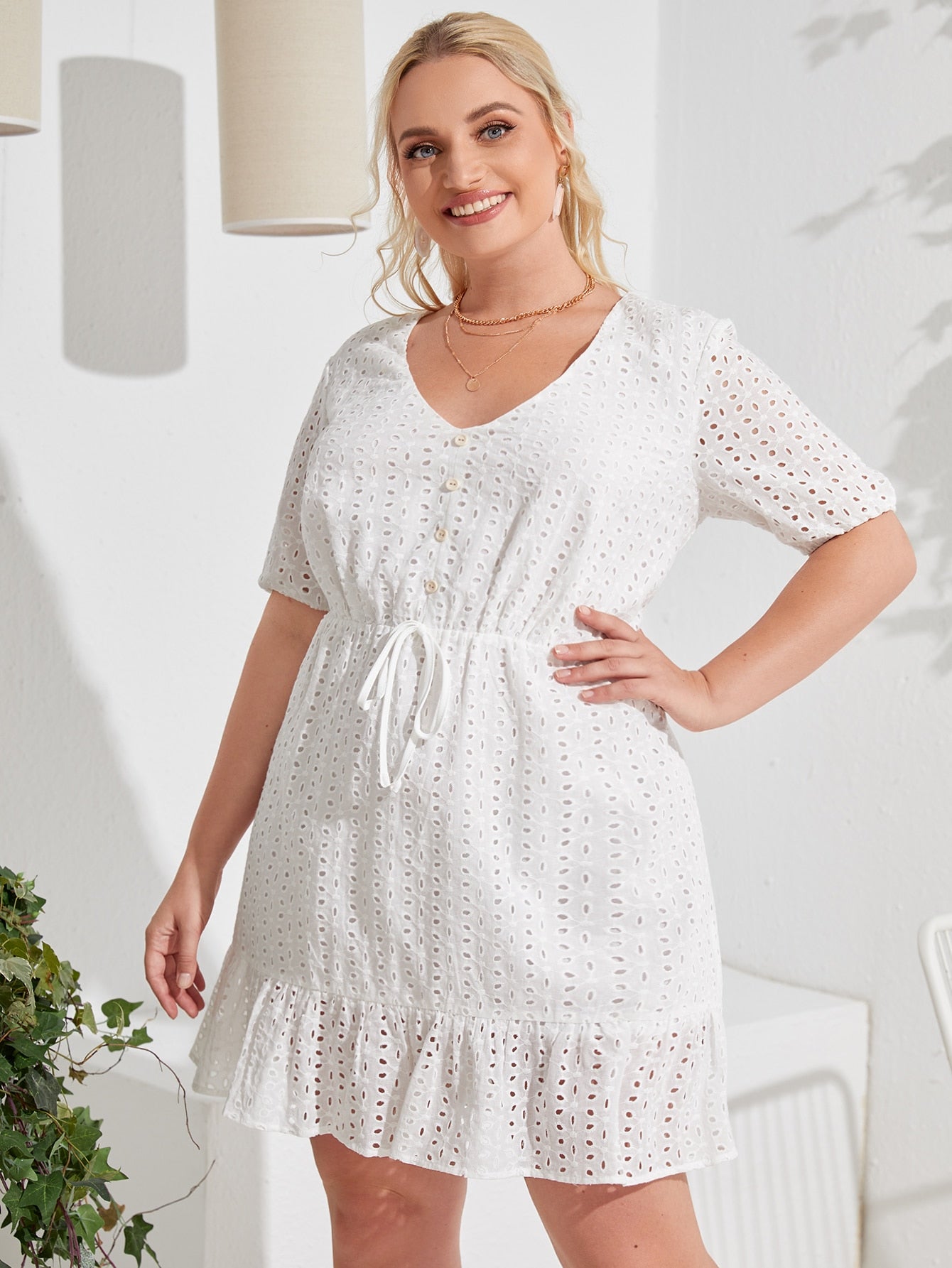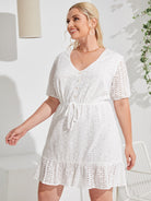 Plus Schiffy Button Front Knot Ruffle Hem Dress