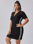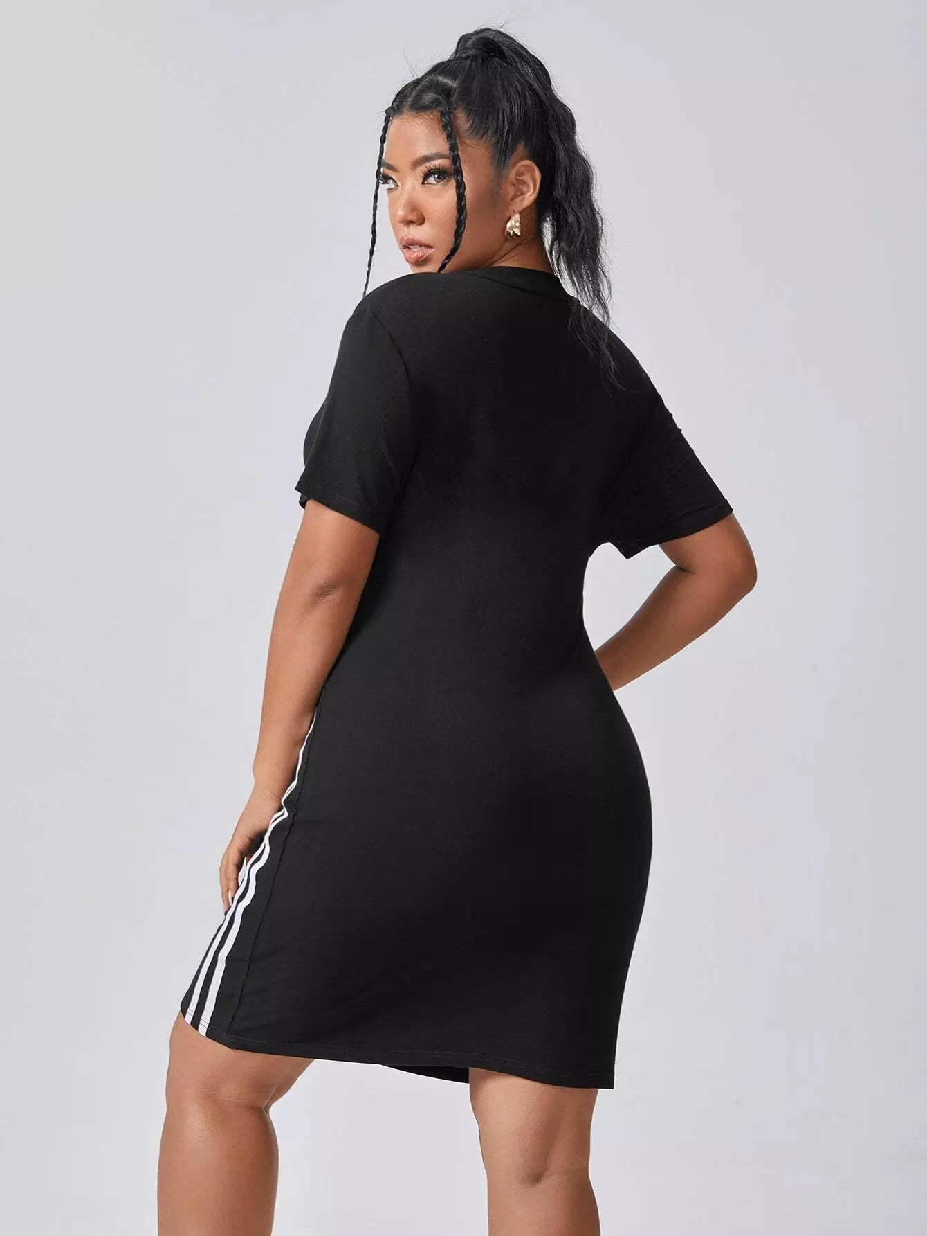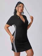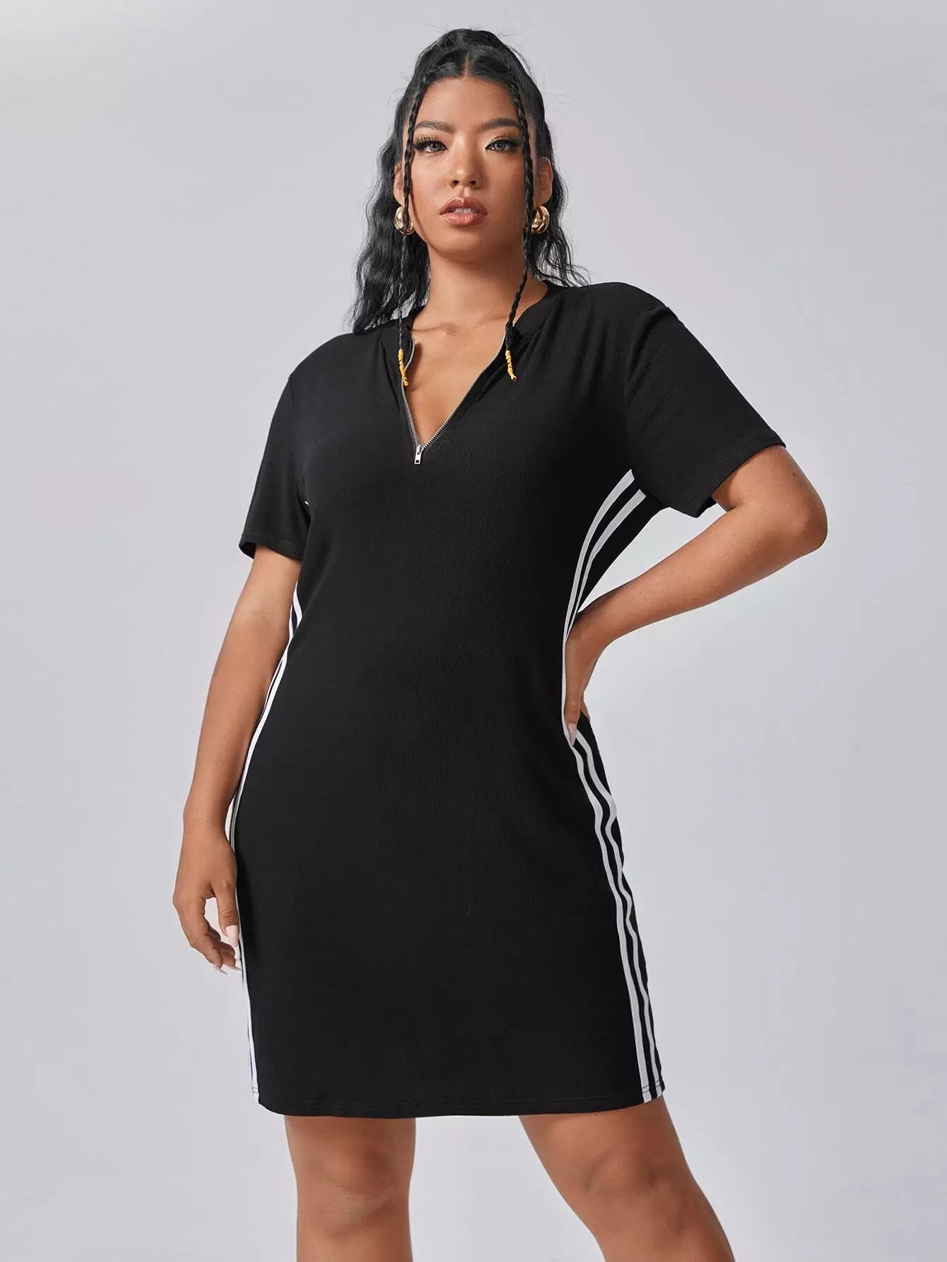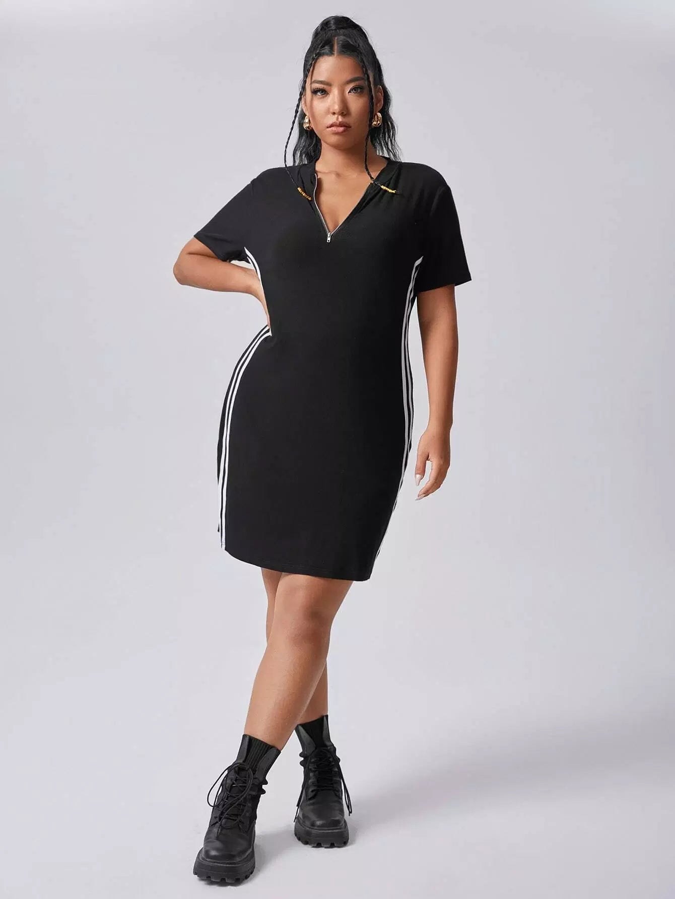 فستان مخطط جانبي مخطط بسحاب من الأمام