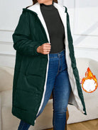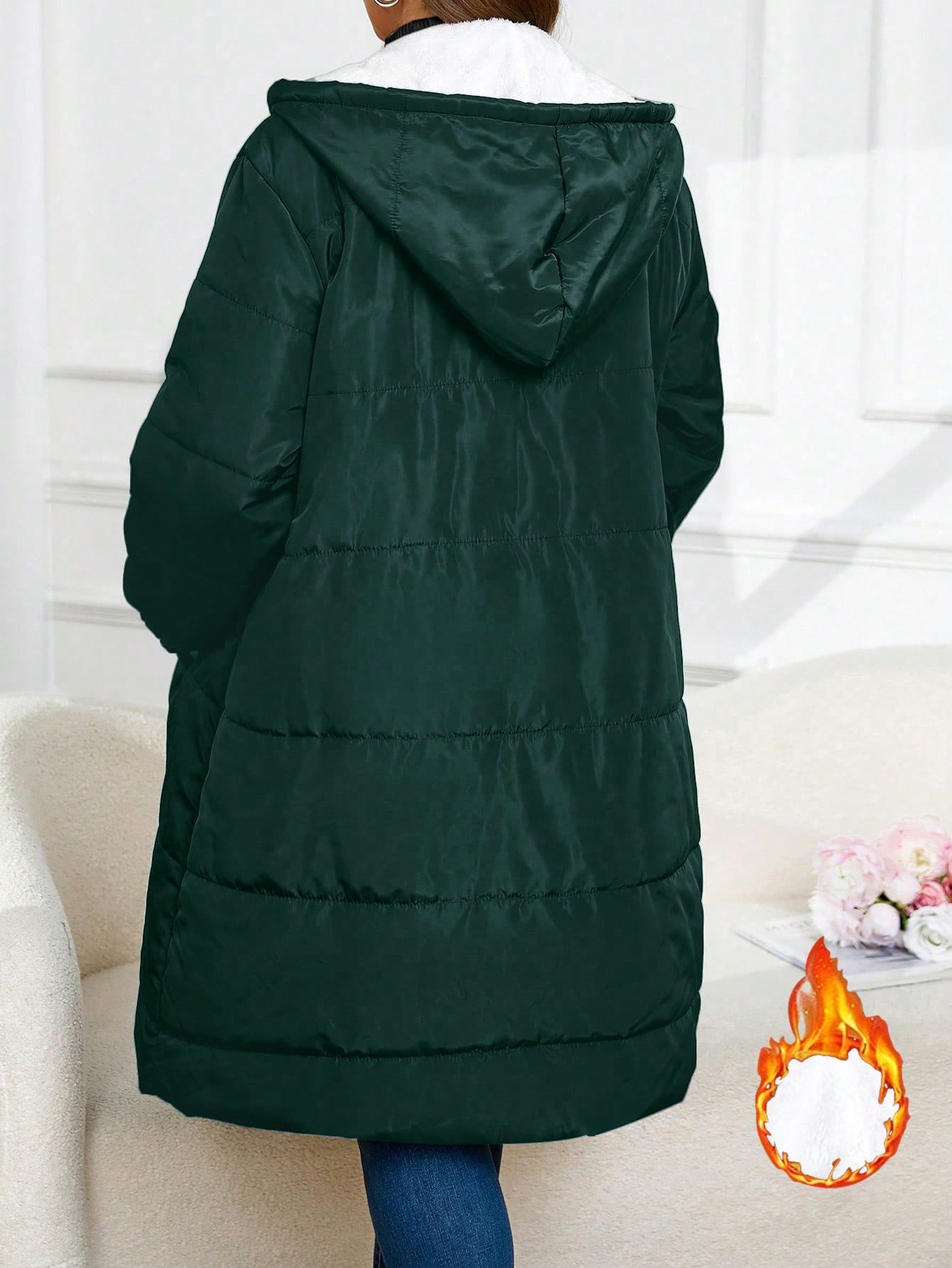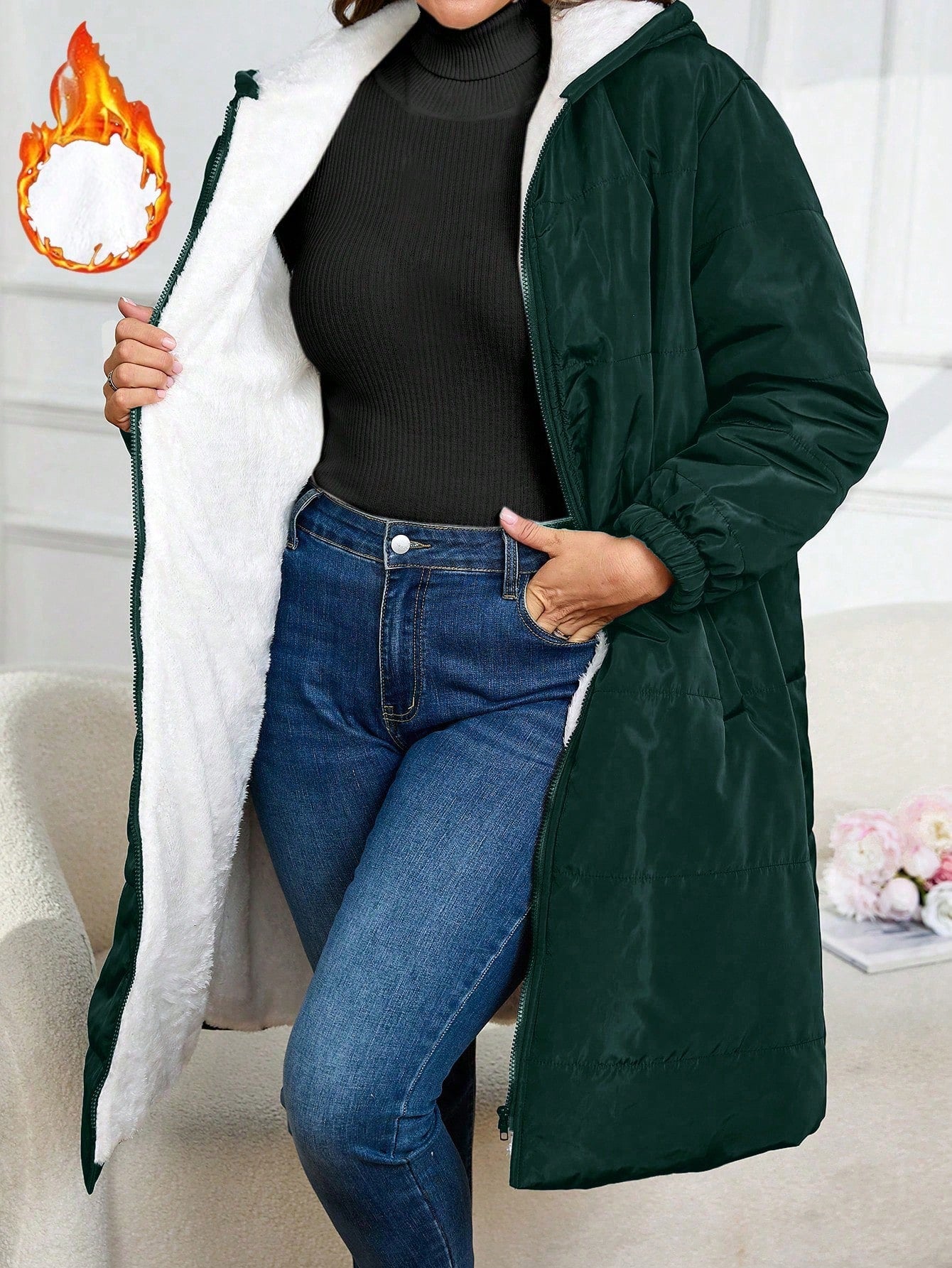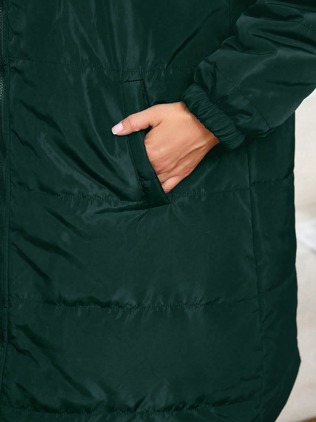 جاكيت شتوي بغطاء رأس وجيب بأكمام طويلة وسحاب أمامي بمقاس كبير للنساء