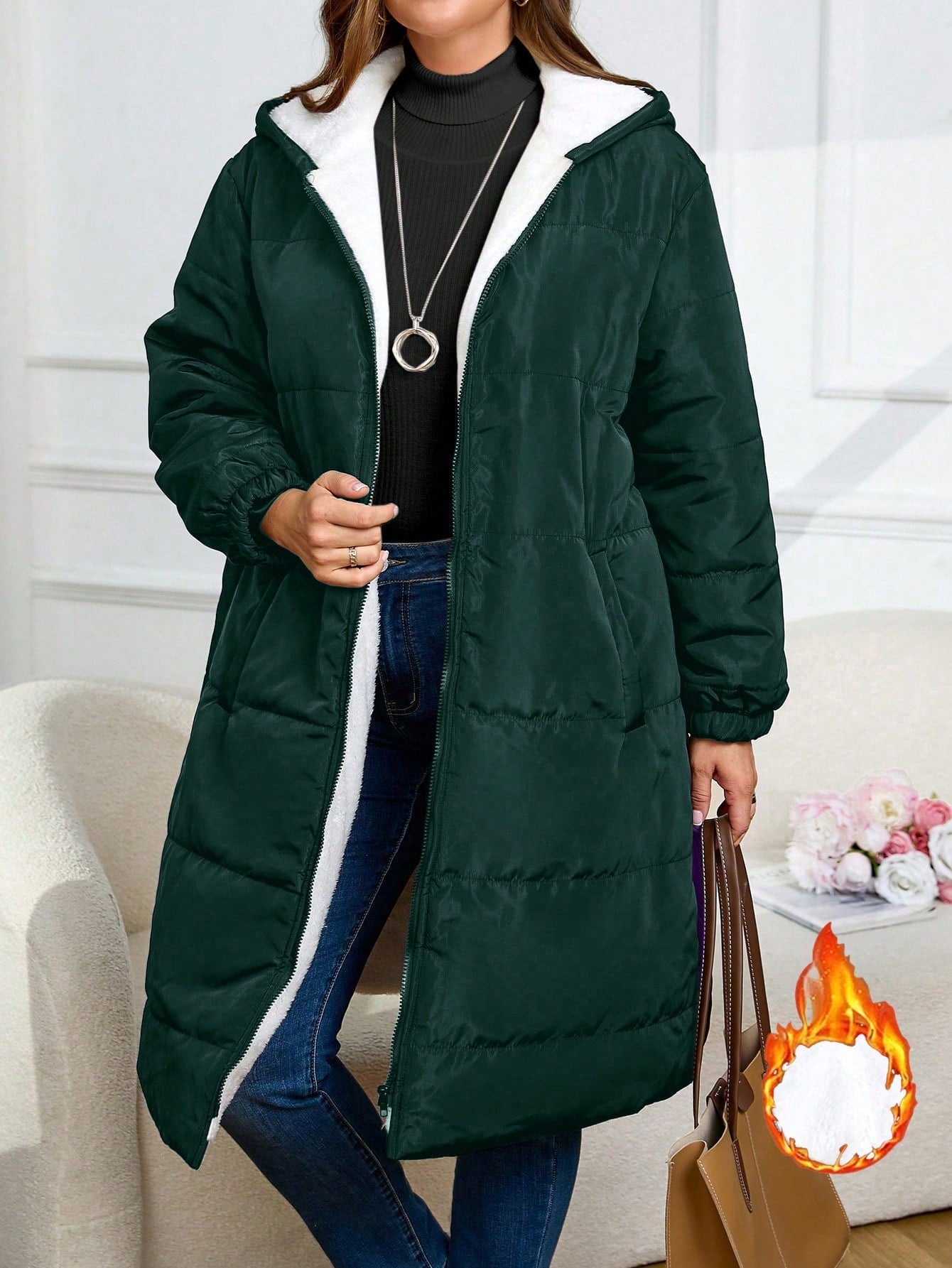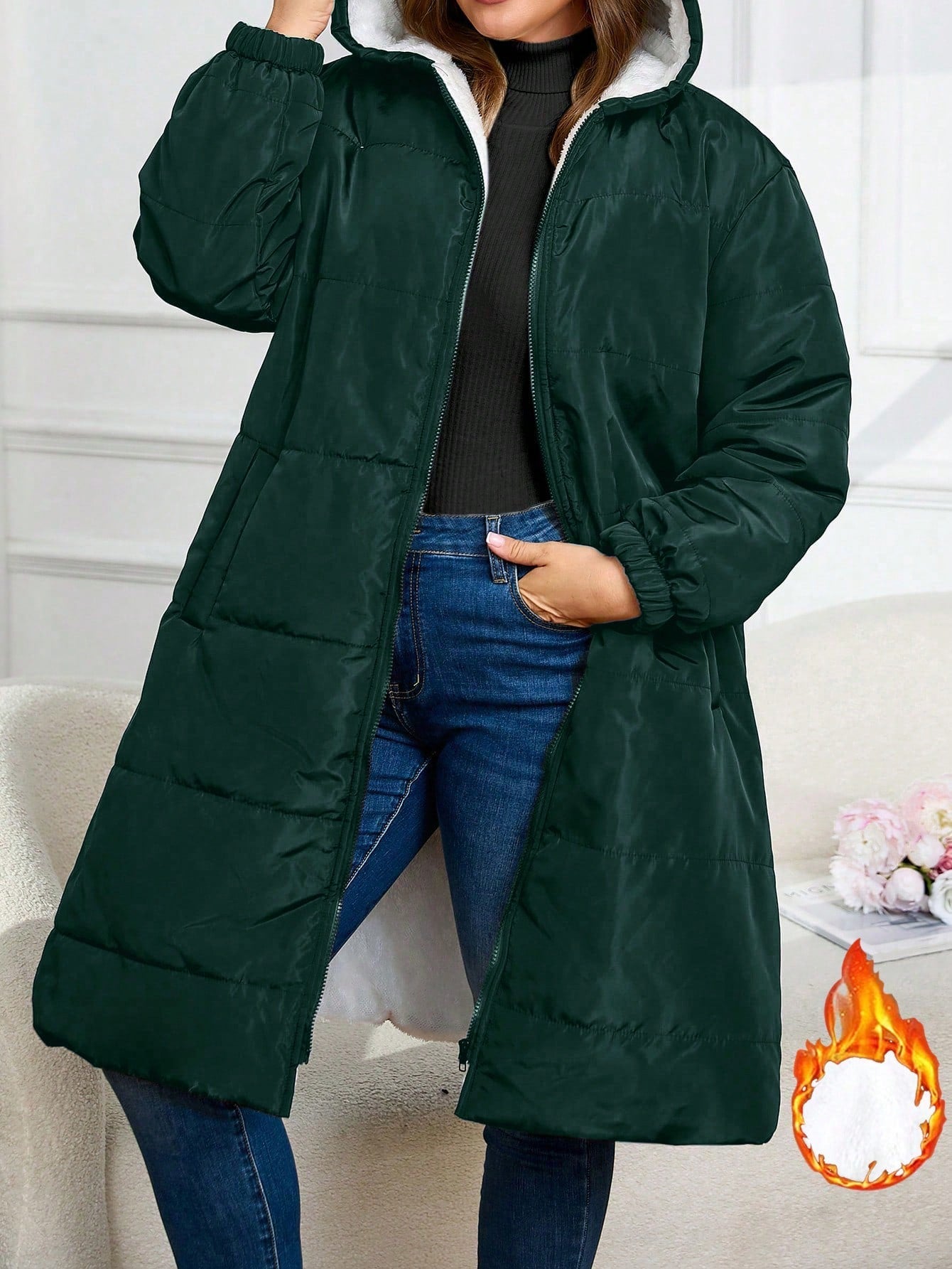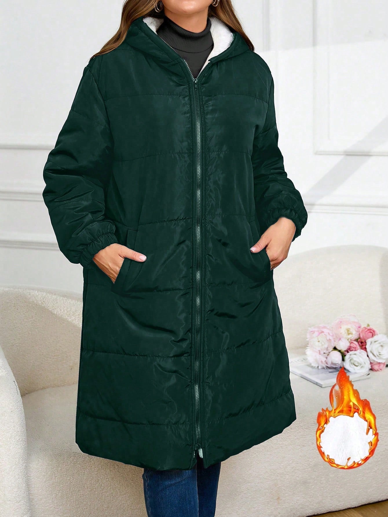 Plus Size Front Zipper Long Sleeve Pocket Minimalist Hooded Winter Clothes Jacket Fall Cloth For Women