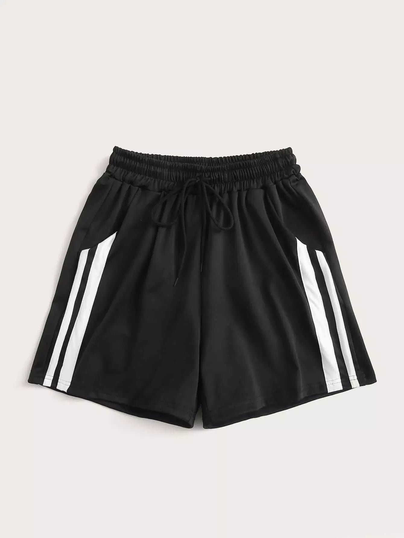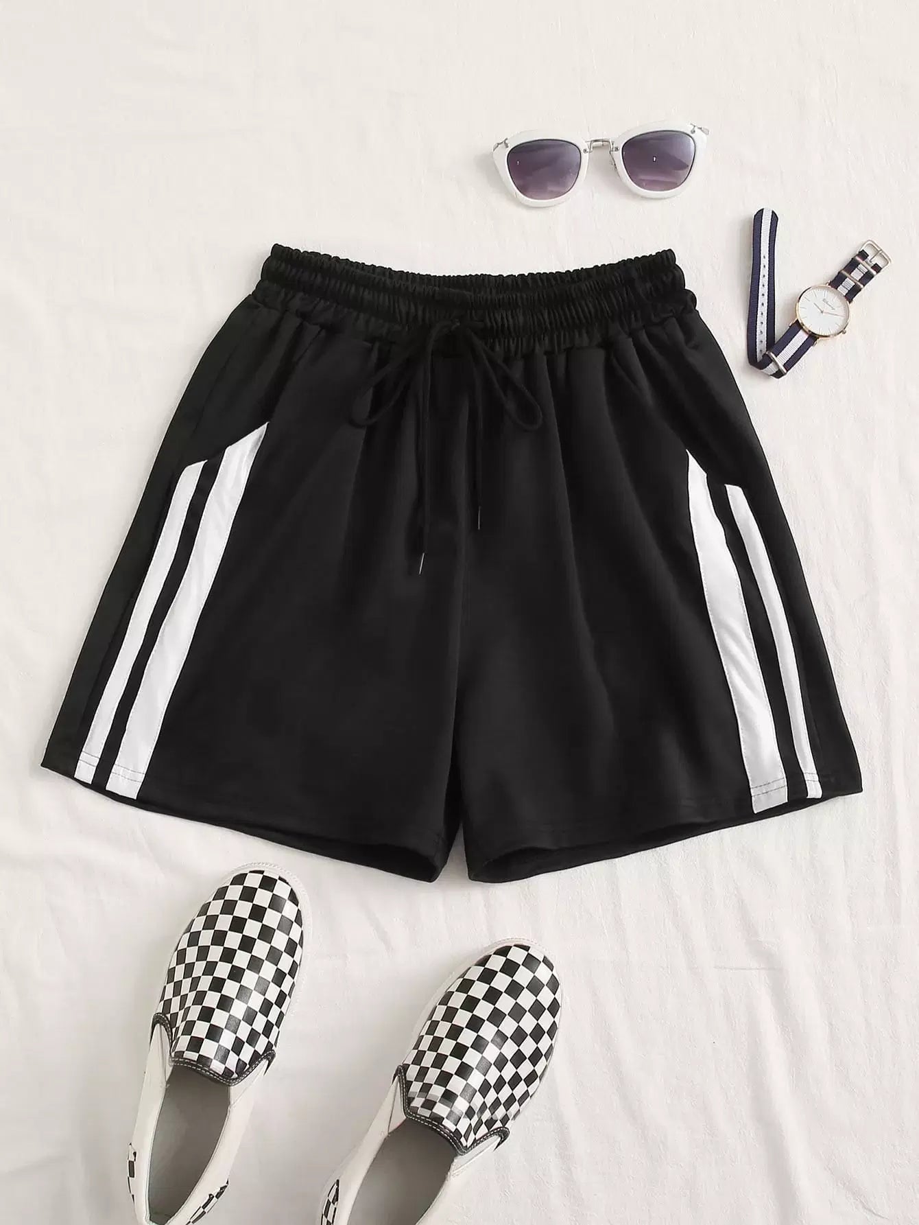 شورت قصير مخطط برباط خصر مخطط بلاس