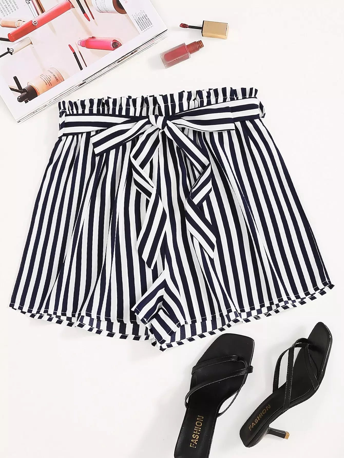 بنطلون قصير مخطط بربطة عنق ذاتي بلاس