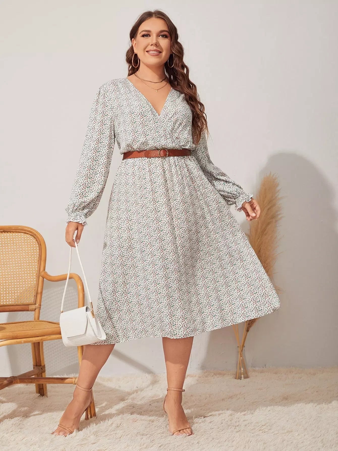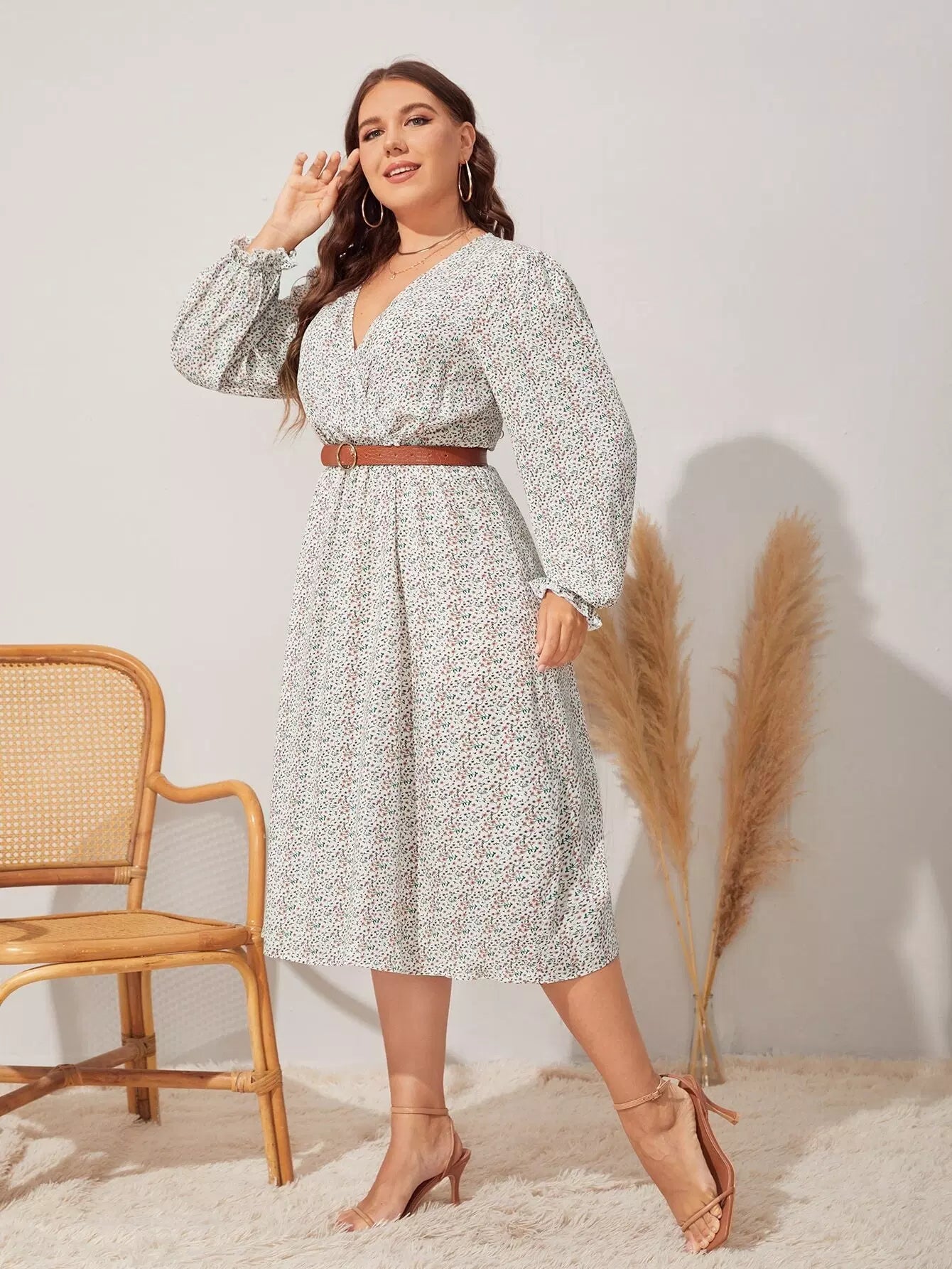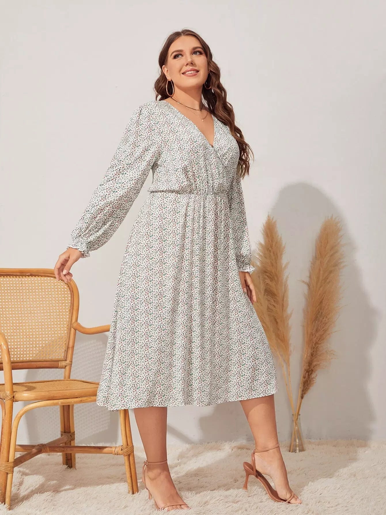 فستان برقبة زائد برقبة زهرية بفتحة زائدة