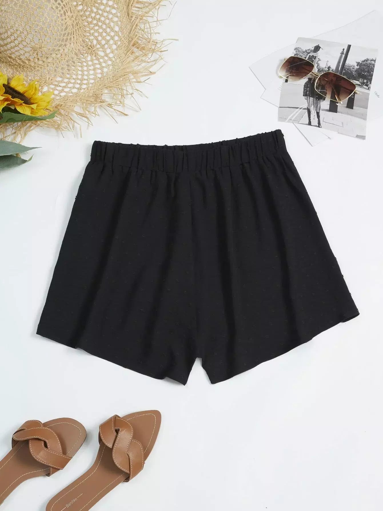 شورت قصير منقّط بربطة خصر منقّطة زائد سويسري