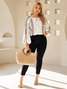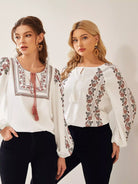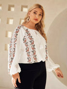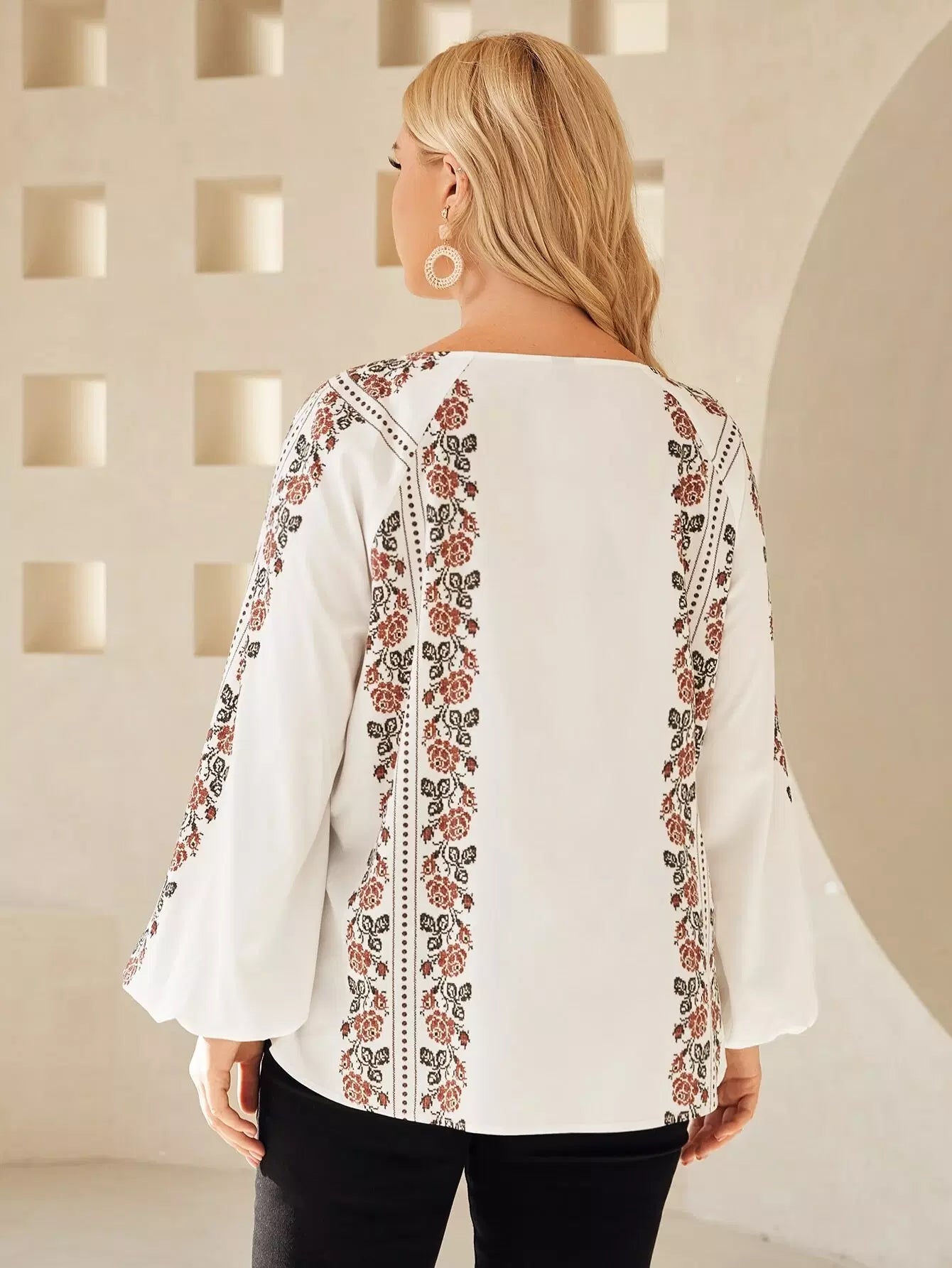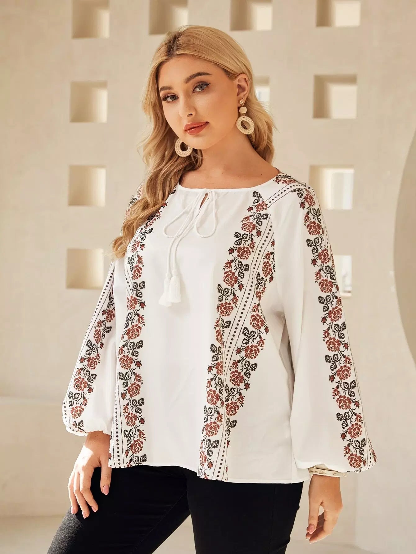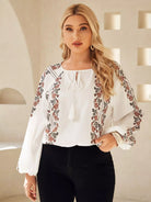 بلوزة بأكمام من الأمام برباط أمامي مزين بشرابة بلس بنقشة زهور